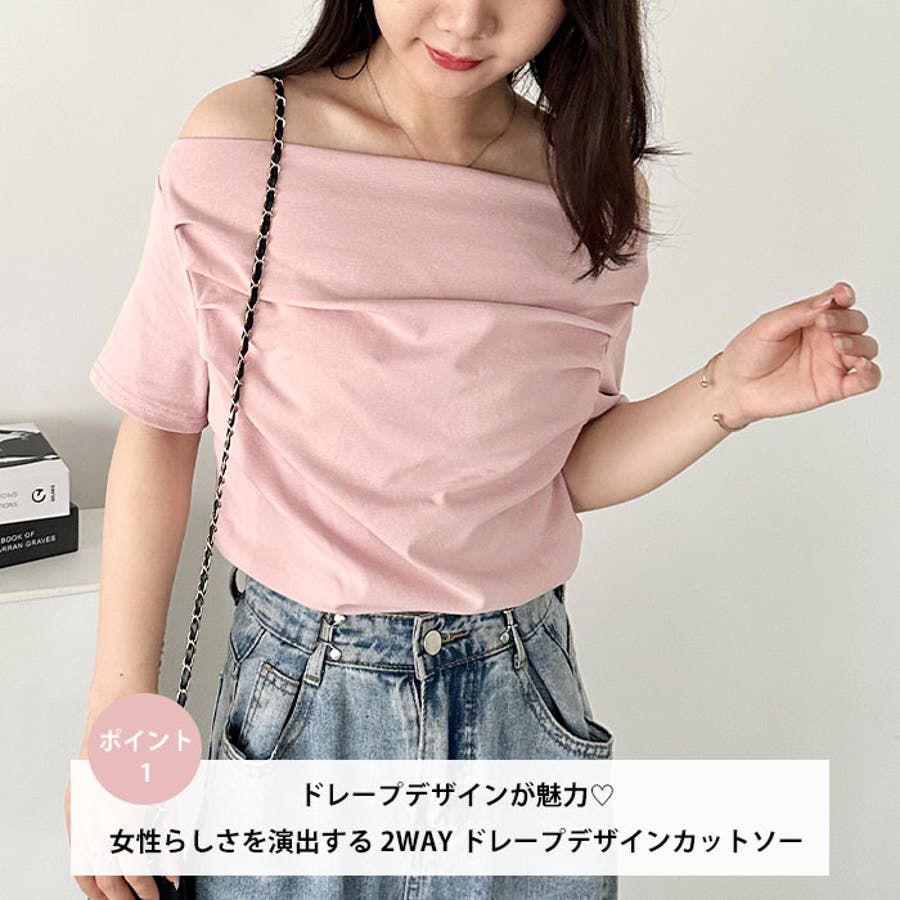 女性らしさを演出する2WAYドレープデザインカットソー