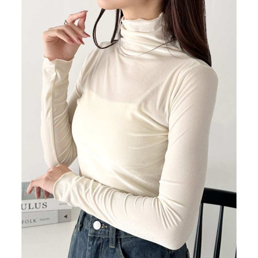 程よいシアー感が女性らしさを演出してくれるベロアトップス