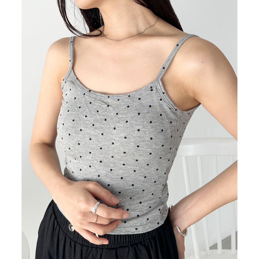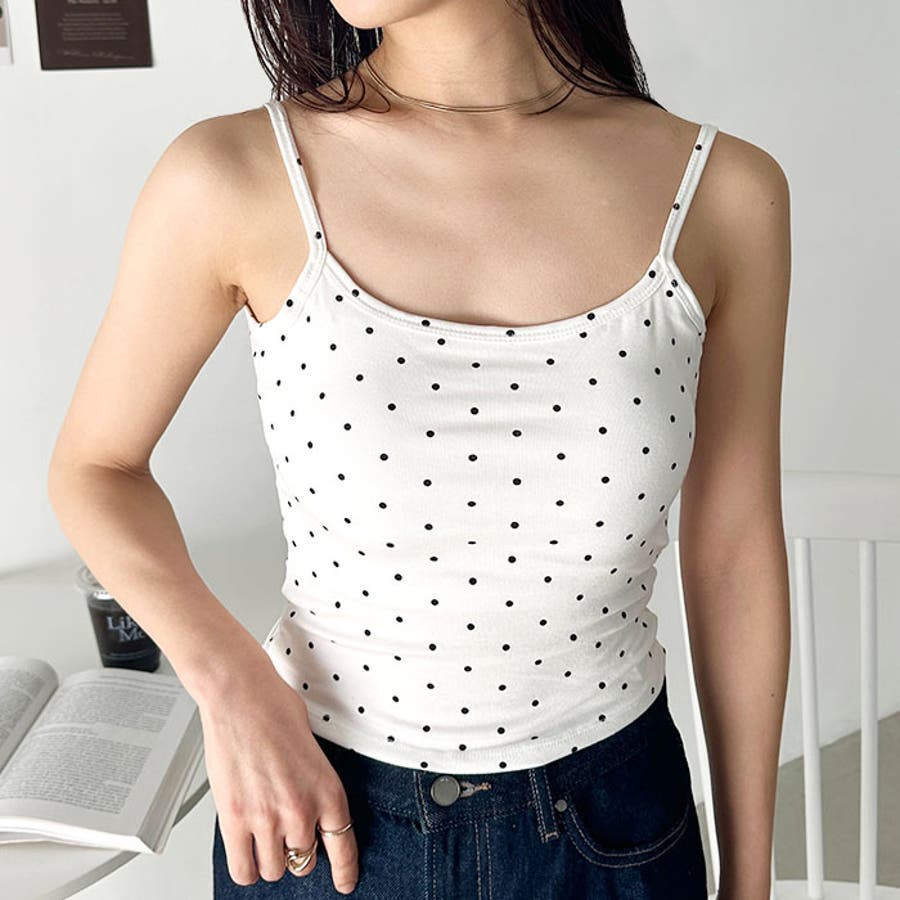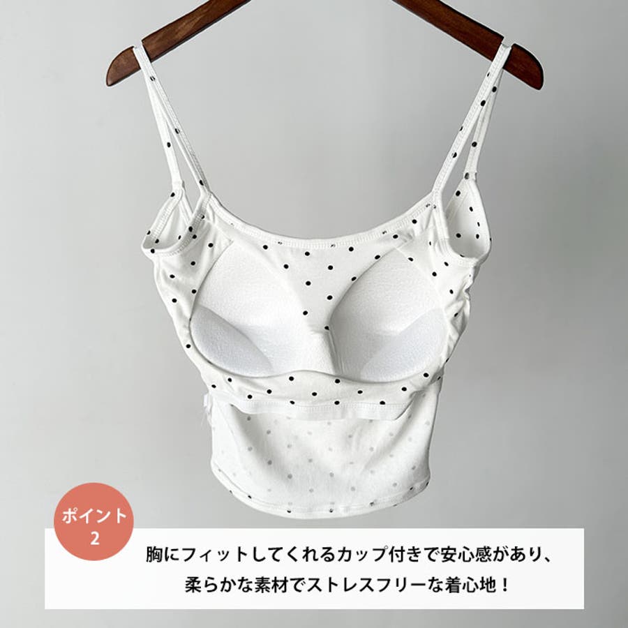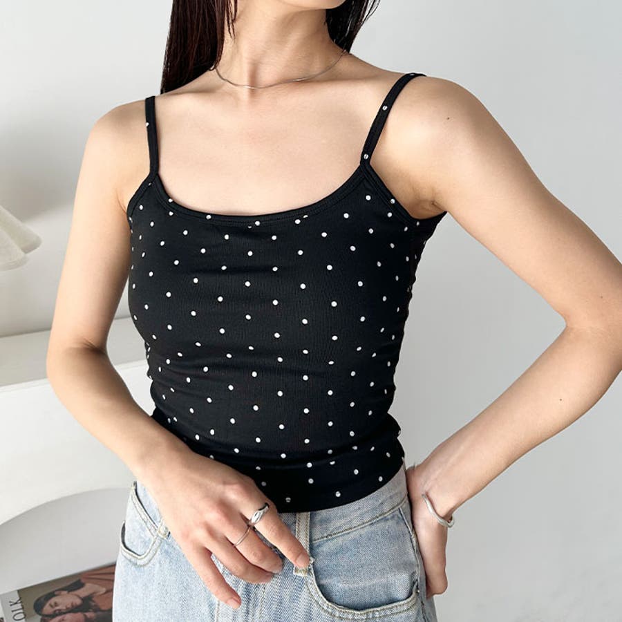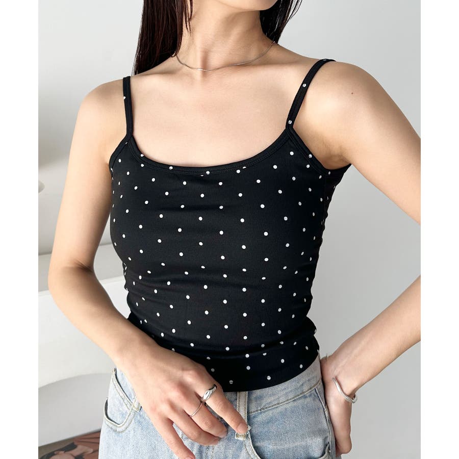 ドット柄がコーデに映えるカップ付きキャミソール。