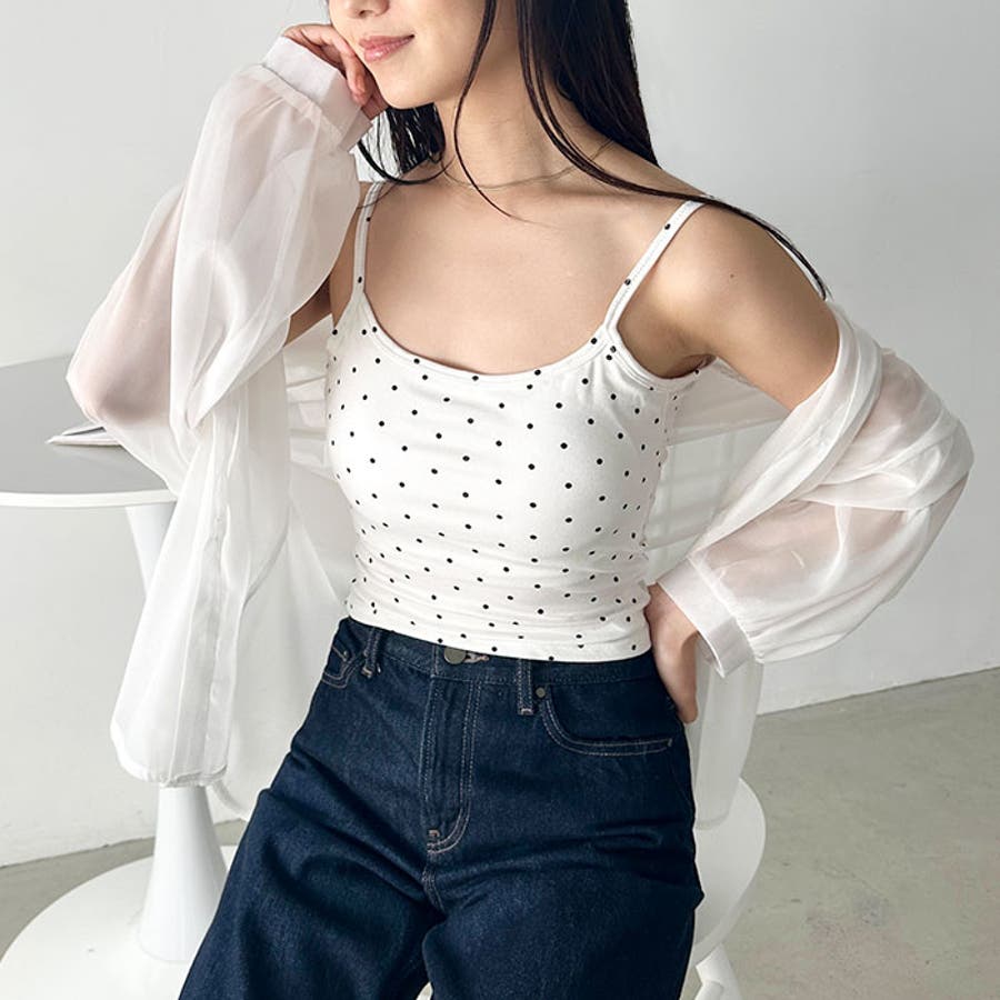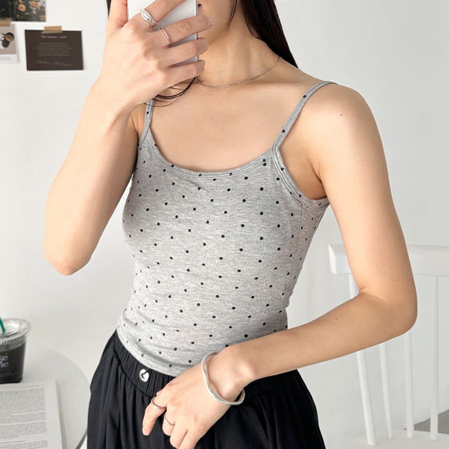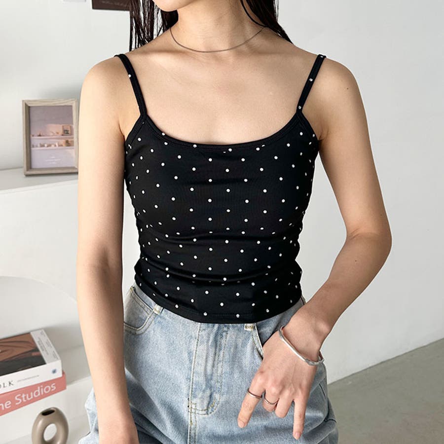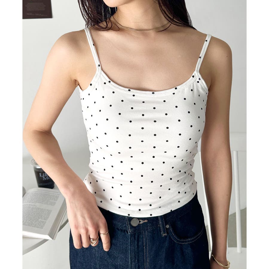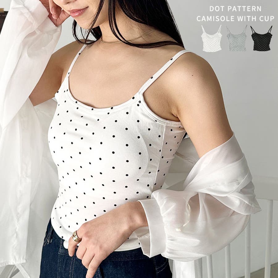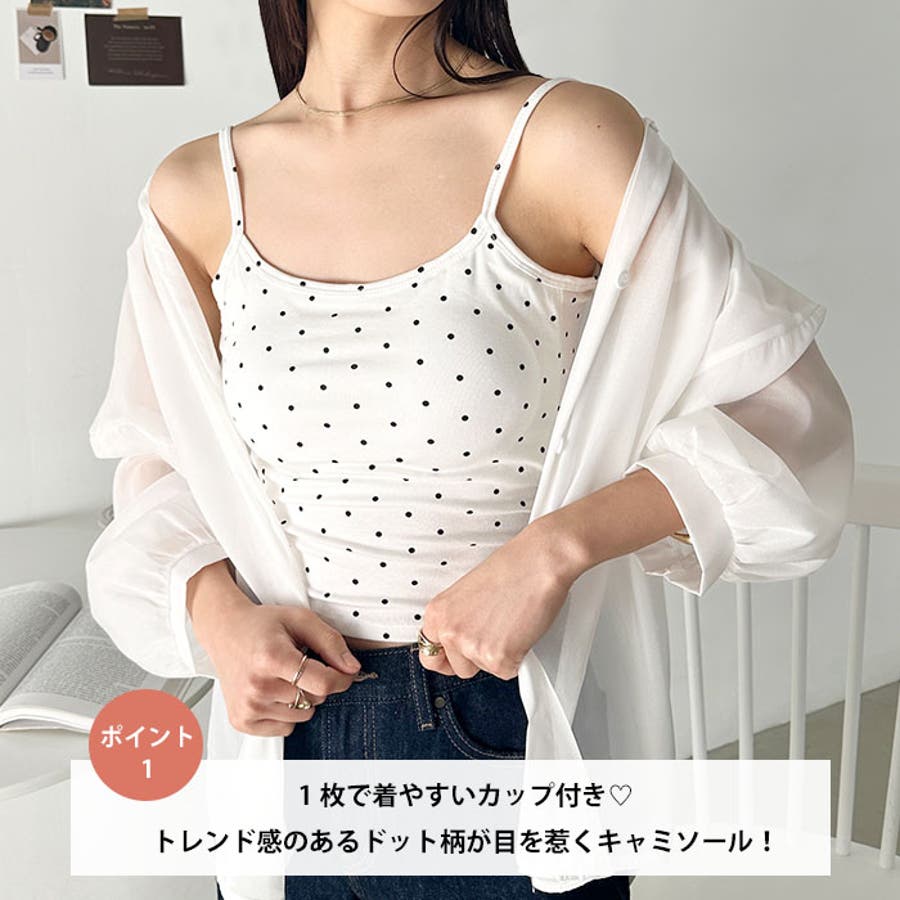 ドット柄がコーデに映えるカップ付きキャミソール。