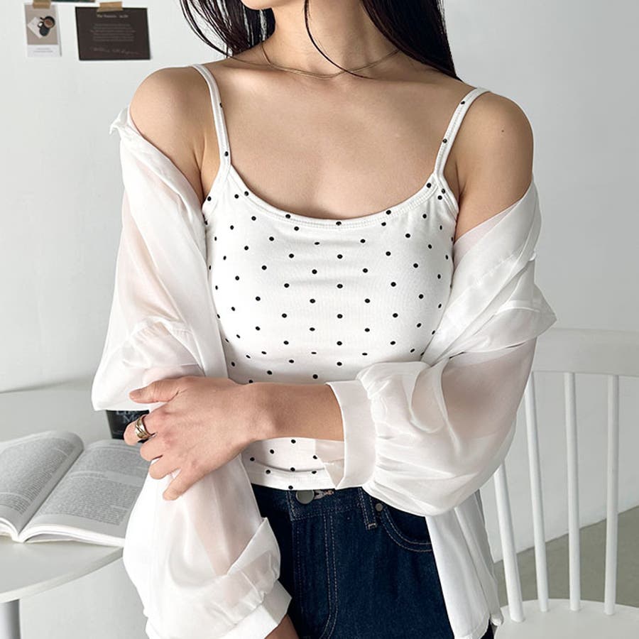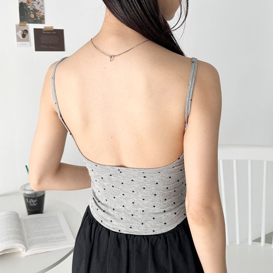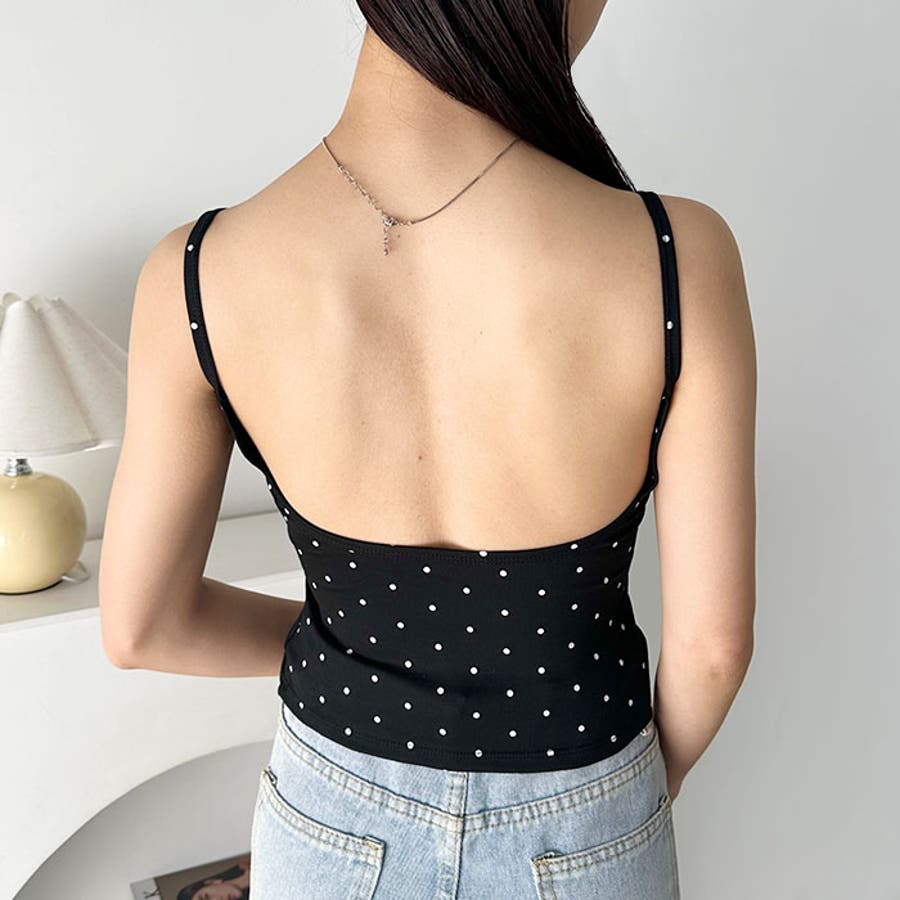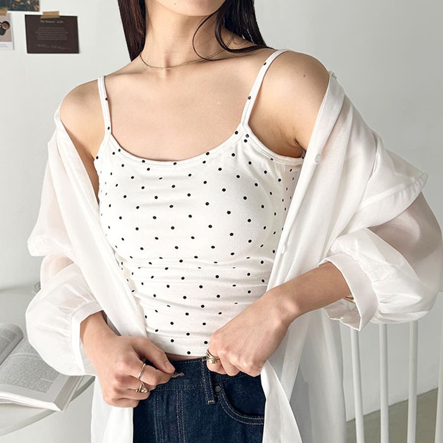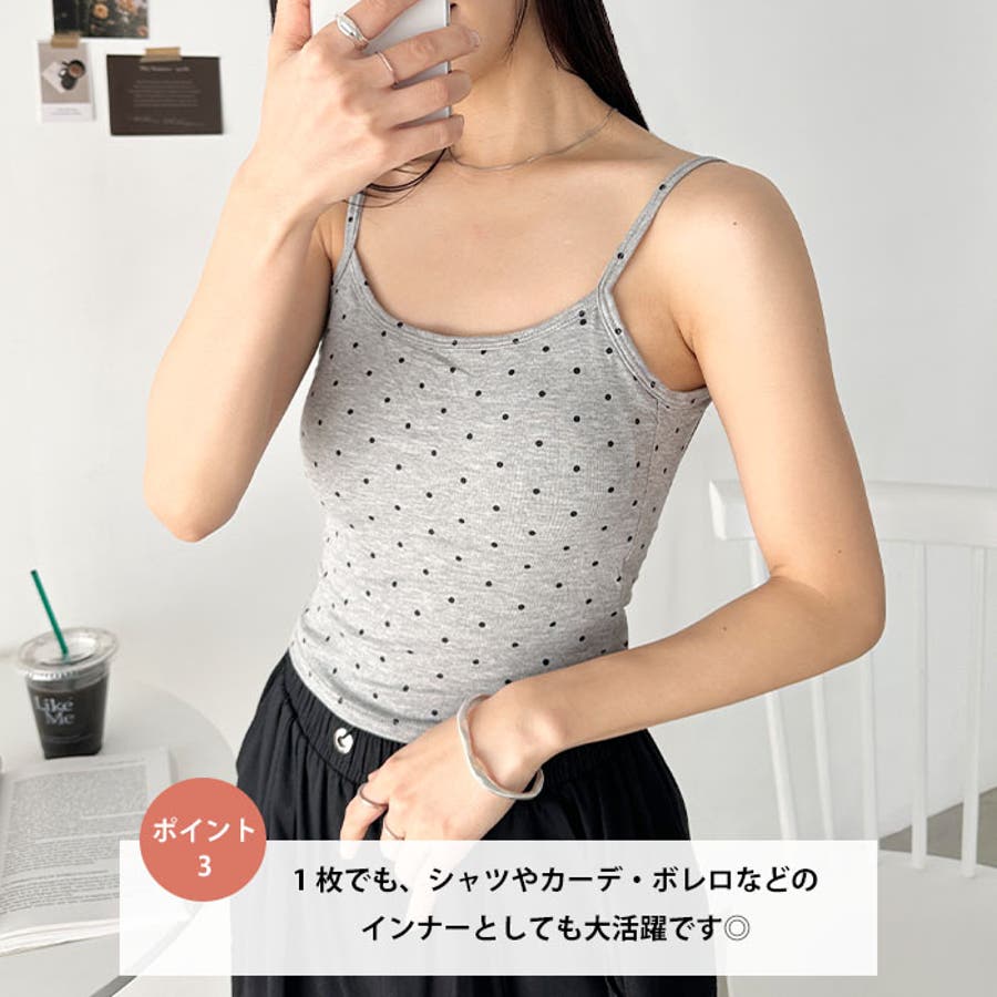 ドット柄がコーデに映えるカップ付きキャミソール。