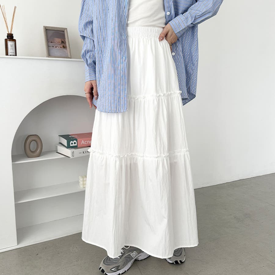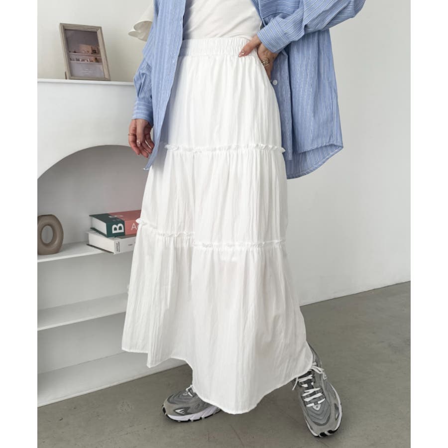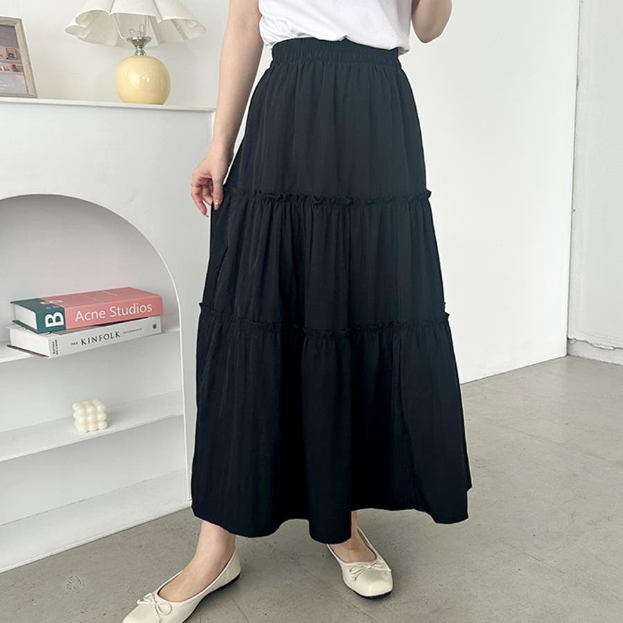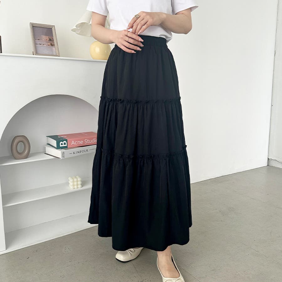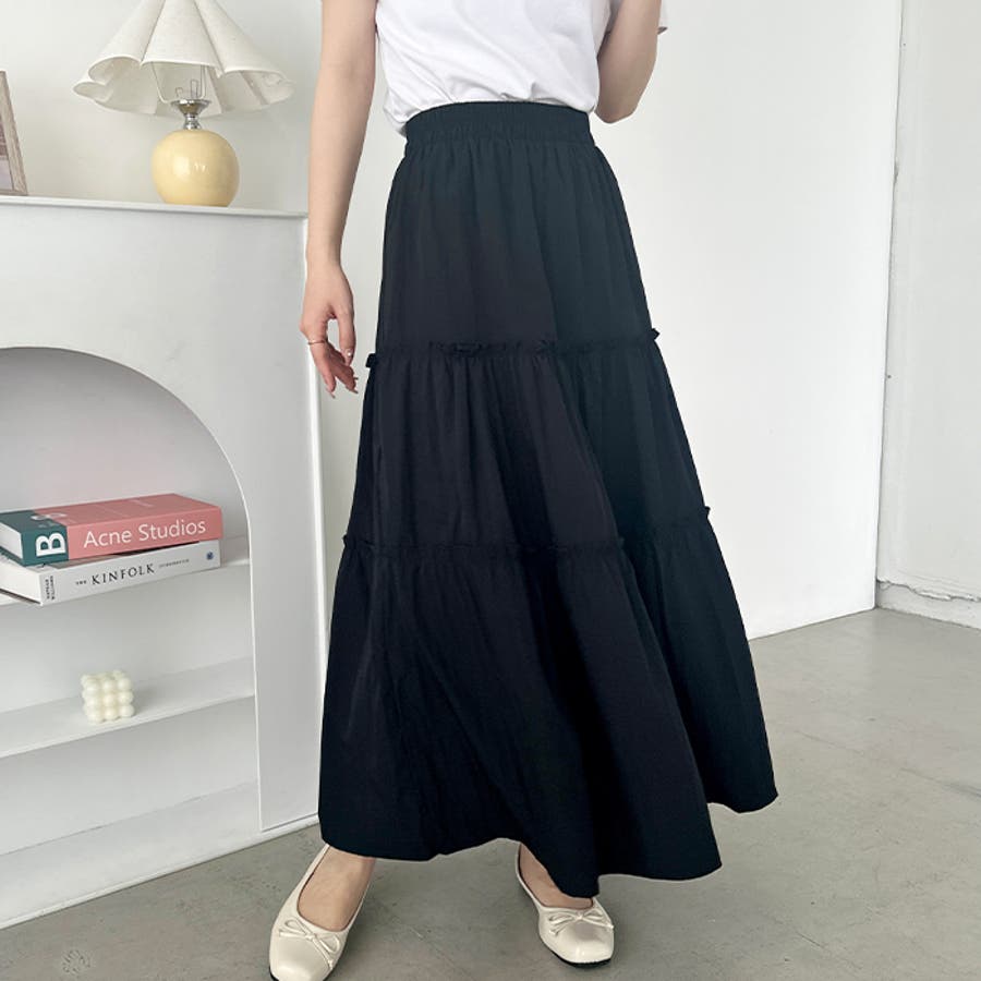 歩くたびに揺れるフレア感がおしゃれなティアードスカート。