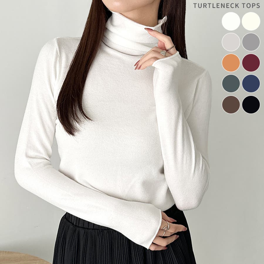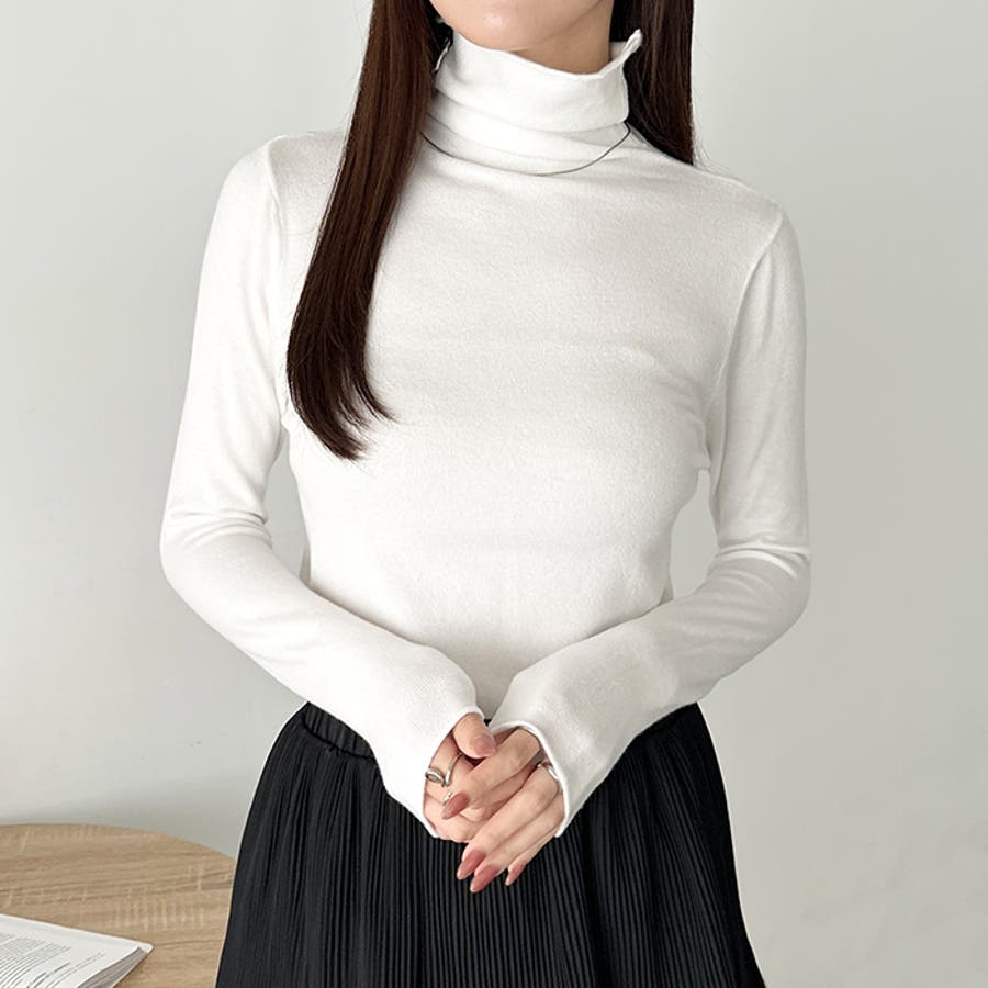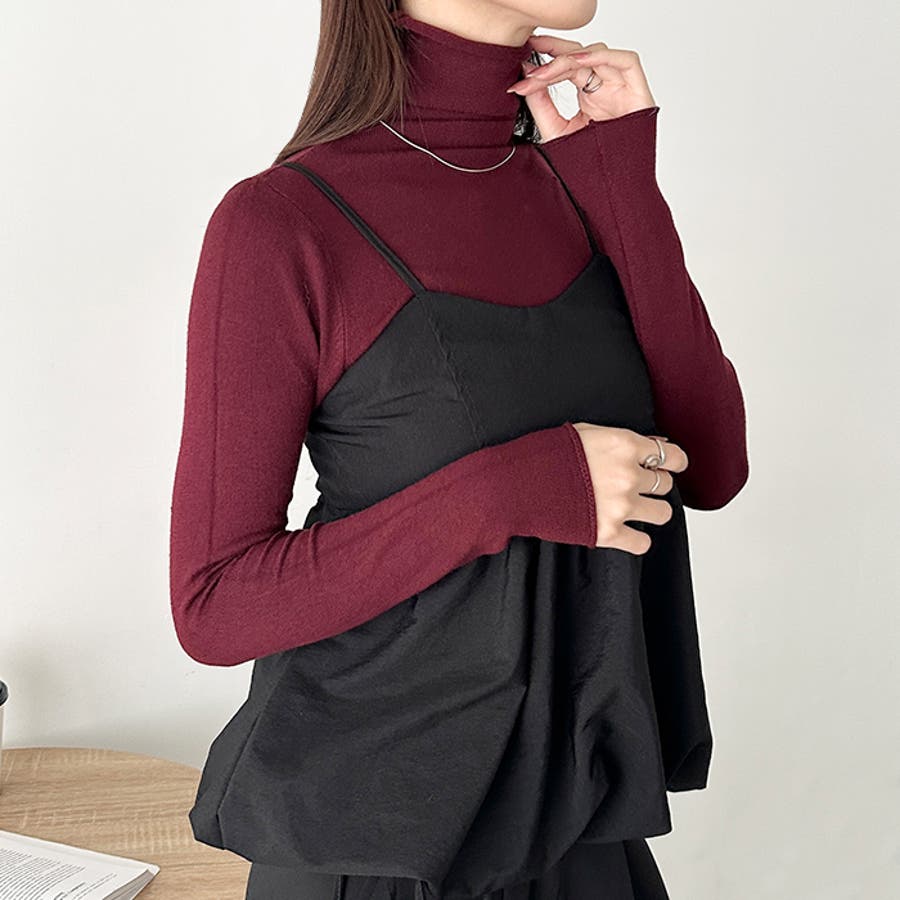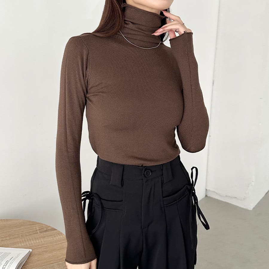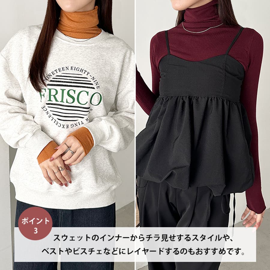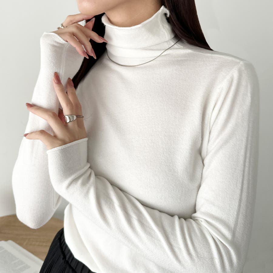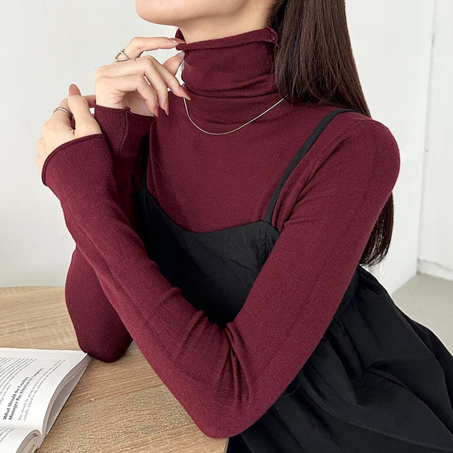 一枚でも、レイヤードスタイルでも活躍するタートルネックトップス