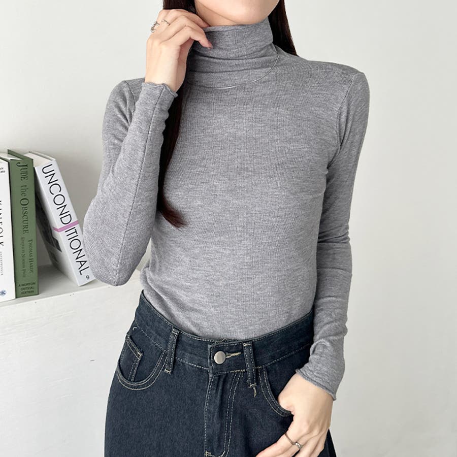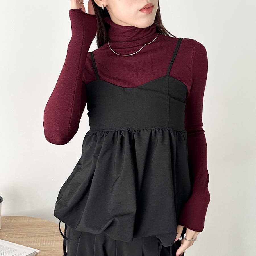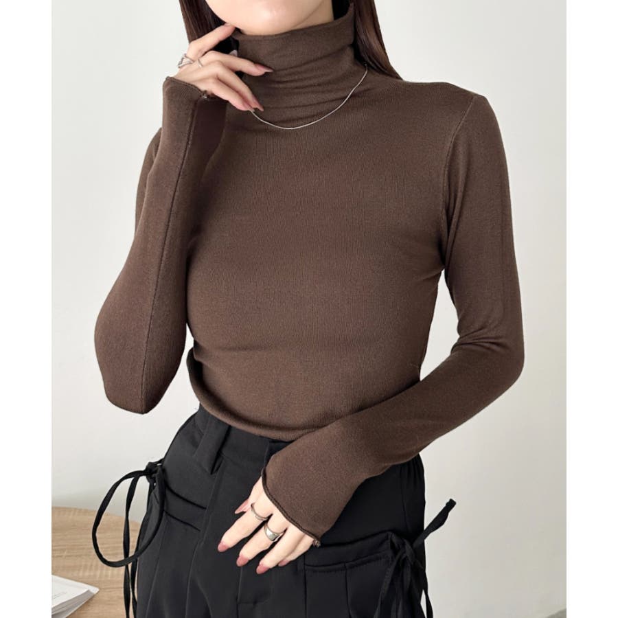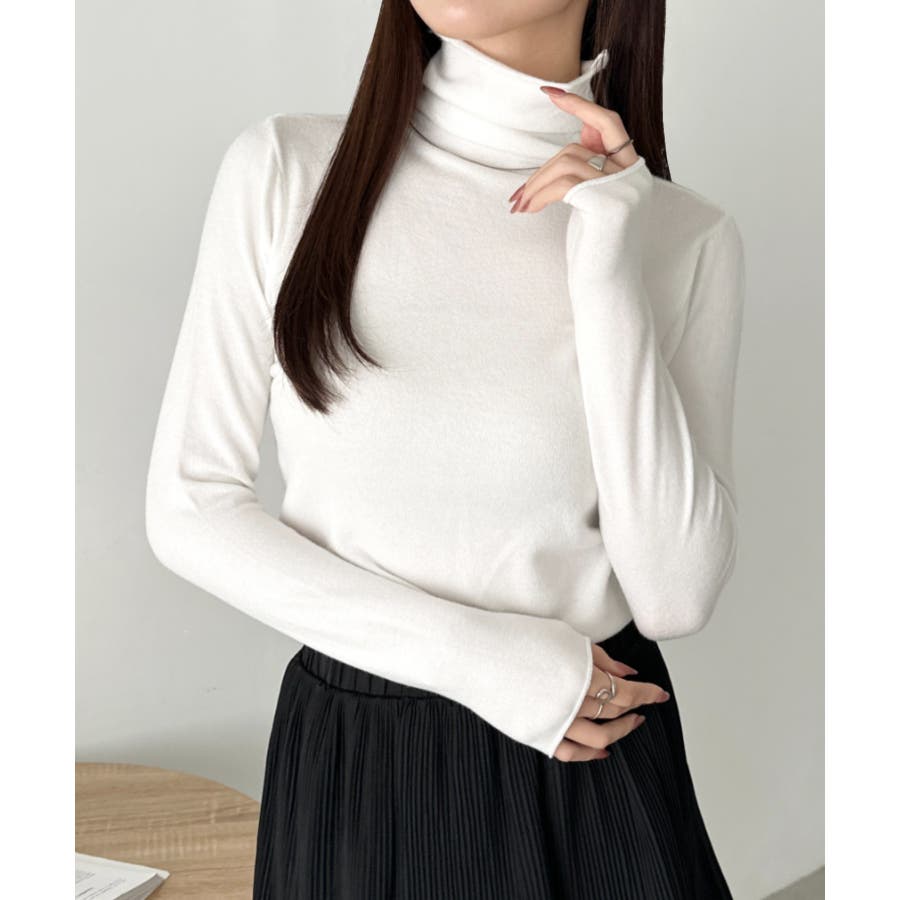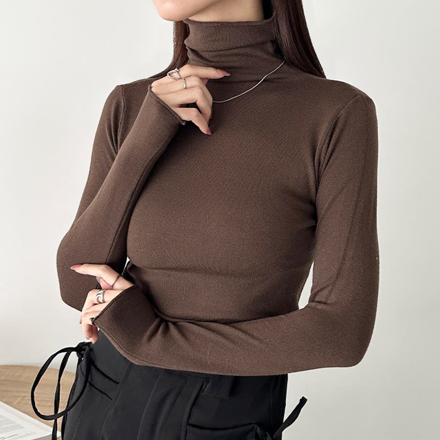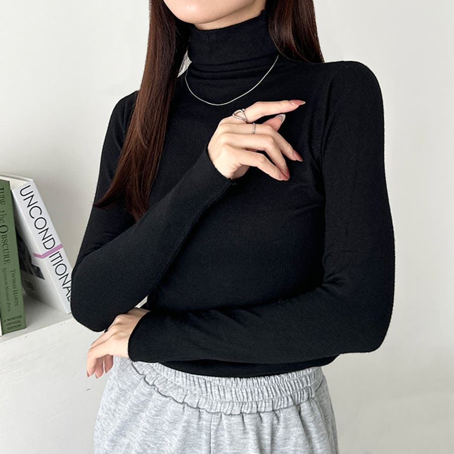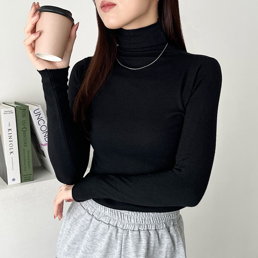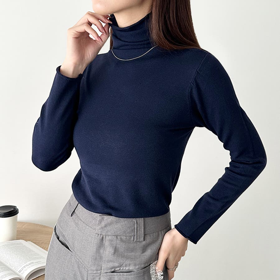 一枚でも、レイヤードスタイルでも活躍するタートルネックトップス