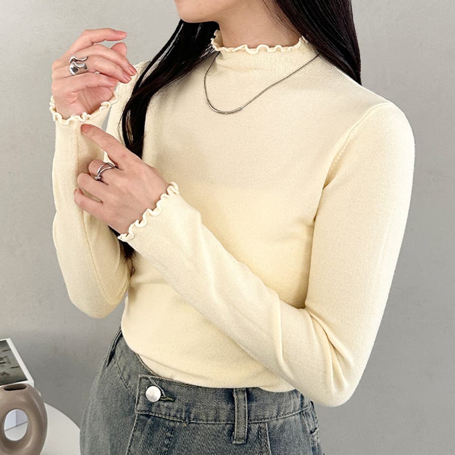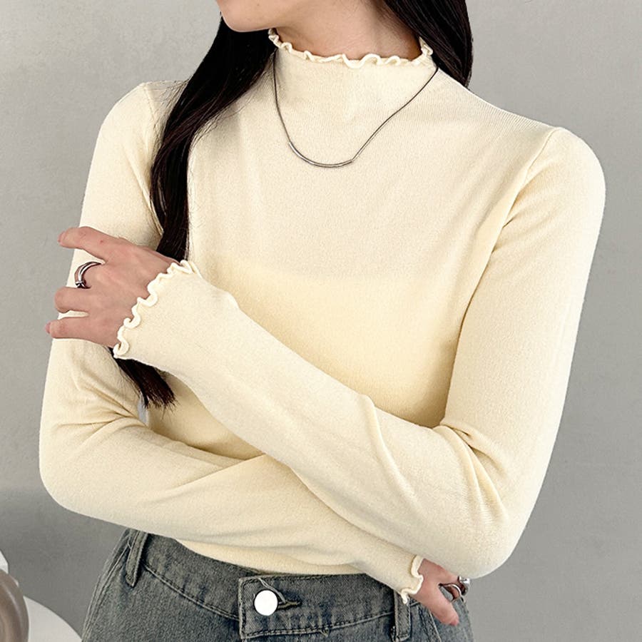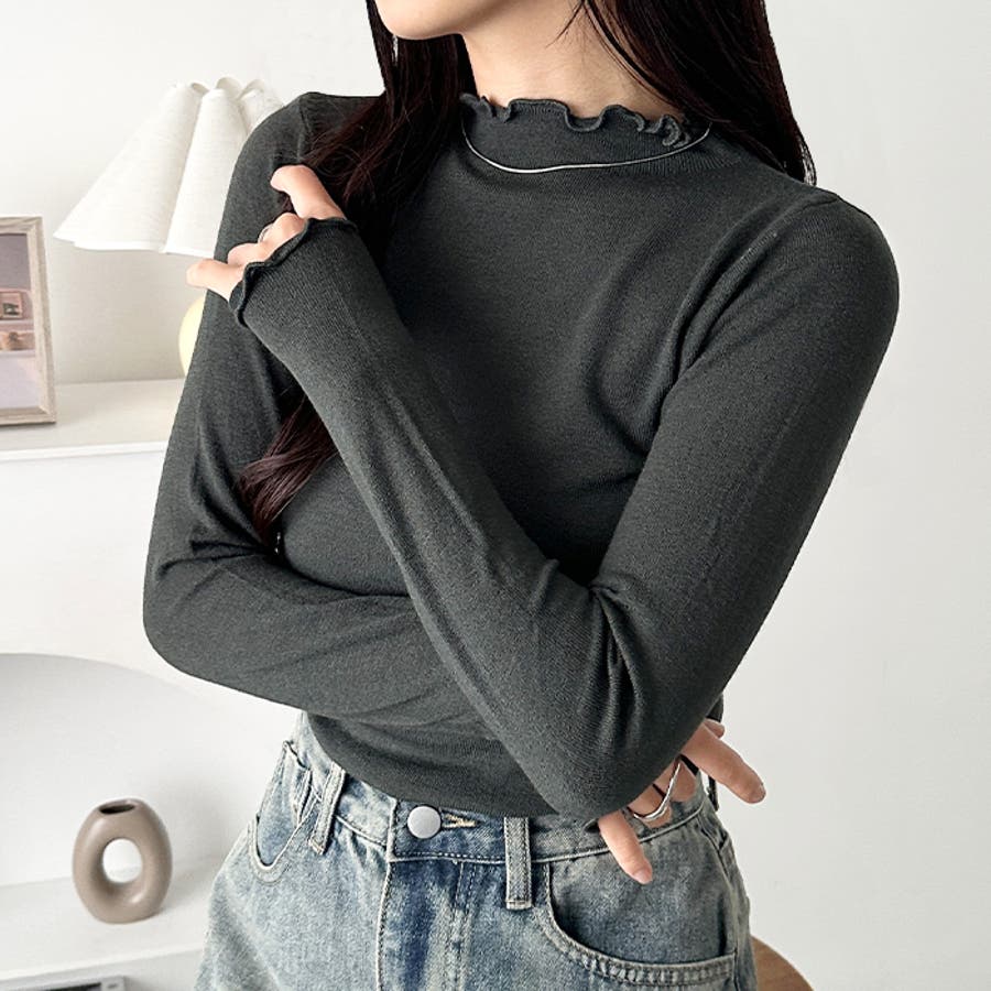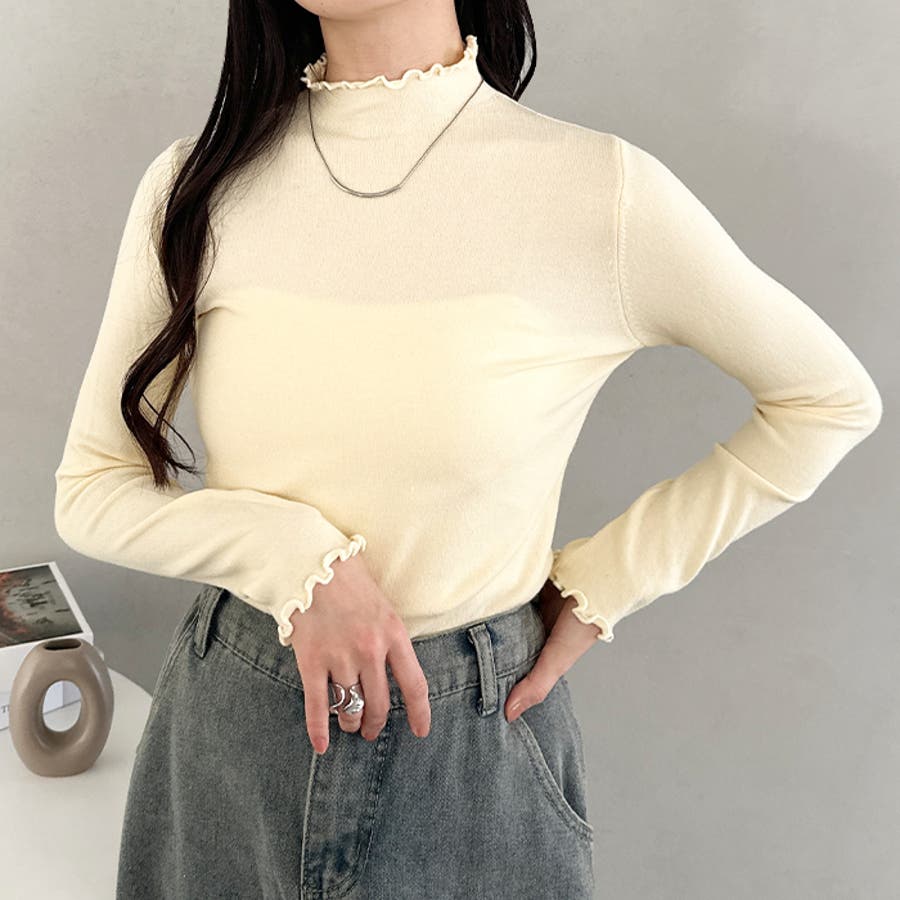 薄手なのでスウェットやカーディガンのレイヤードスタイルに取り入れやすいのも魅力♪
