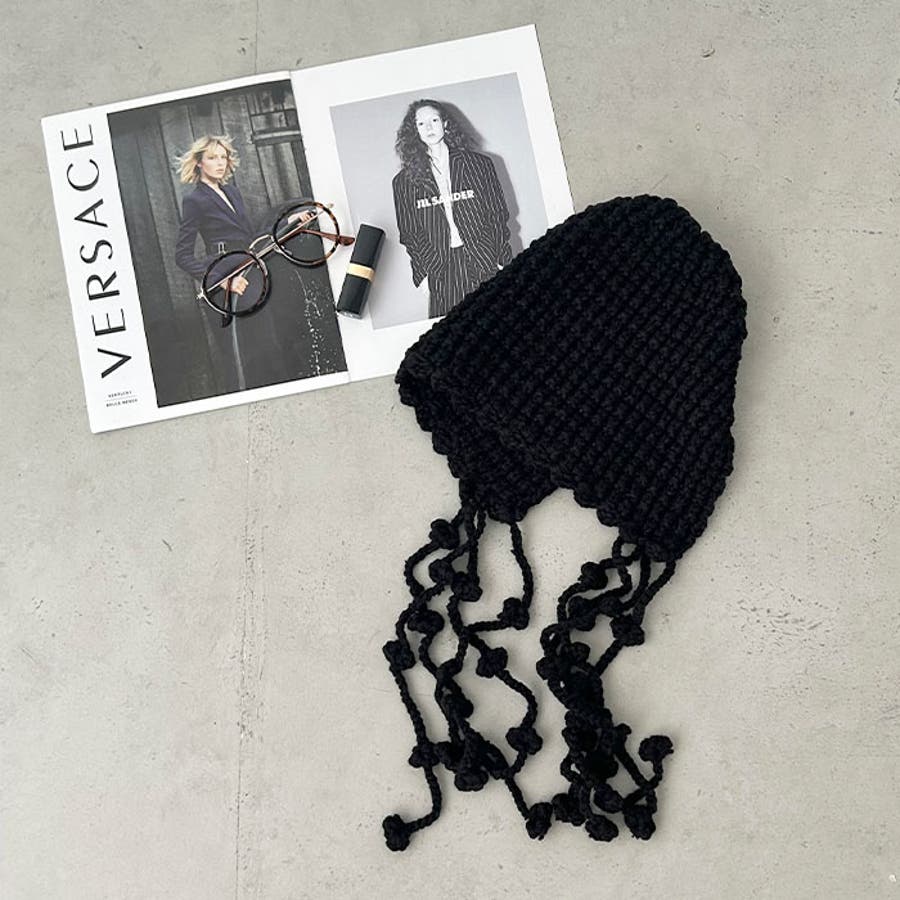 ラフに垂れたポンポンはアクセントになり付けるだけで