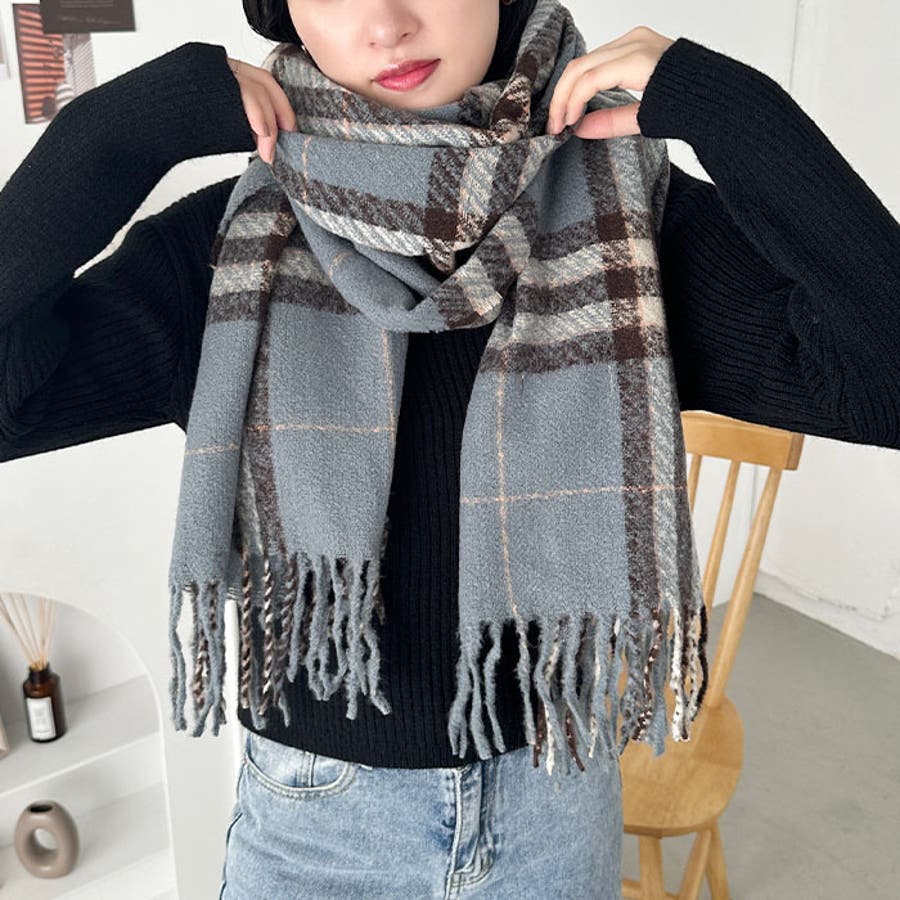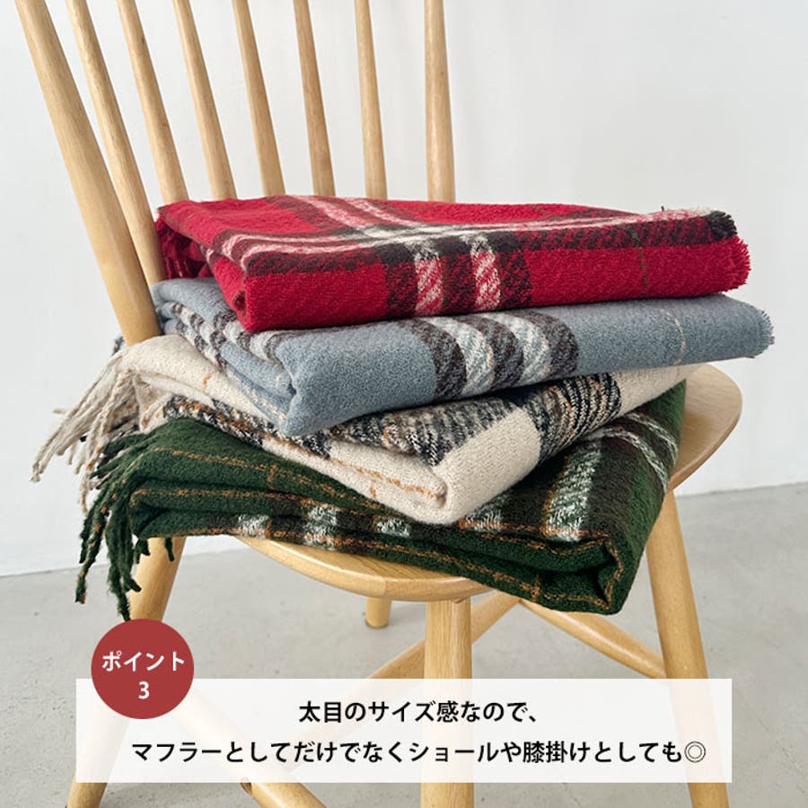 太目のサイズ感なので、マフラーとしてだけでなくショールや膝掛けとしても◎