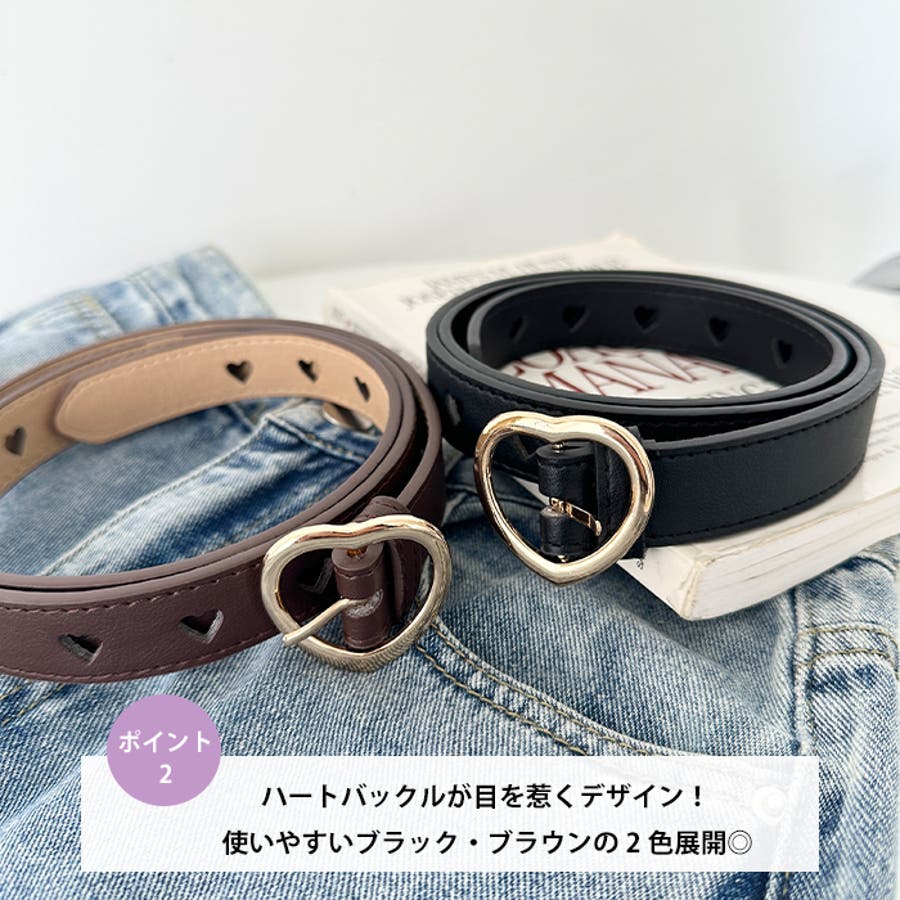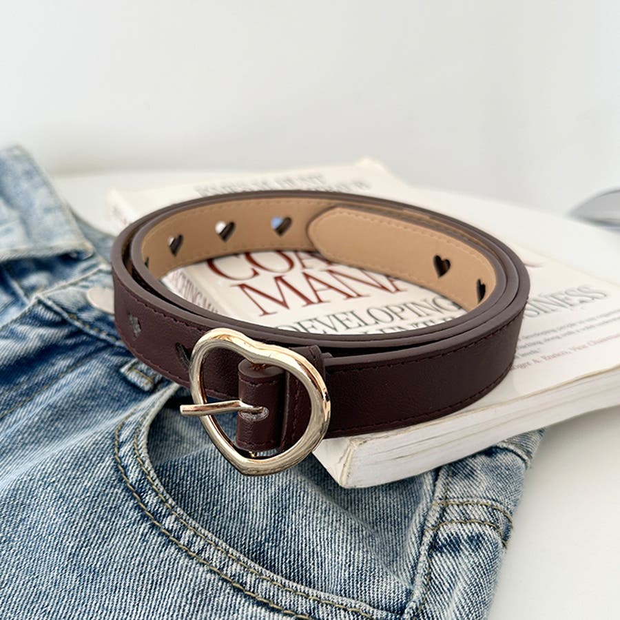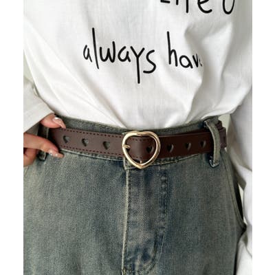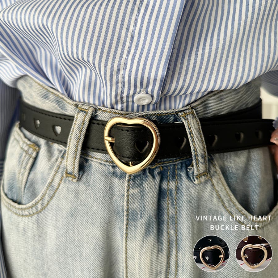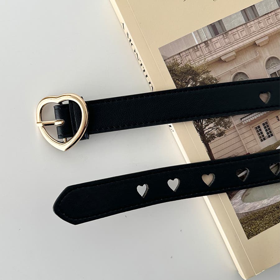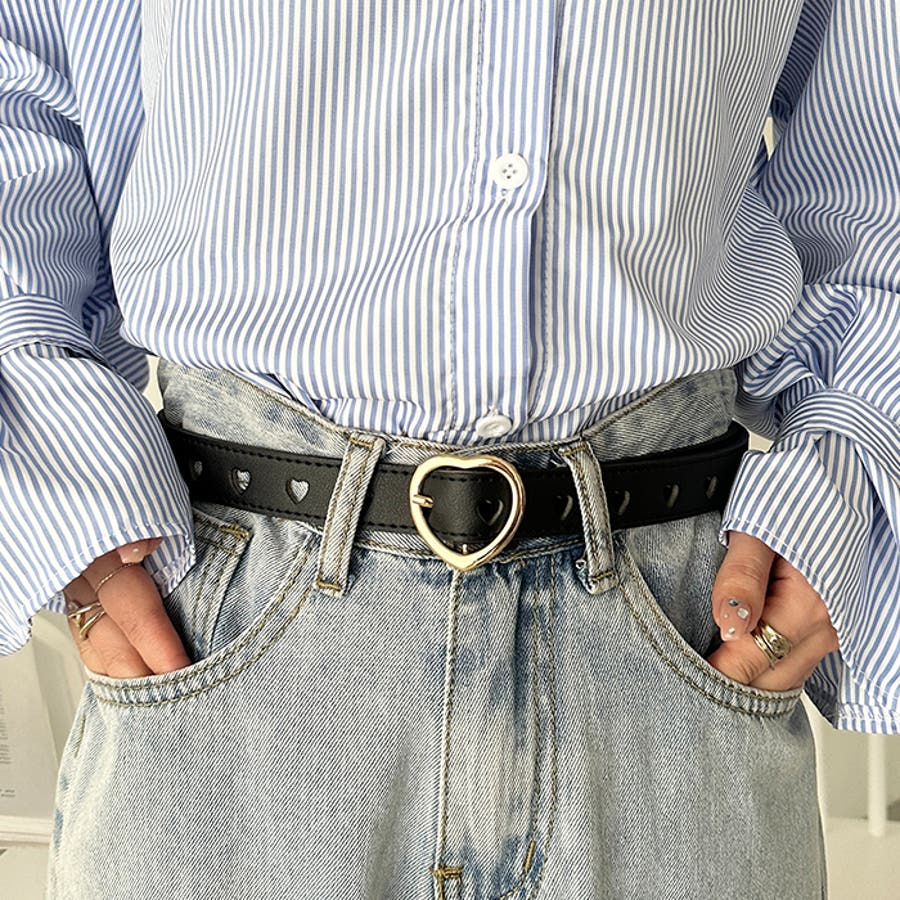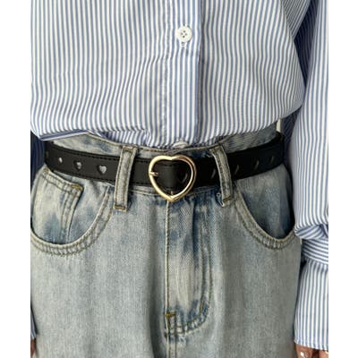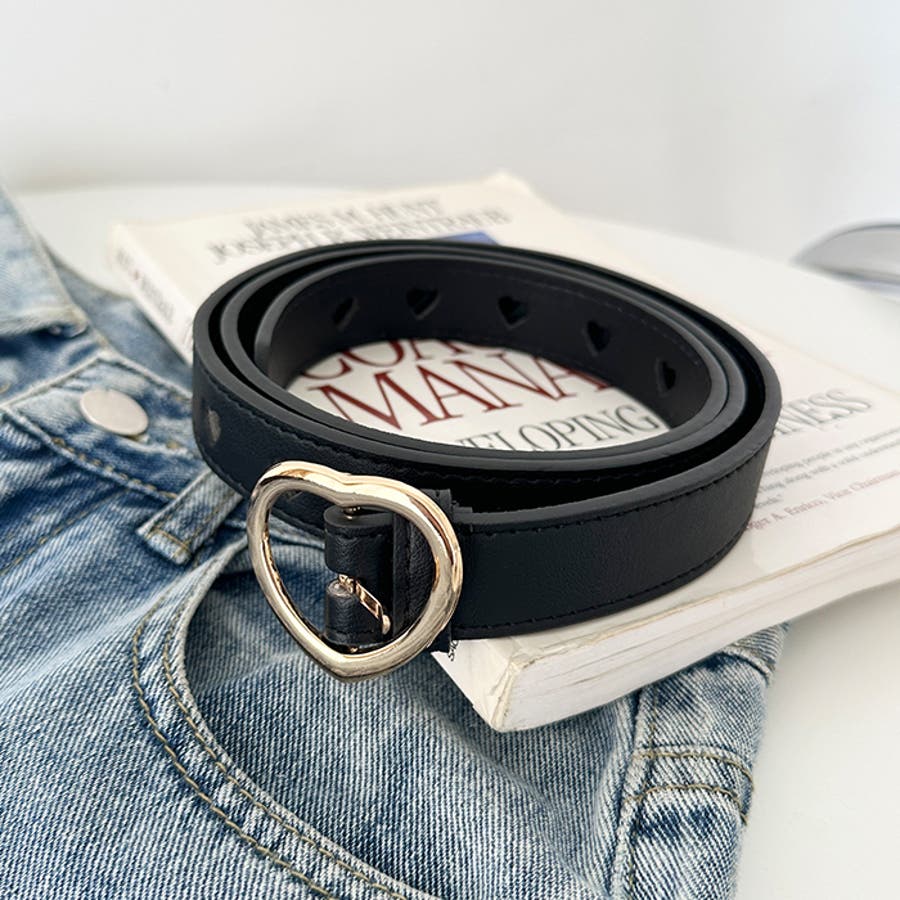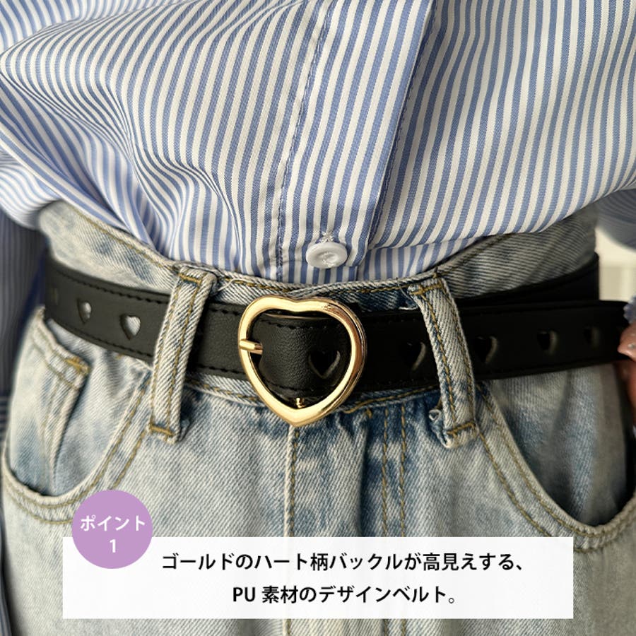 ゴールドのハート柄バックルが高見えする、PU素材のデザインベルト。