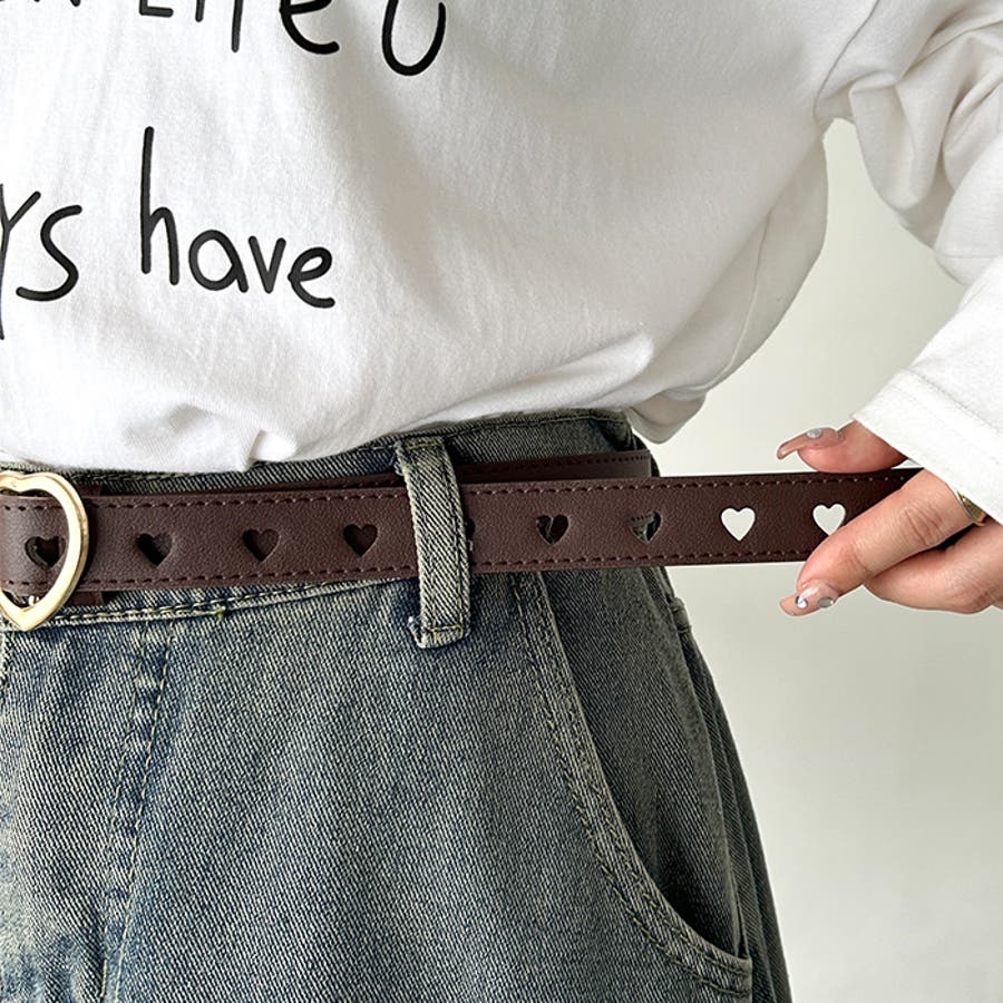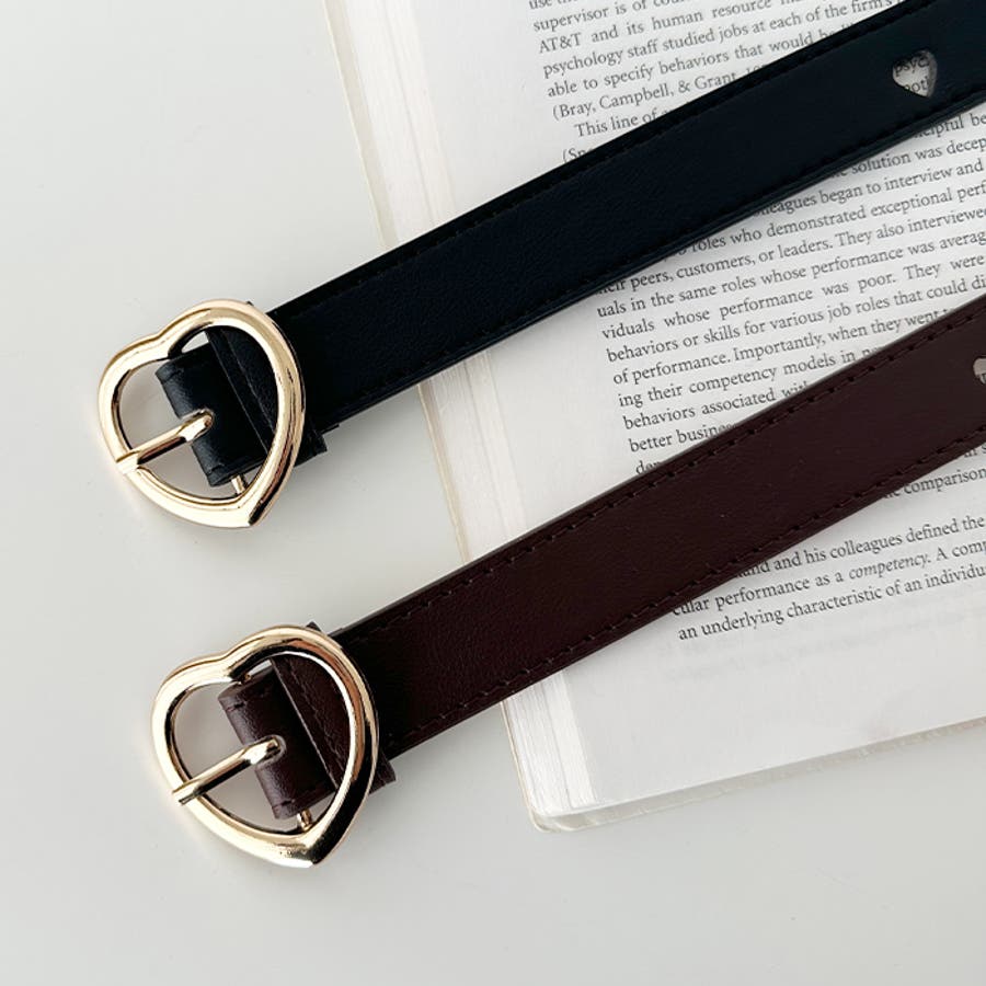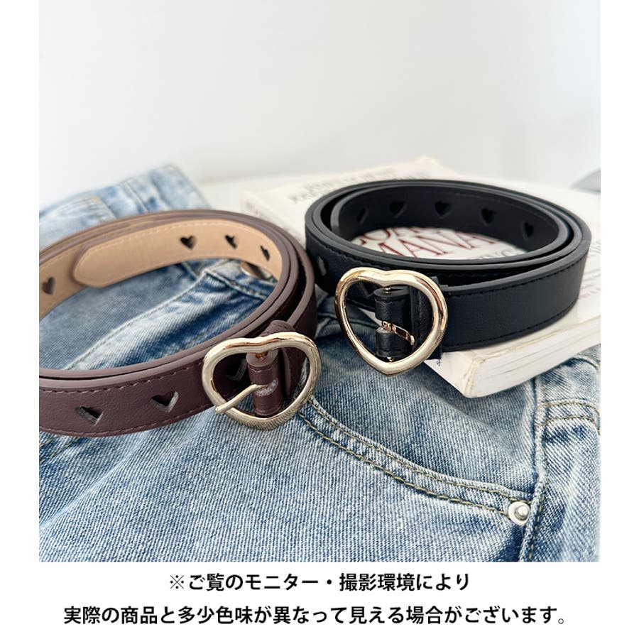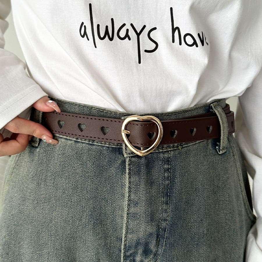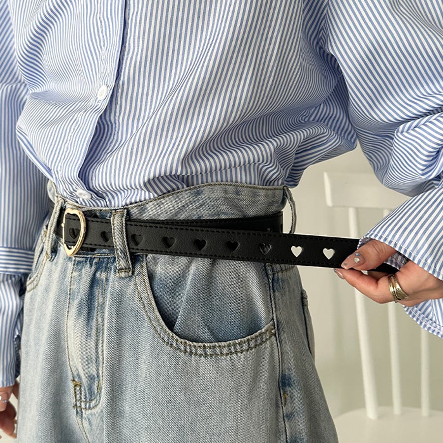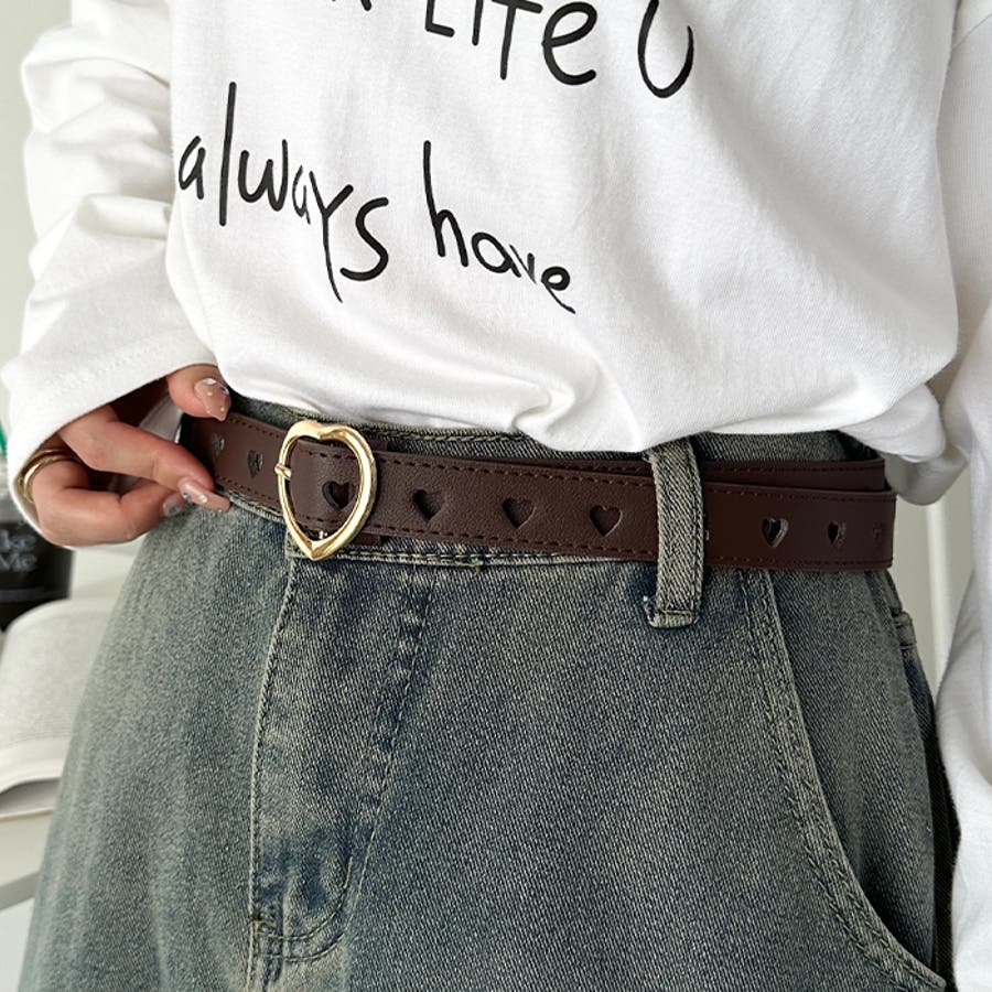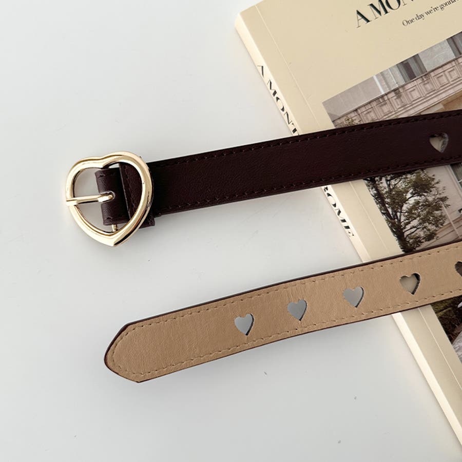 ゴールドのハート柄バックルが高見えする、PU素材のデザインベルト。
