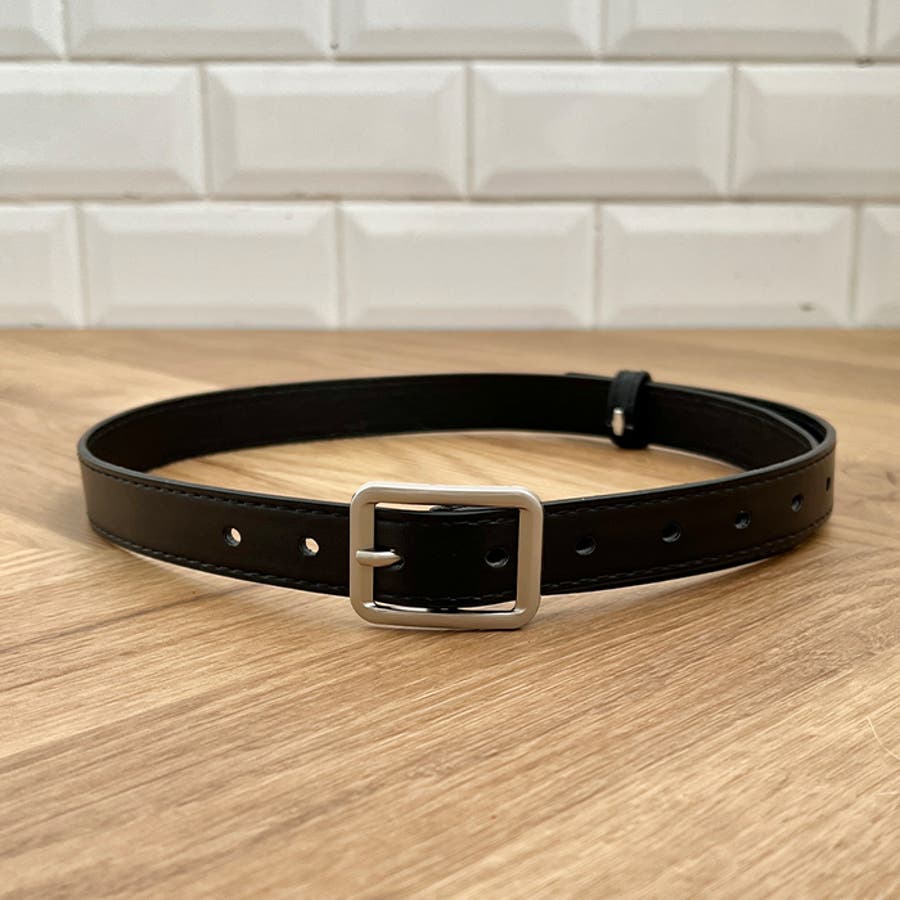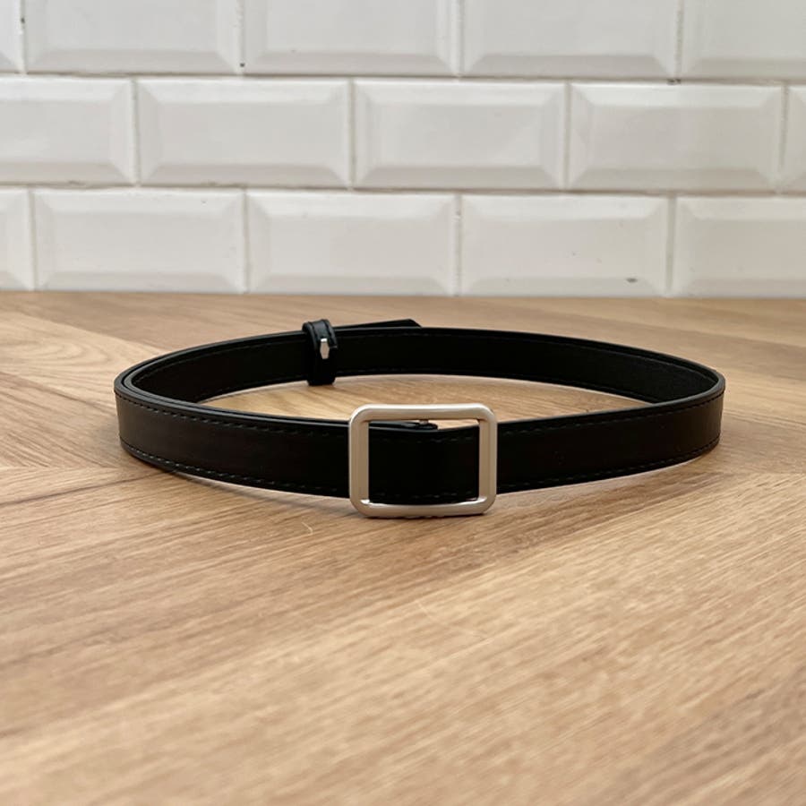 【ブラック系その他3】...バックル部分がスクエアシルバー、留め穴あり