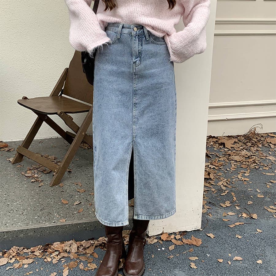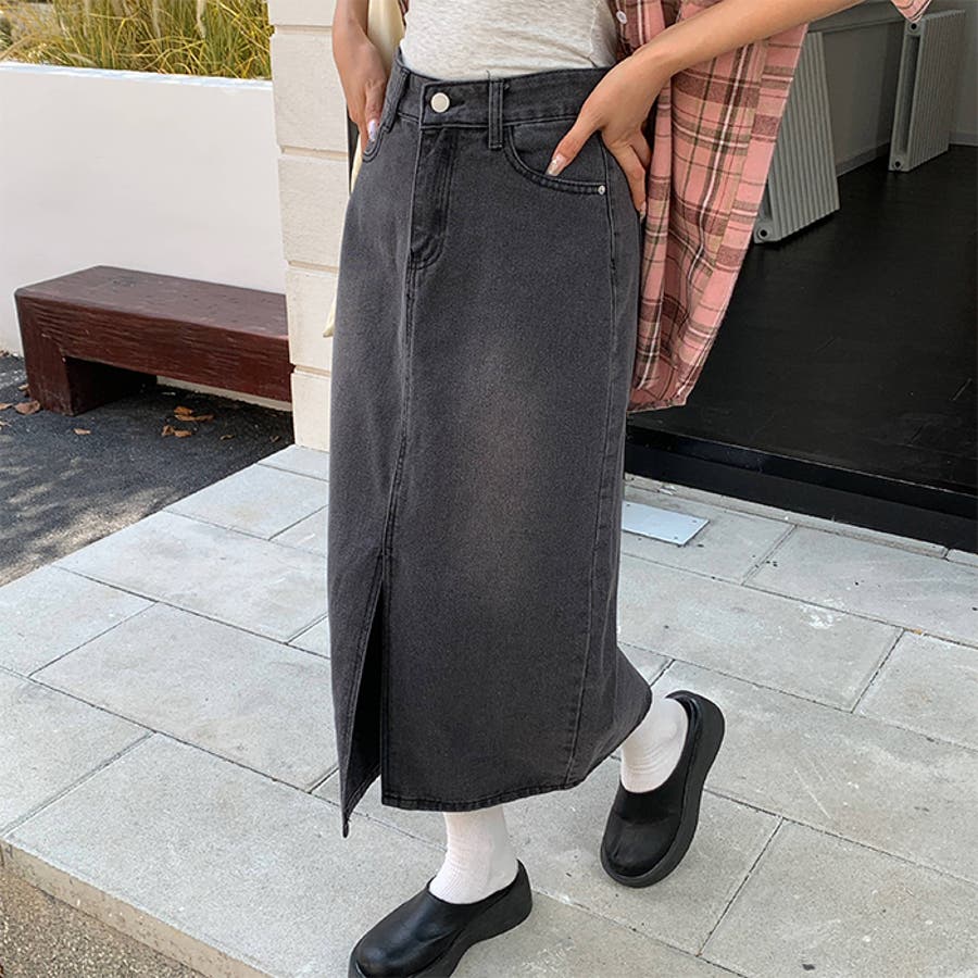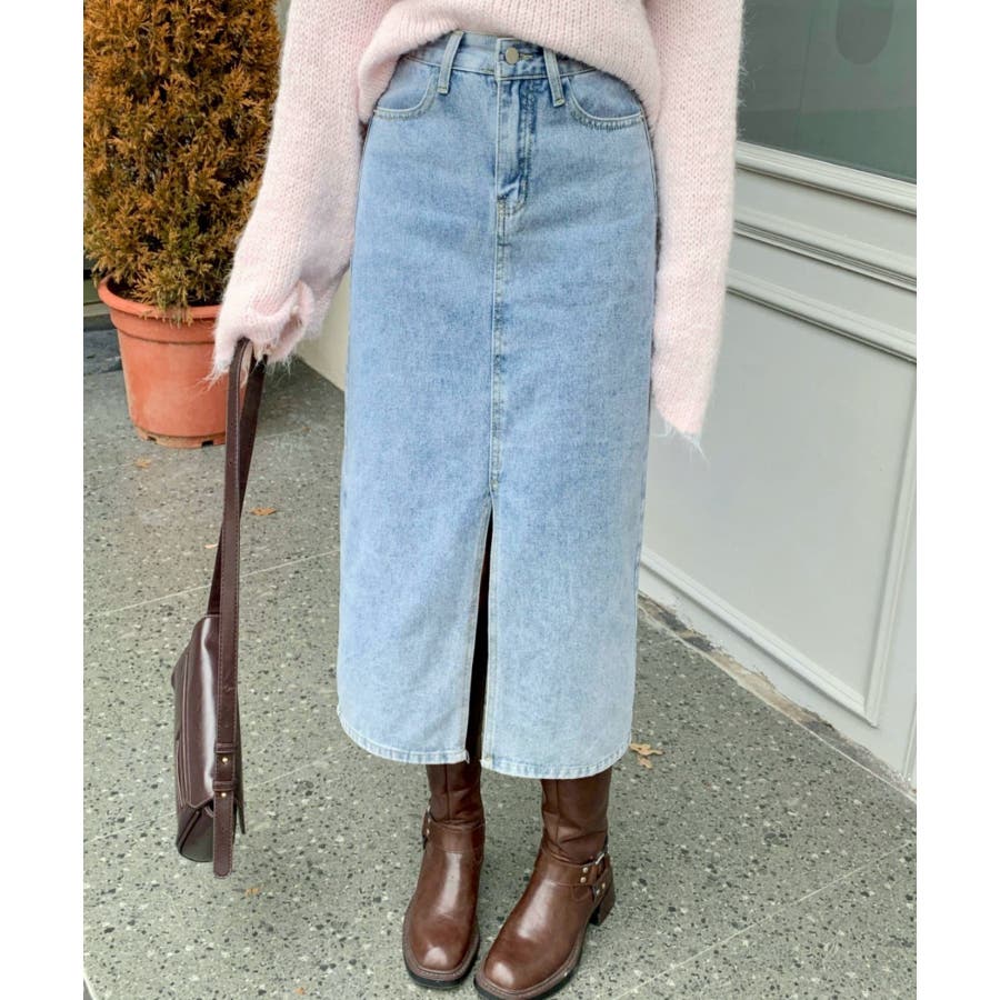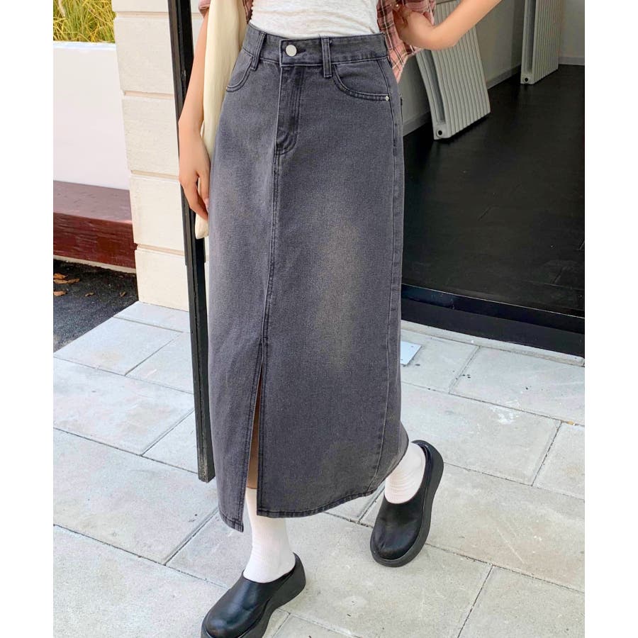 美しいIラインシルエットが魅力のロングデニムスカート。