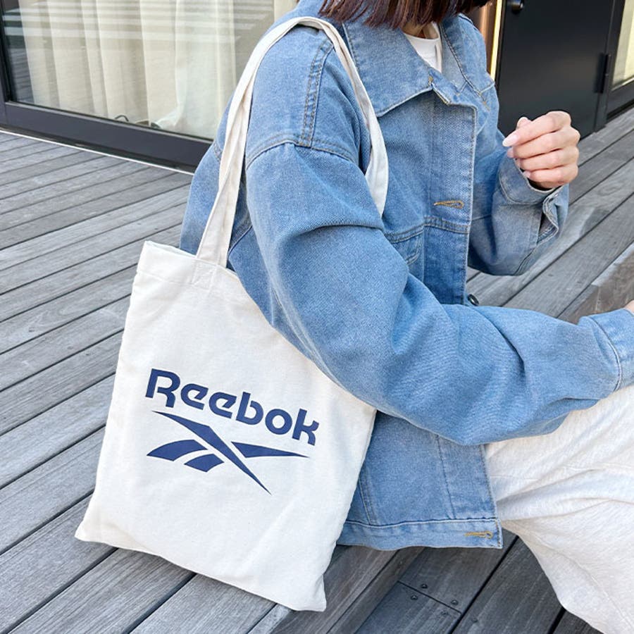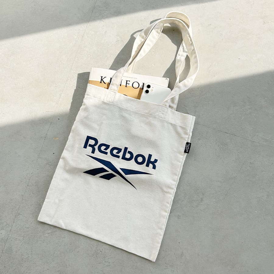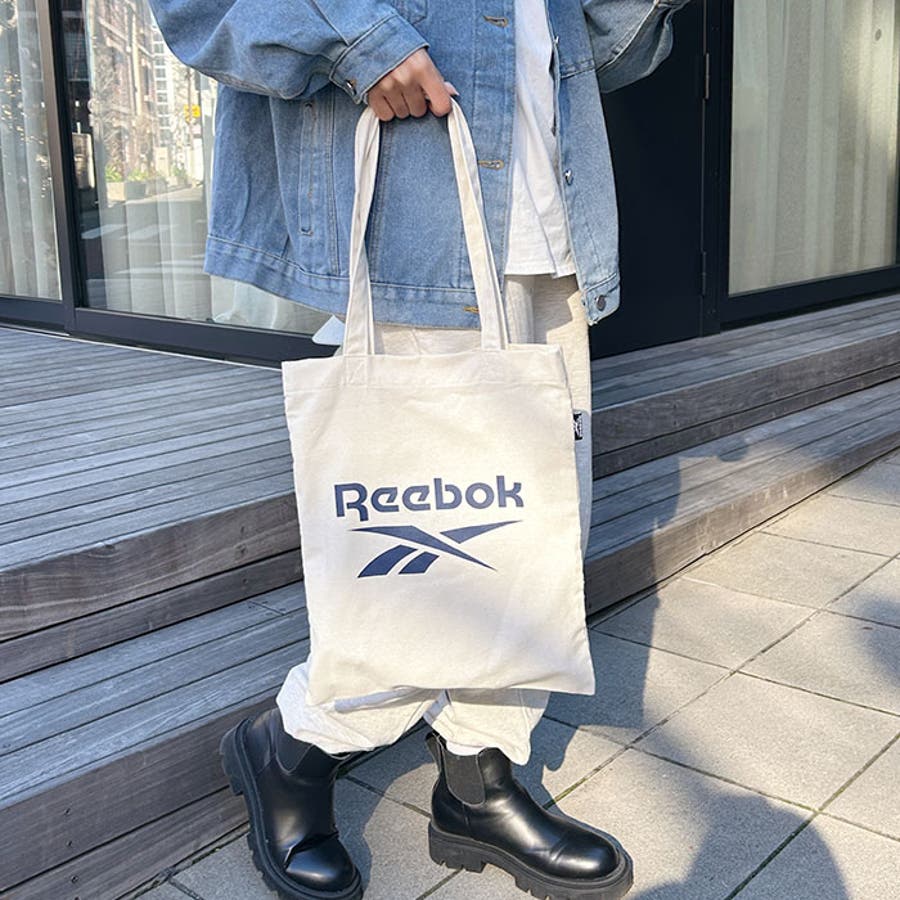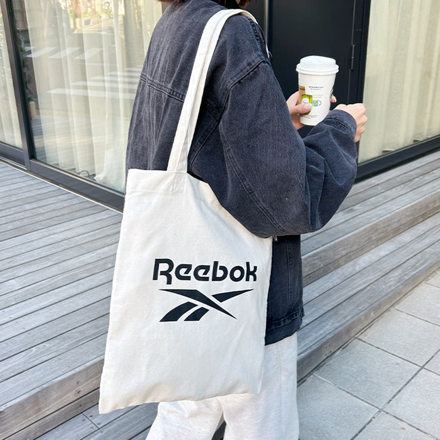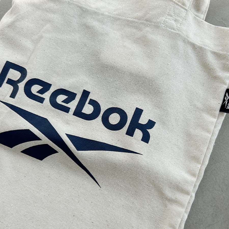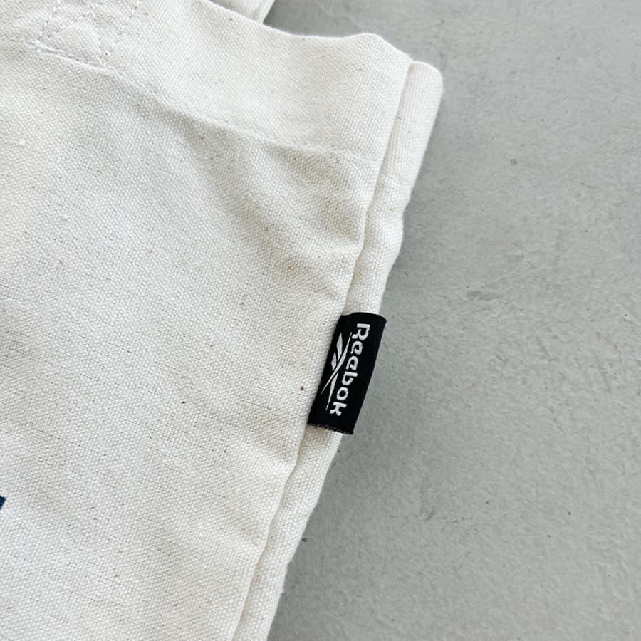 Reebokのロゴ刺繍が全面中央に入ったキャンバスバッグ。