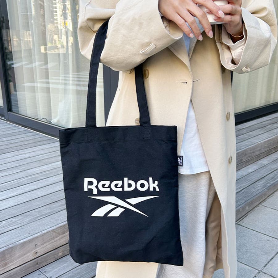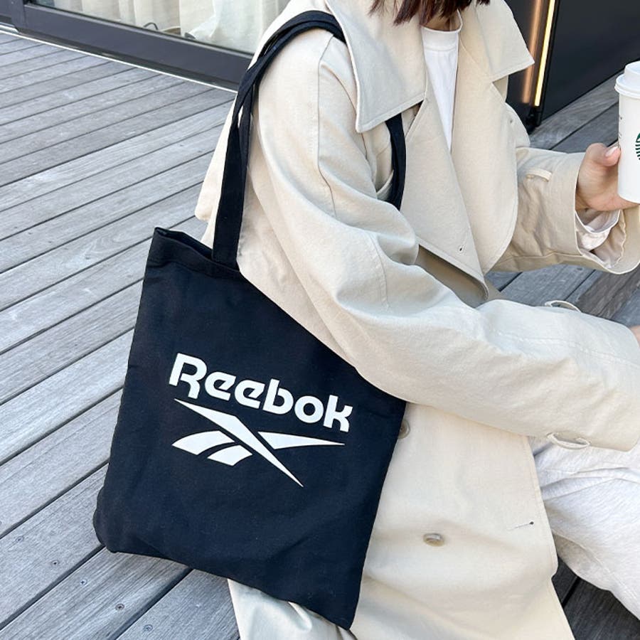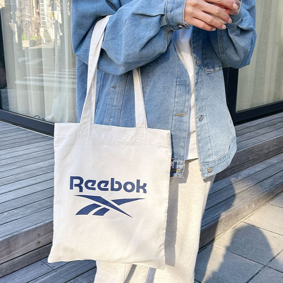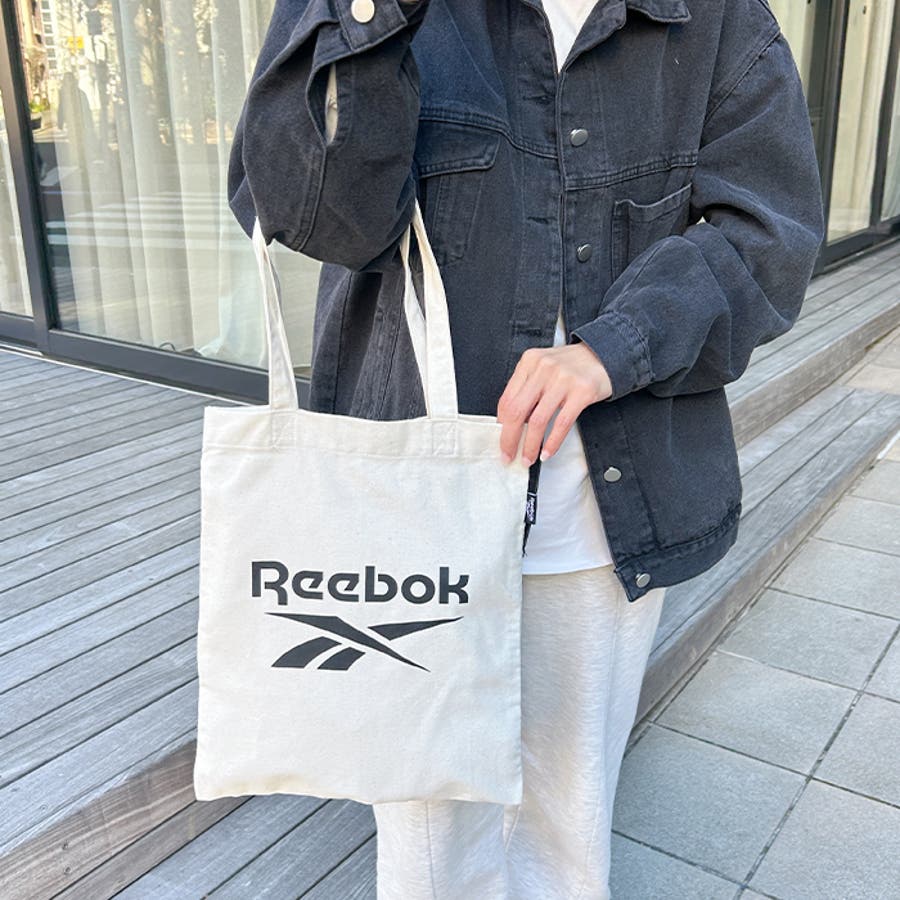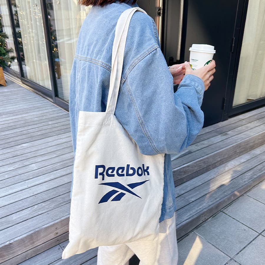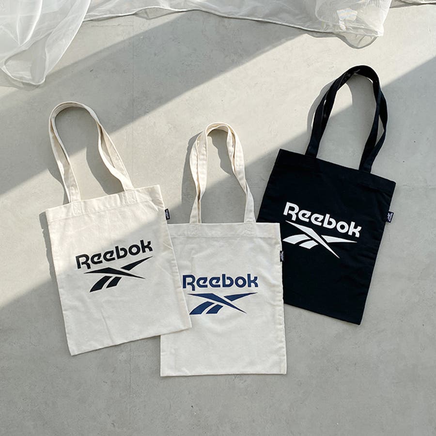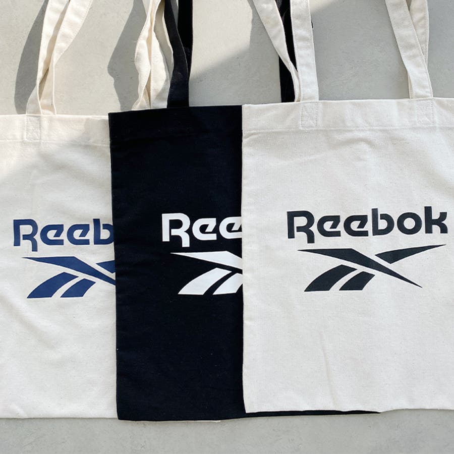 Reebokのロゴ刺繍が全面中央に入ったキャンバスバッグ。