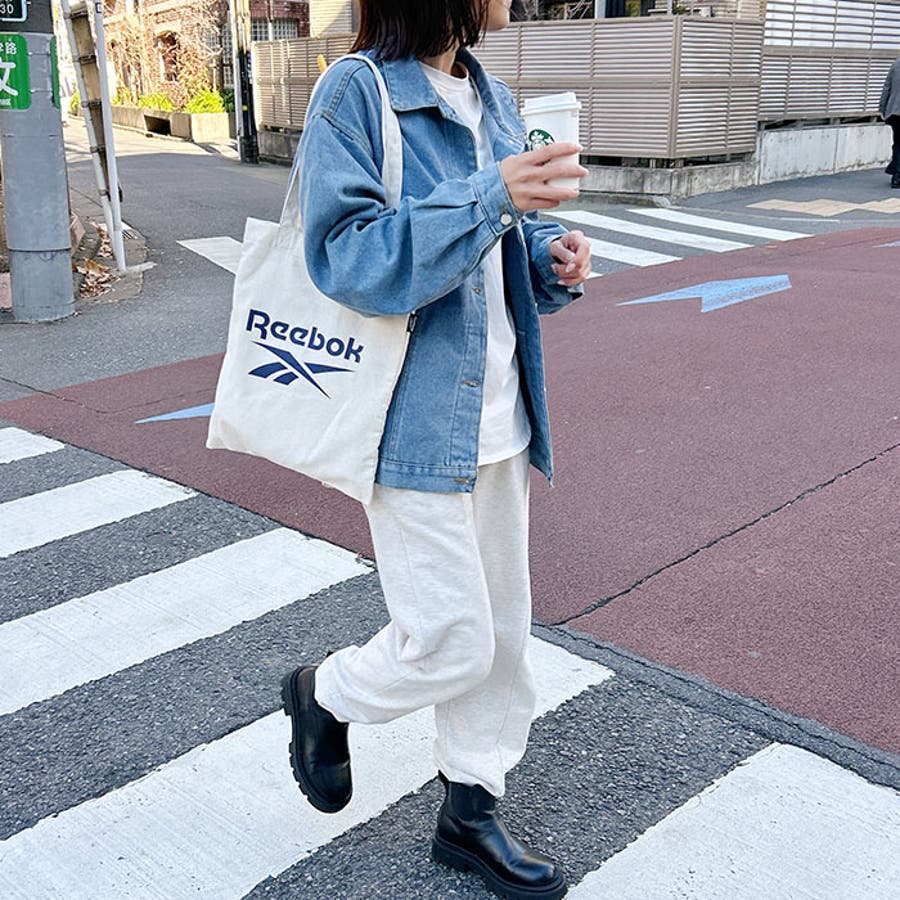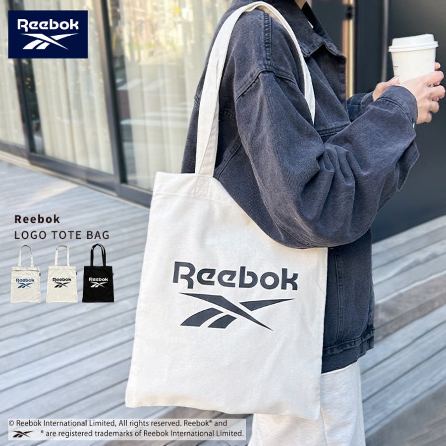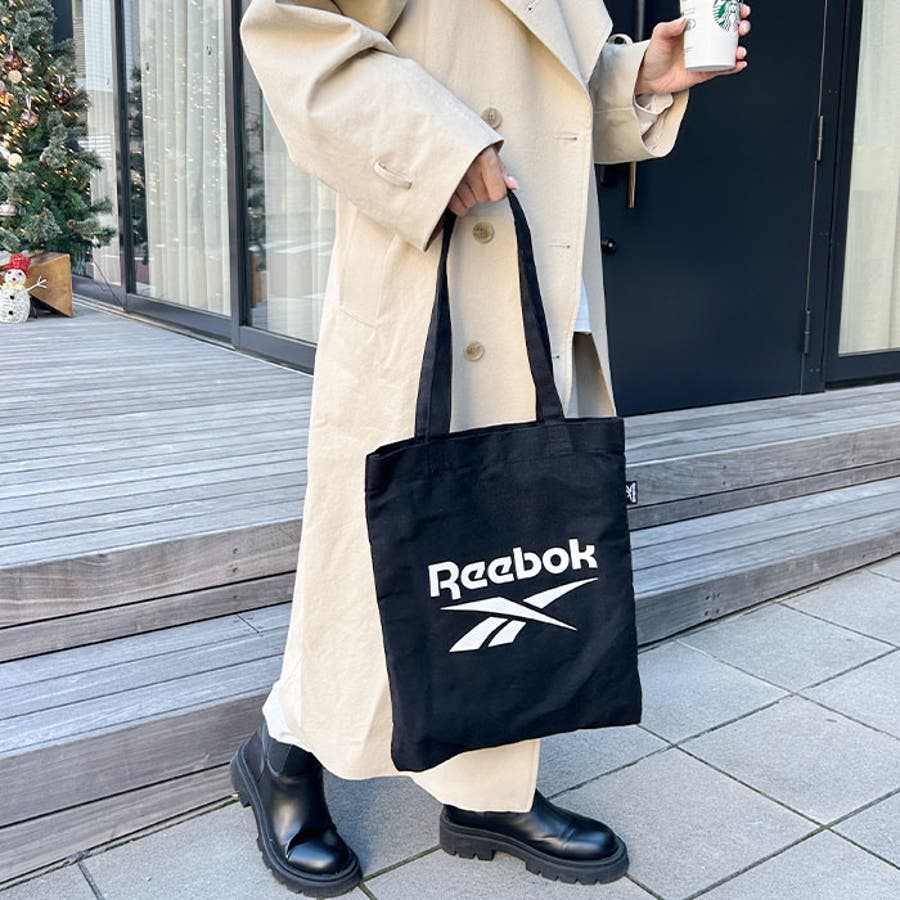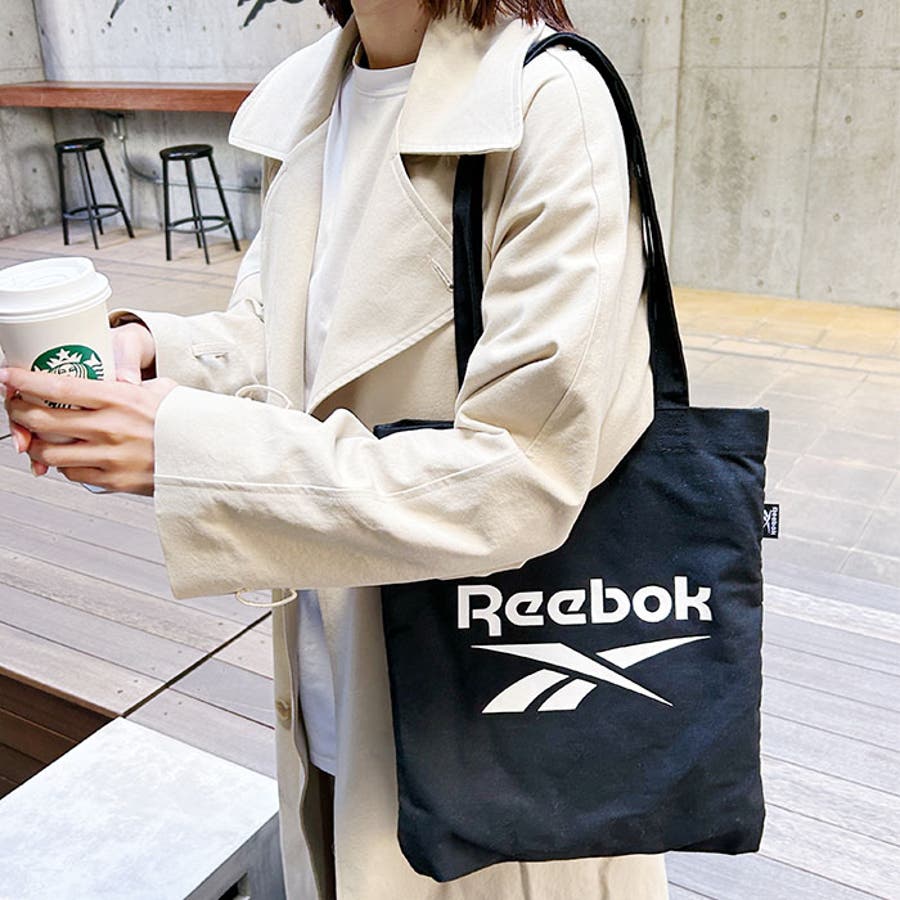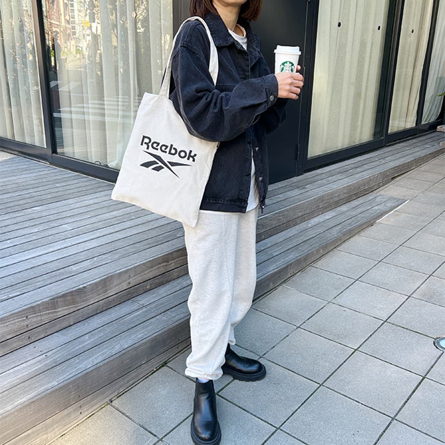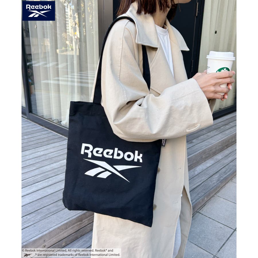 Reebokのロゴ刺繍が全面中央に入ったキャンバスバッグ。