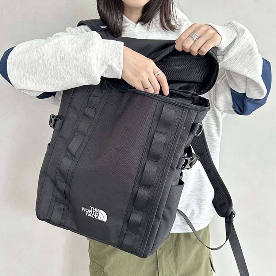 ノースフェイスのオリジナルアルファキャンプボックスをリュック仕様にしたタフネスなデザイン。