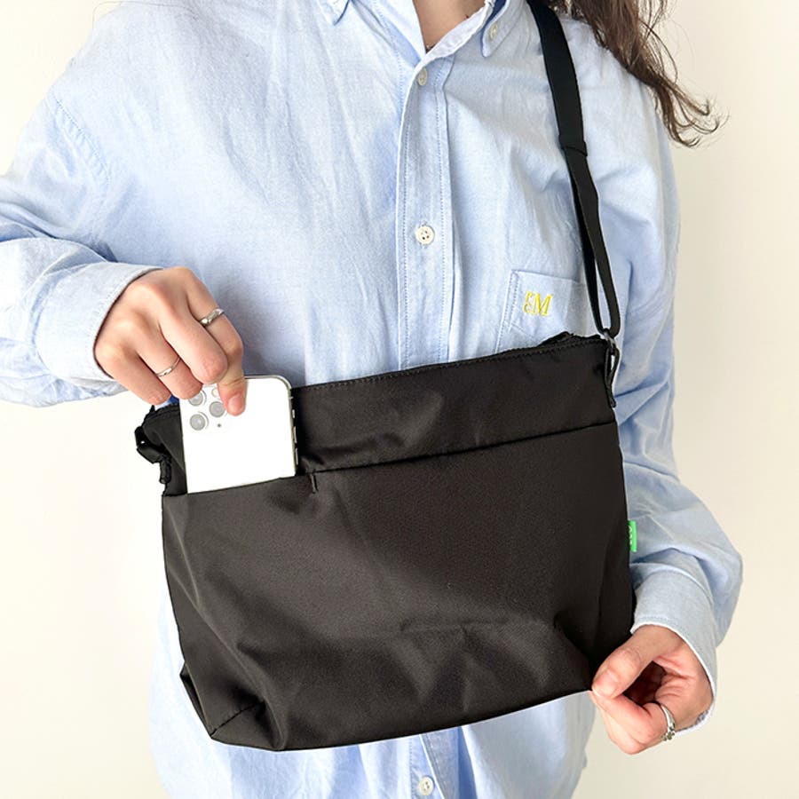 ・コンパクトなサイズ感でありながら、高い収納力。中身が見えやすい横長のショルダーバッグです。