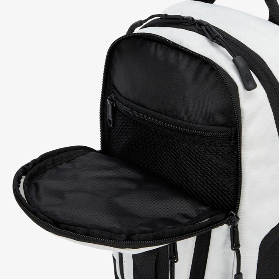 フロントにはファスナーポケット、内側にも広い収納スペースとオープンポケット、ファスナーポケットが付いており、鍵やカード等の貴重品が安全に収納できます。