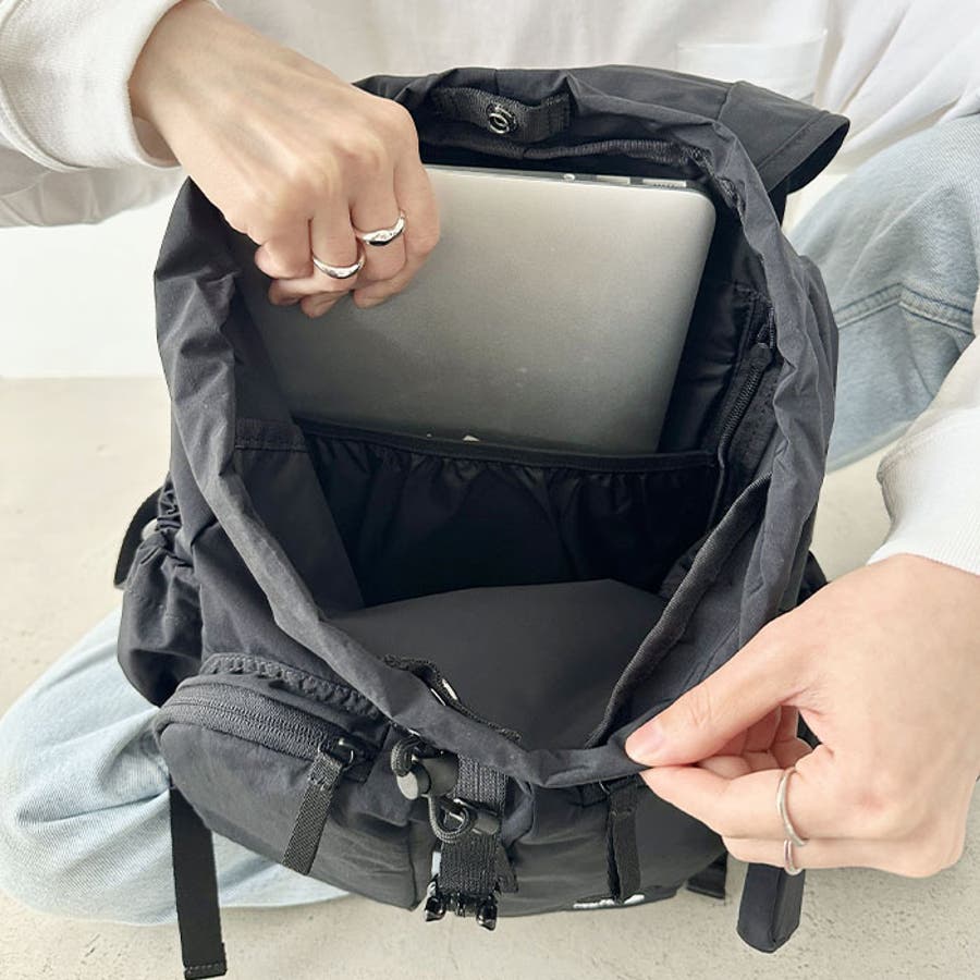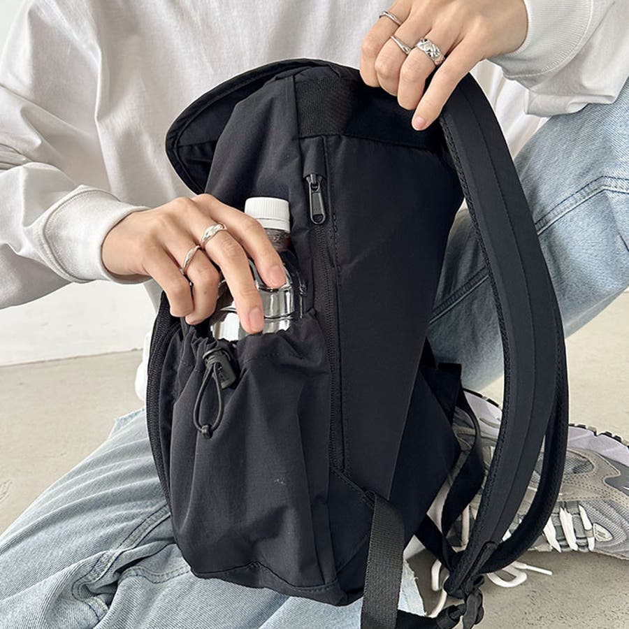 両サイドにはストリングポケット付きでペットボトル等を入れられます。