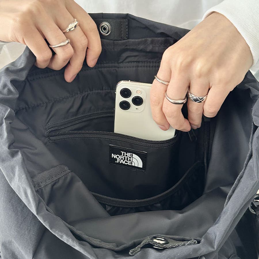 内側にはファスナーポケットとオープンポケット付きで小物等、収納しやすい仕様です。