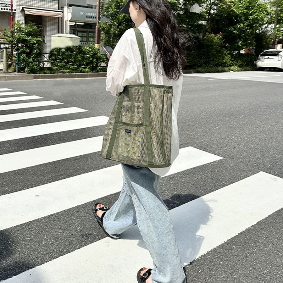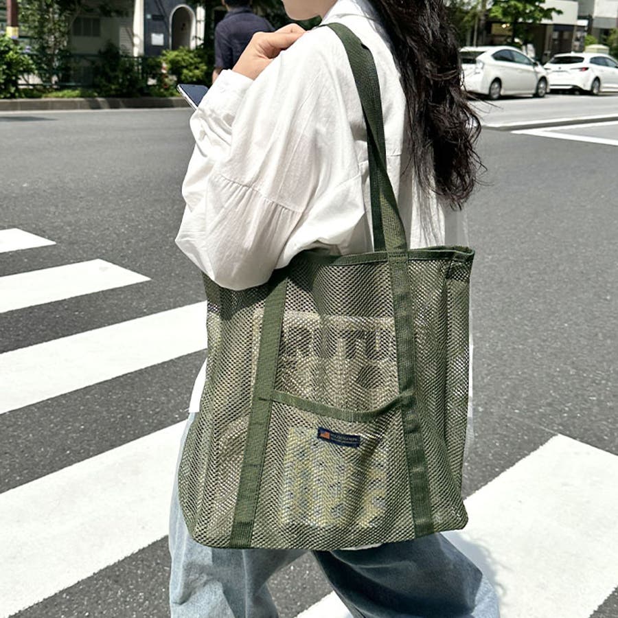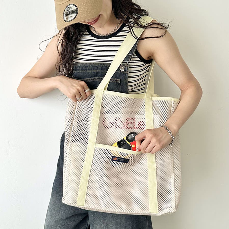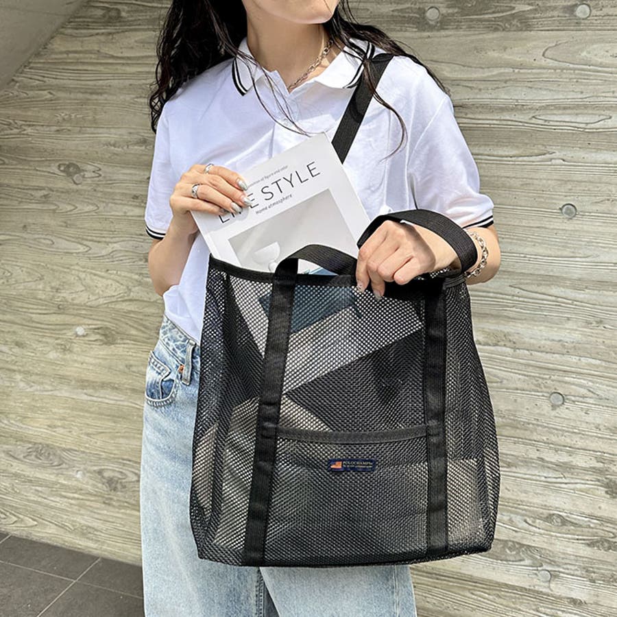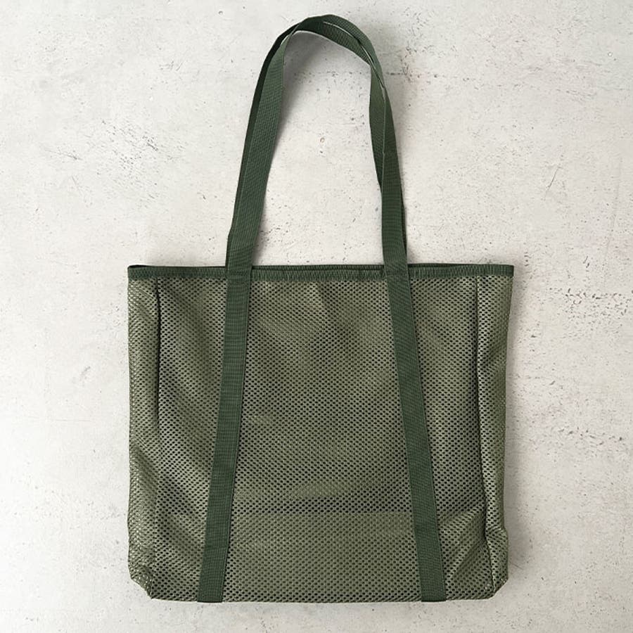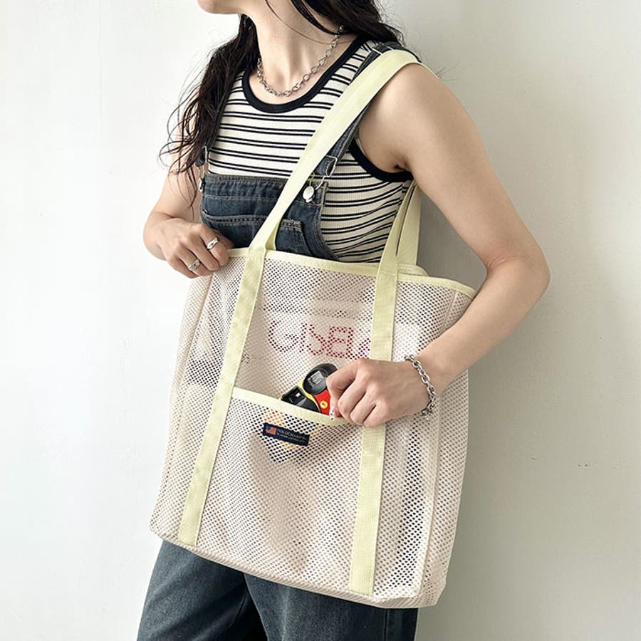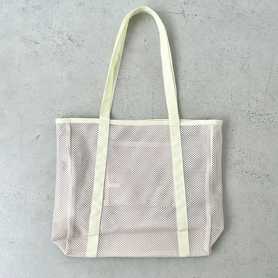 通気性に優れたメッシュ素材を使用した、軽やかな印象のトートバッグ。