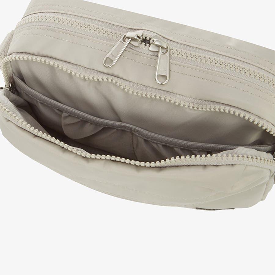 ダブルファスナー仕様のメインコンパートメント内にはジップ付きポケットがあり鍵やカードなど、貴重品を収納できます。