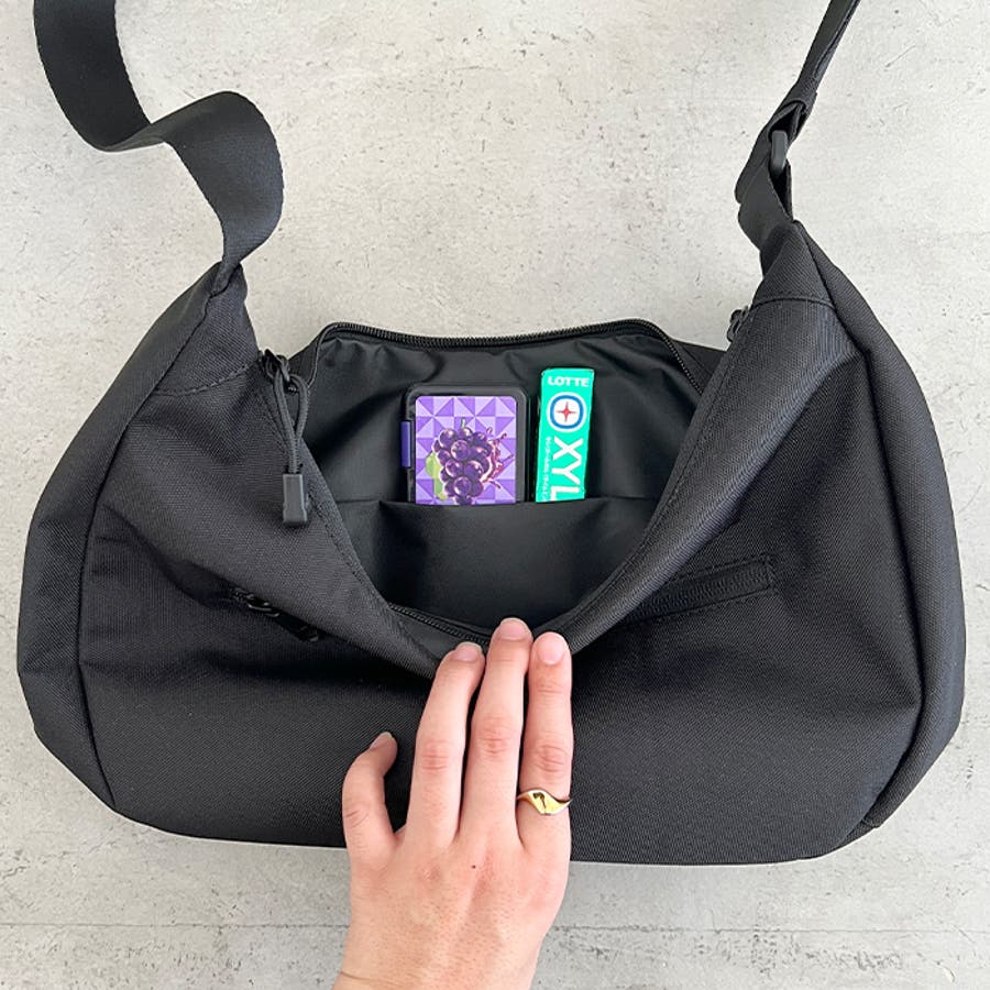 程よいサイズ感と控えめなロゴがどんなスタイリングにも合わせやすく、マチ付きで収納力も抜群。