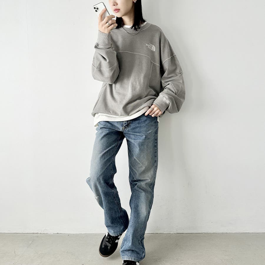 1枚ではもちろんレイヤードスタイルにもおすすめなユーズドっぽい長袖無地のプルオーバー。