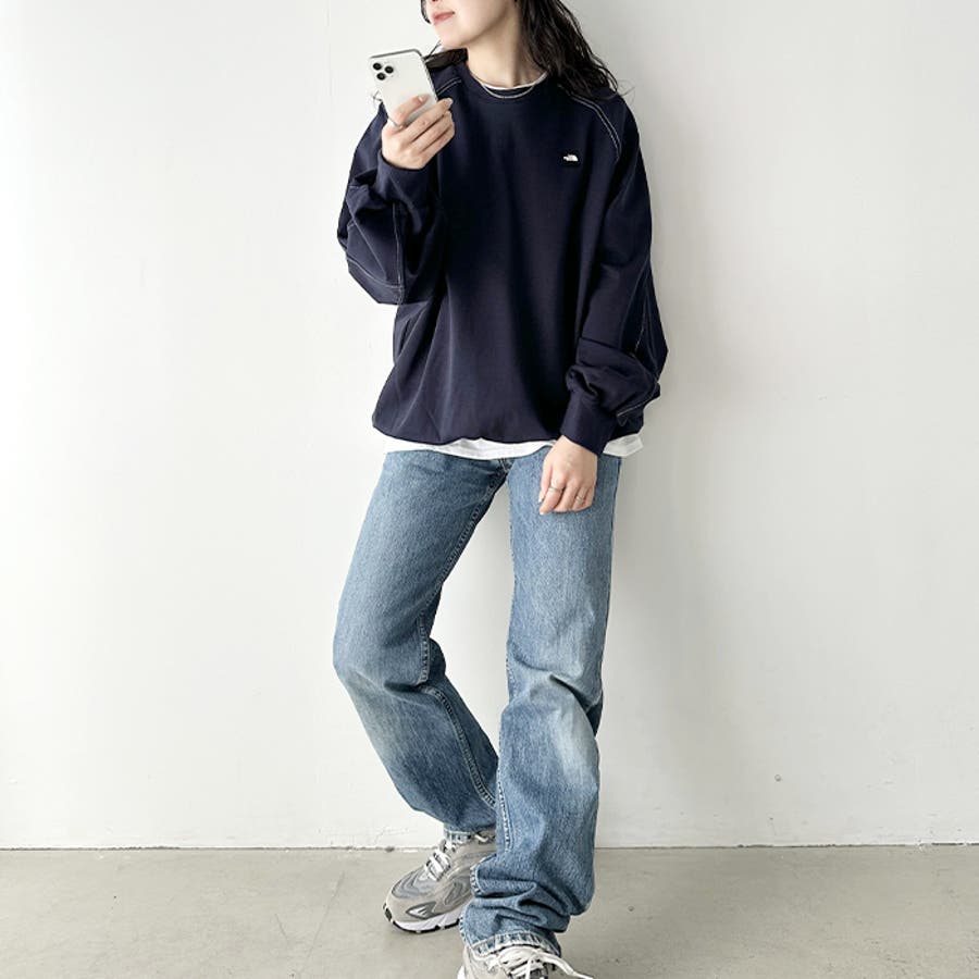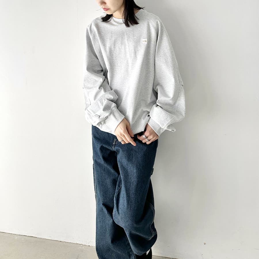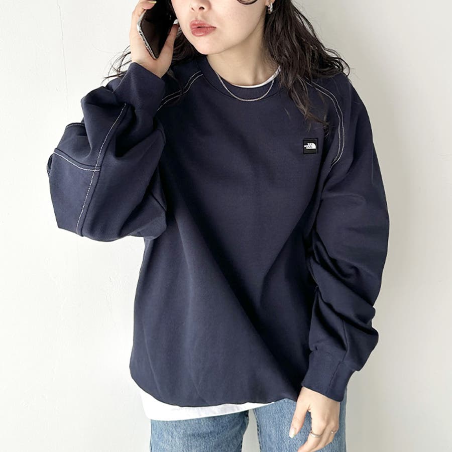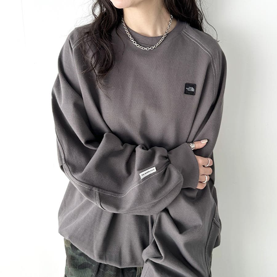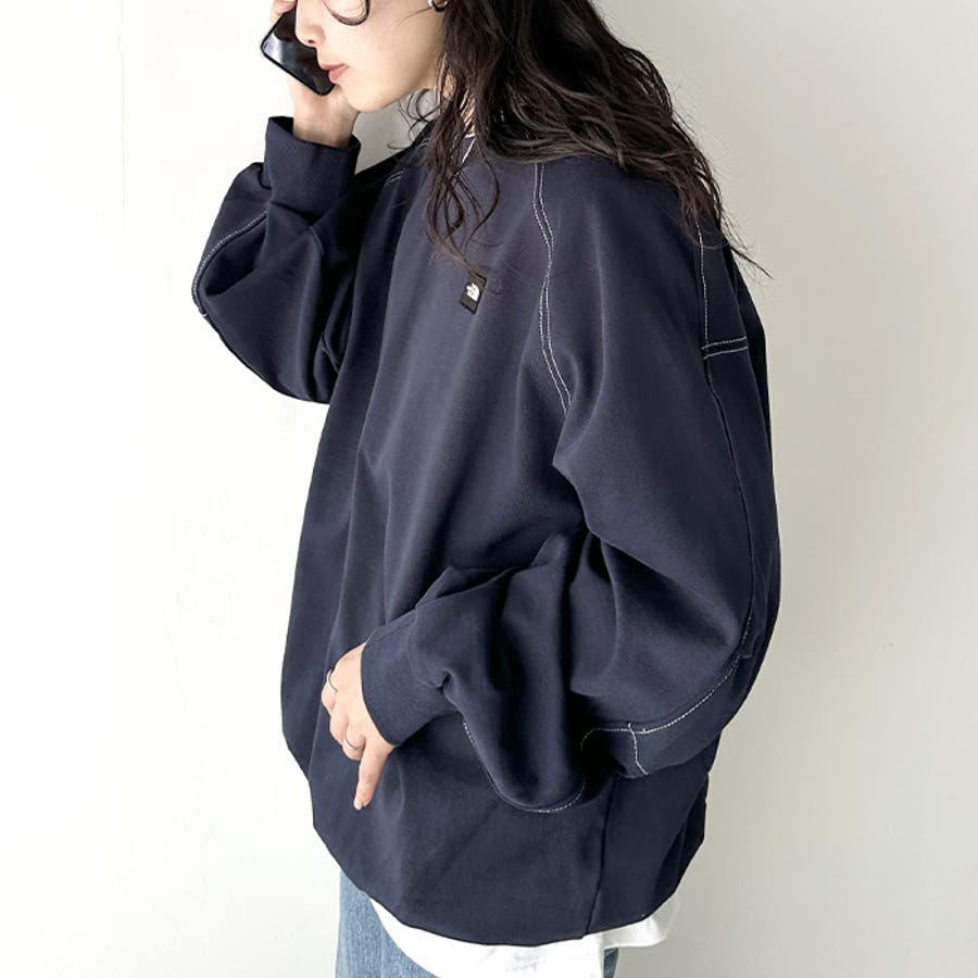 前身の左胸にはミニボックスロゴ刺繍、後ろ身中央にはブランドを代表する"ハーフドーム"ロゴのワンポイントサガラ刺繍が入った長袖スウェットです。