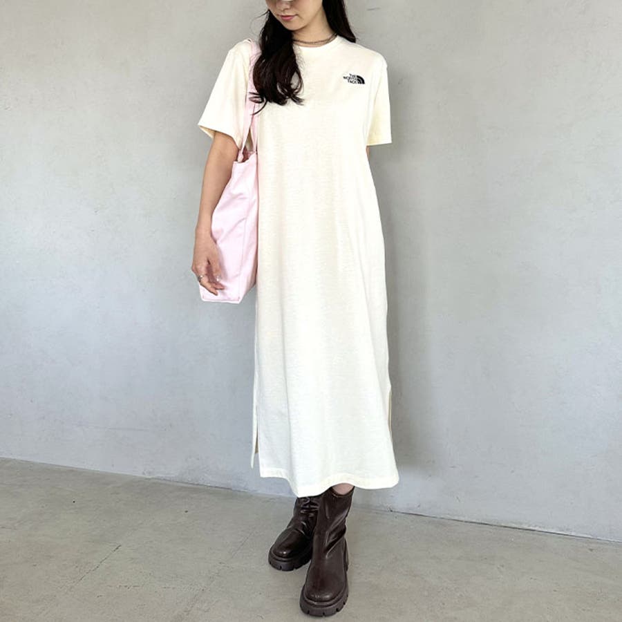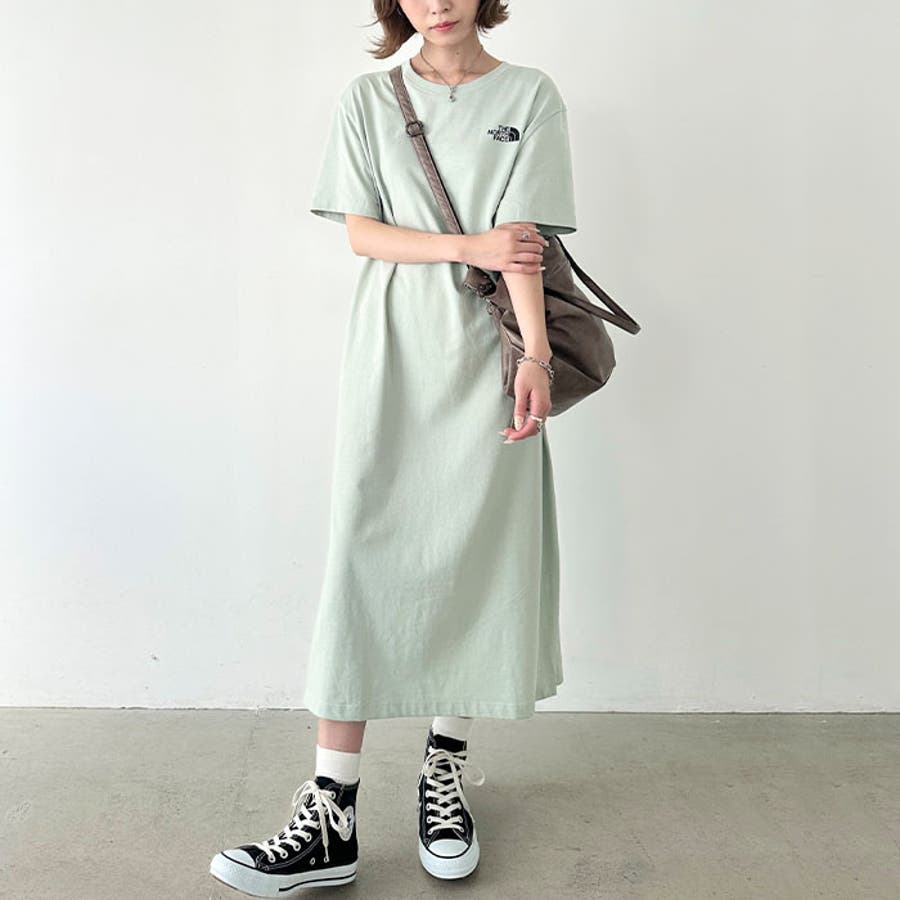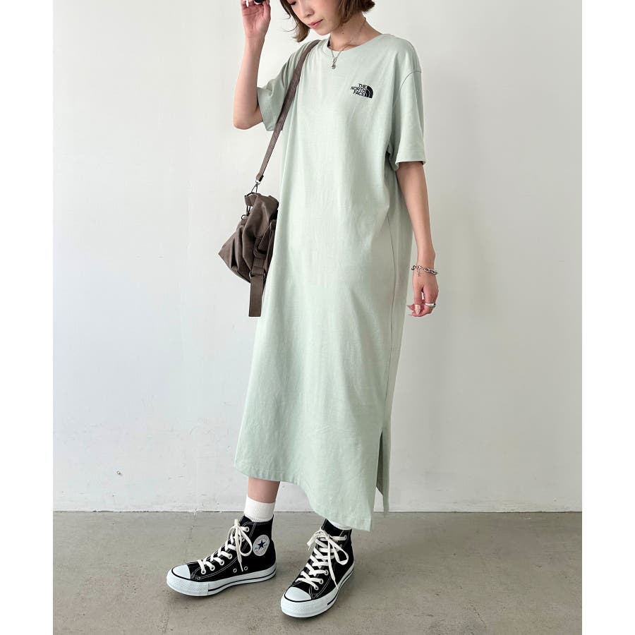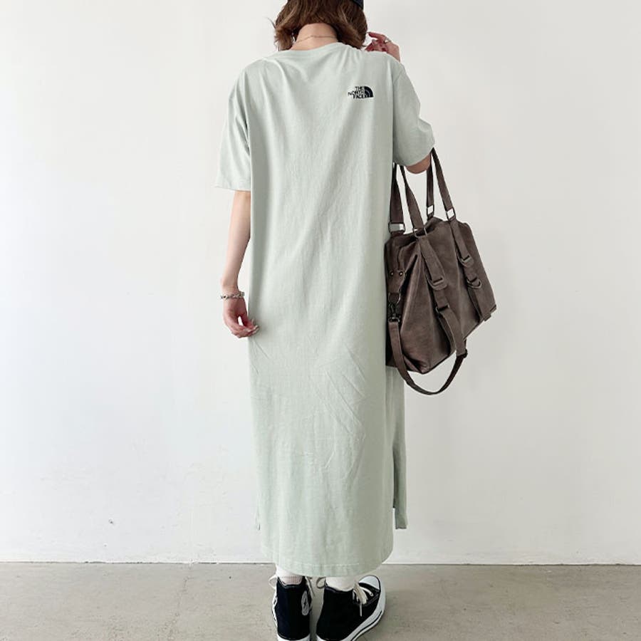 フロントとバックに、ブランド定番のハーフドームのワンポイントロゴがデザインされたロング丈のTシャツワンピース。