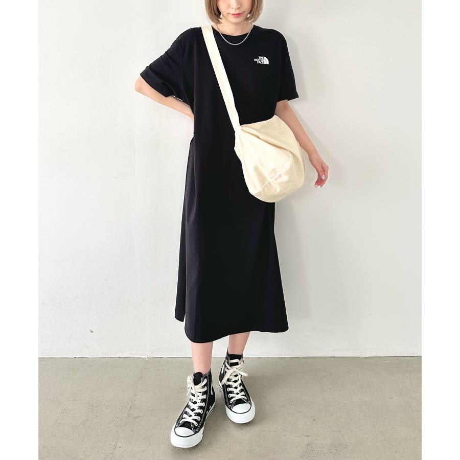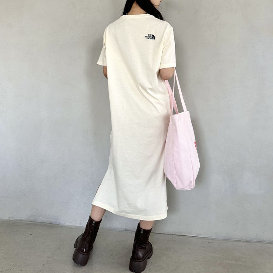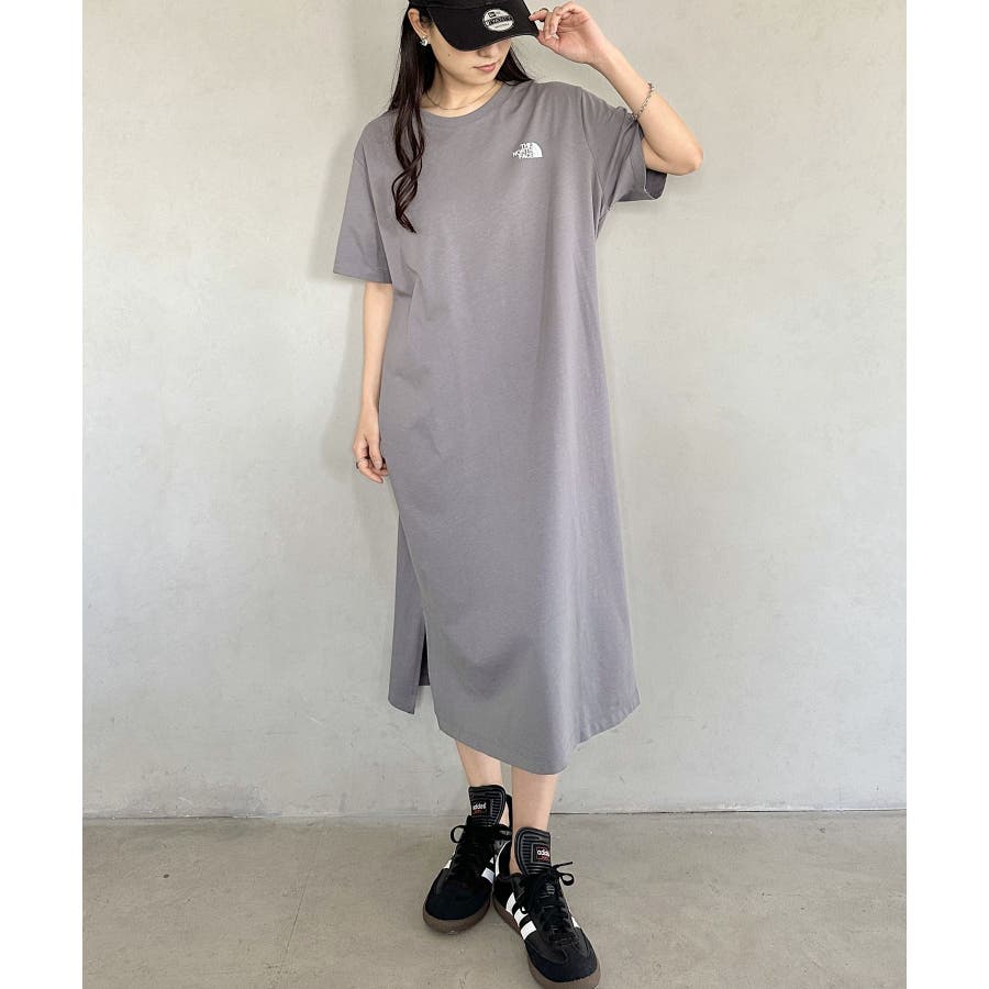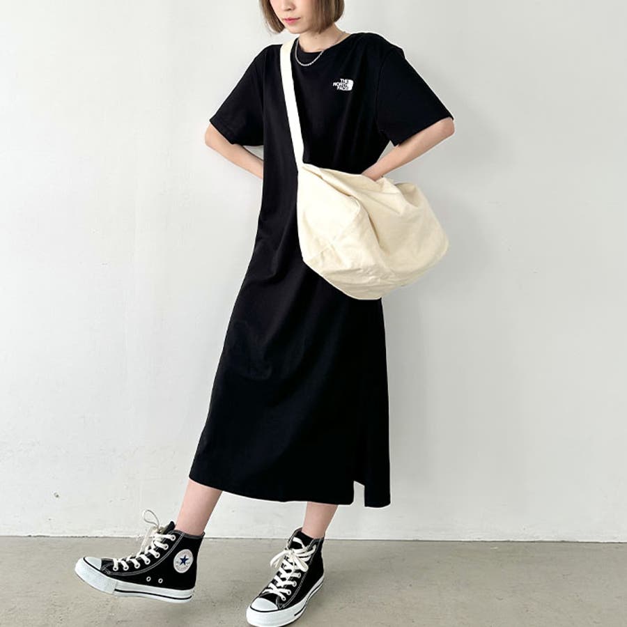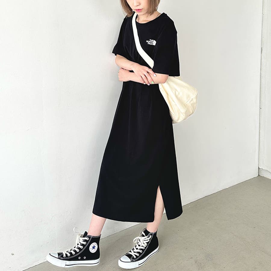 フロントとバックに、ブランド定番のハーフドームのワンポイントロゴがデザインされたロング丈のTシャツワンピース。