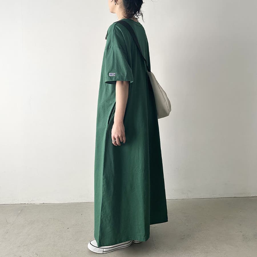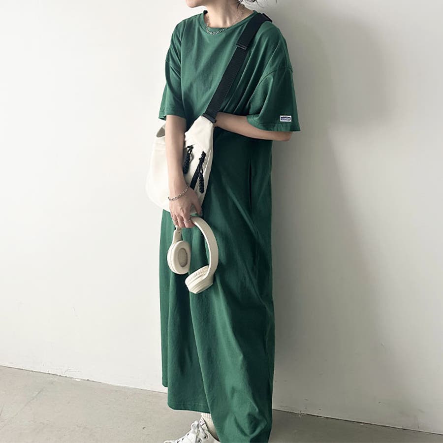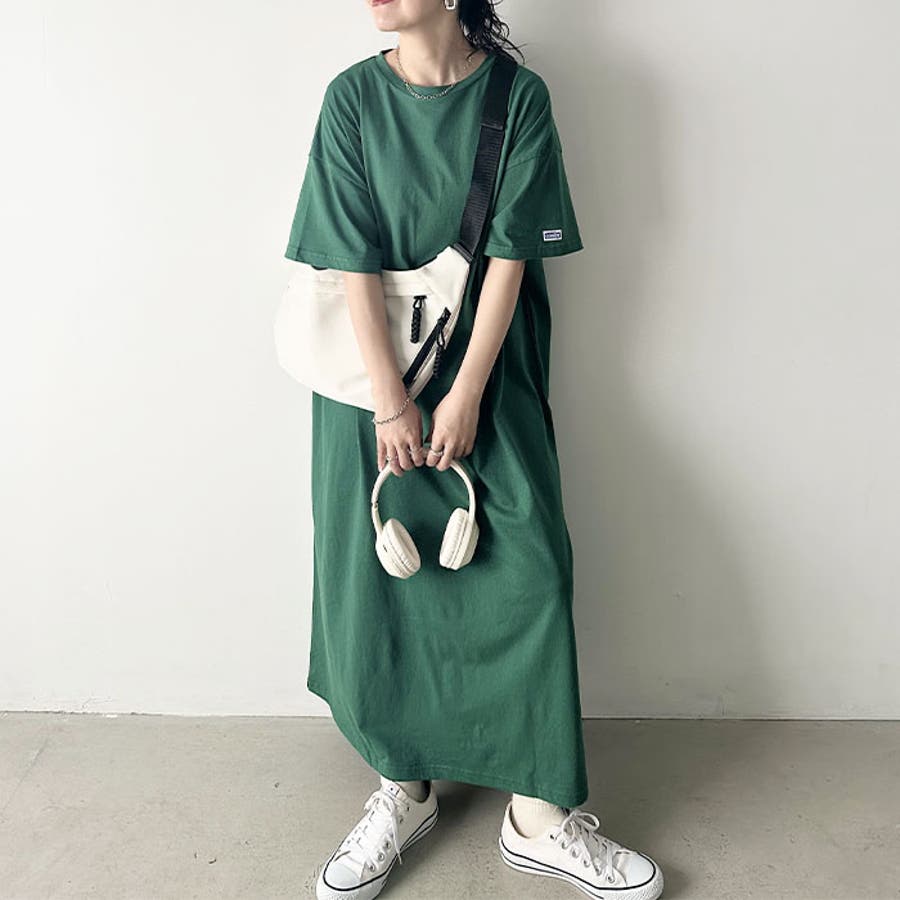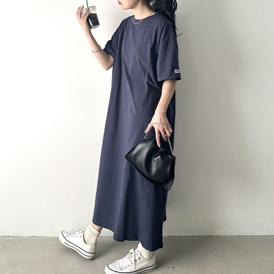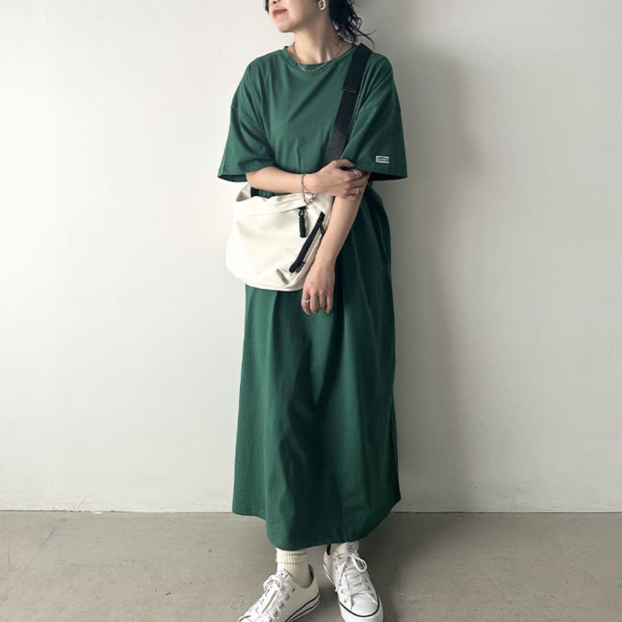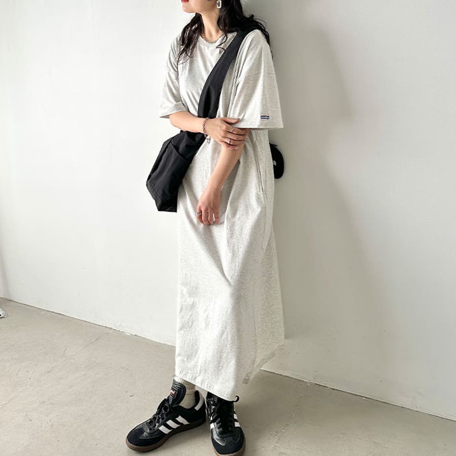 スニーカーもサンダルも合わせやすい丈感のTシャツワンピースは、重宝すること間違いなしです!