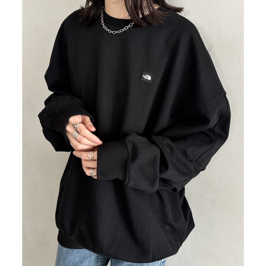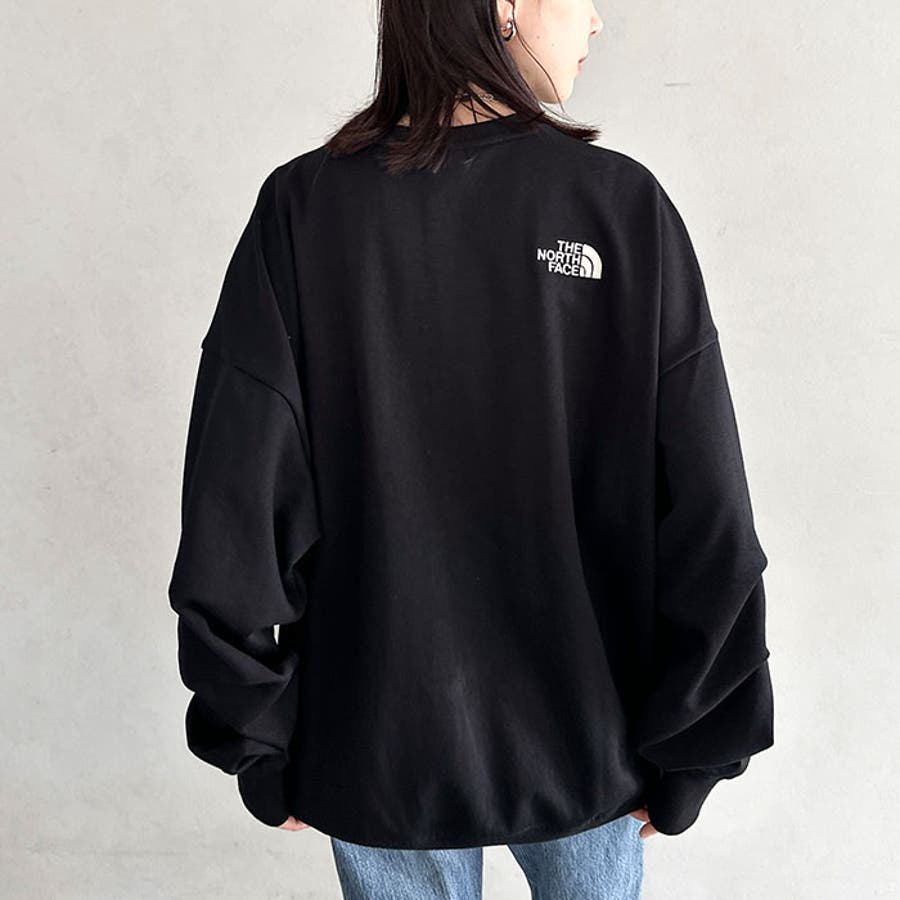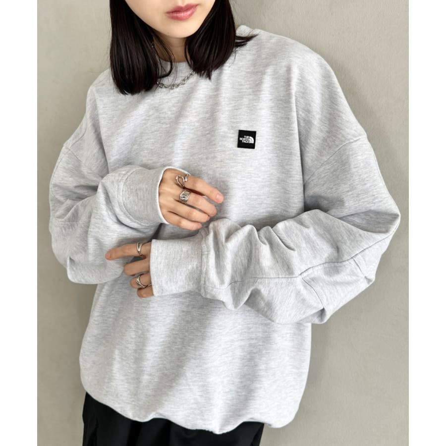 コットンベースで裏起毛なし、サラリとノンストレスで着られるノースフェイスの定番ワンポイント入り長袖スウェットです。