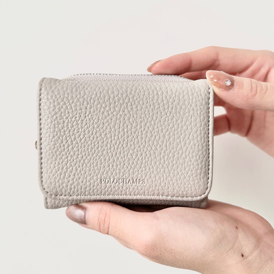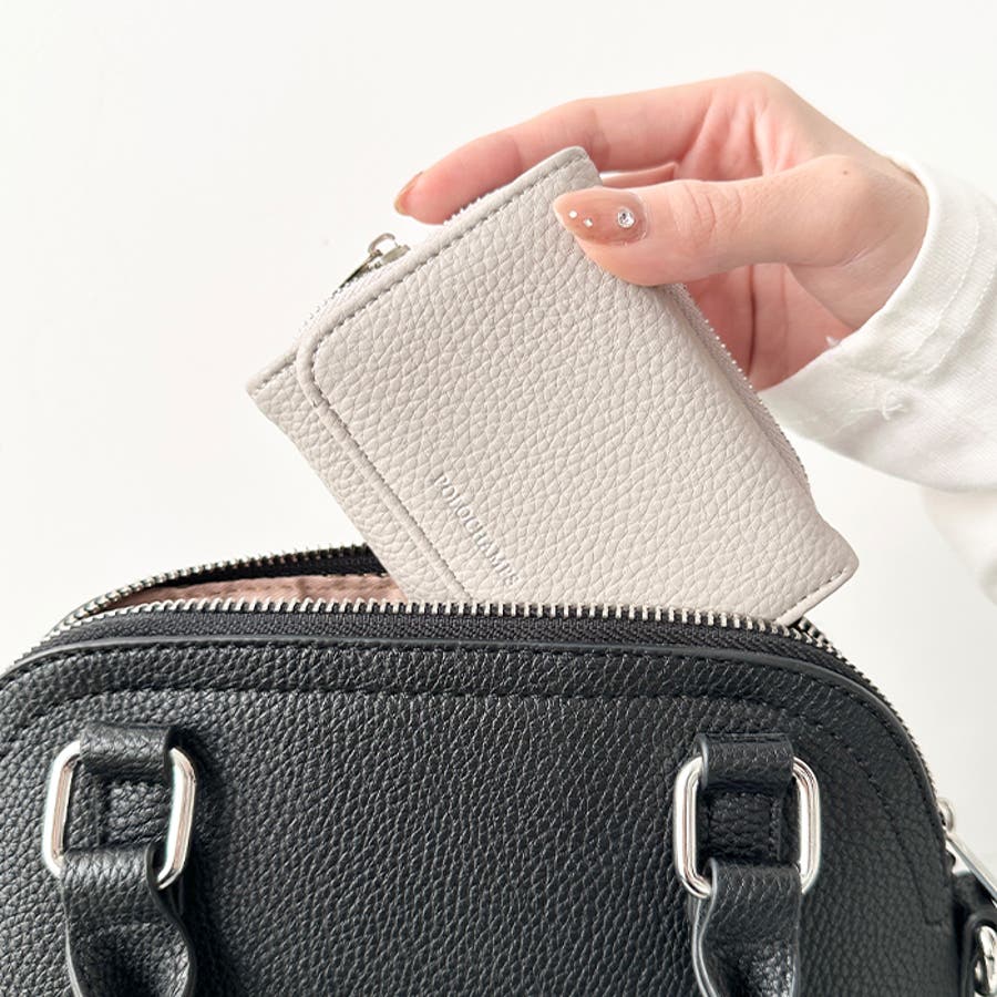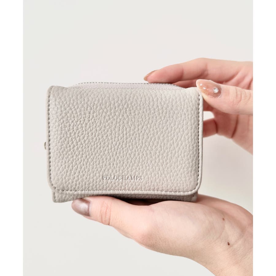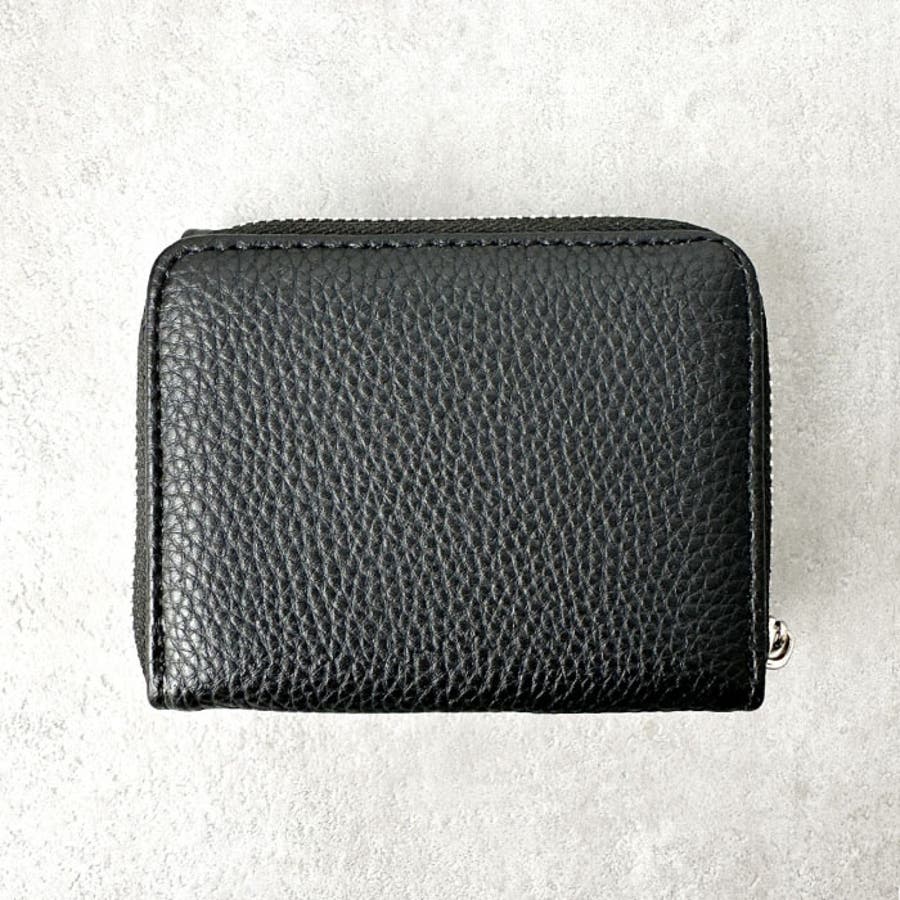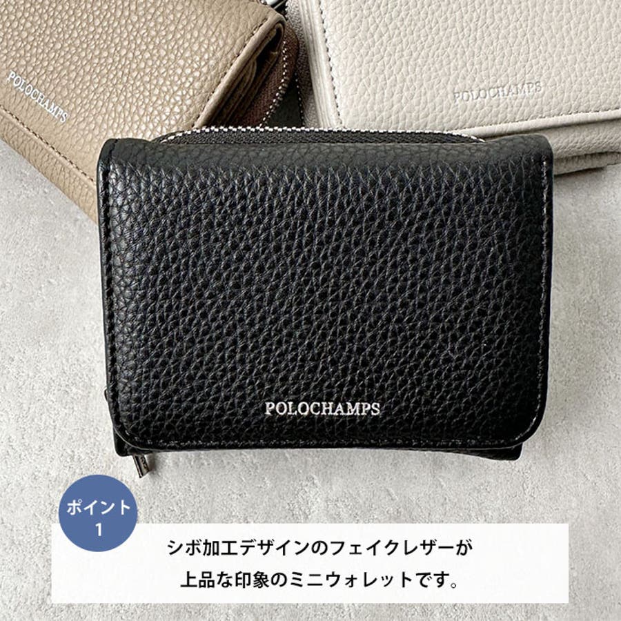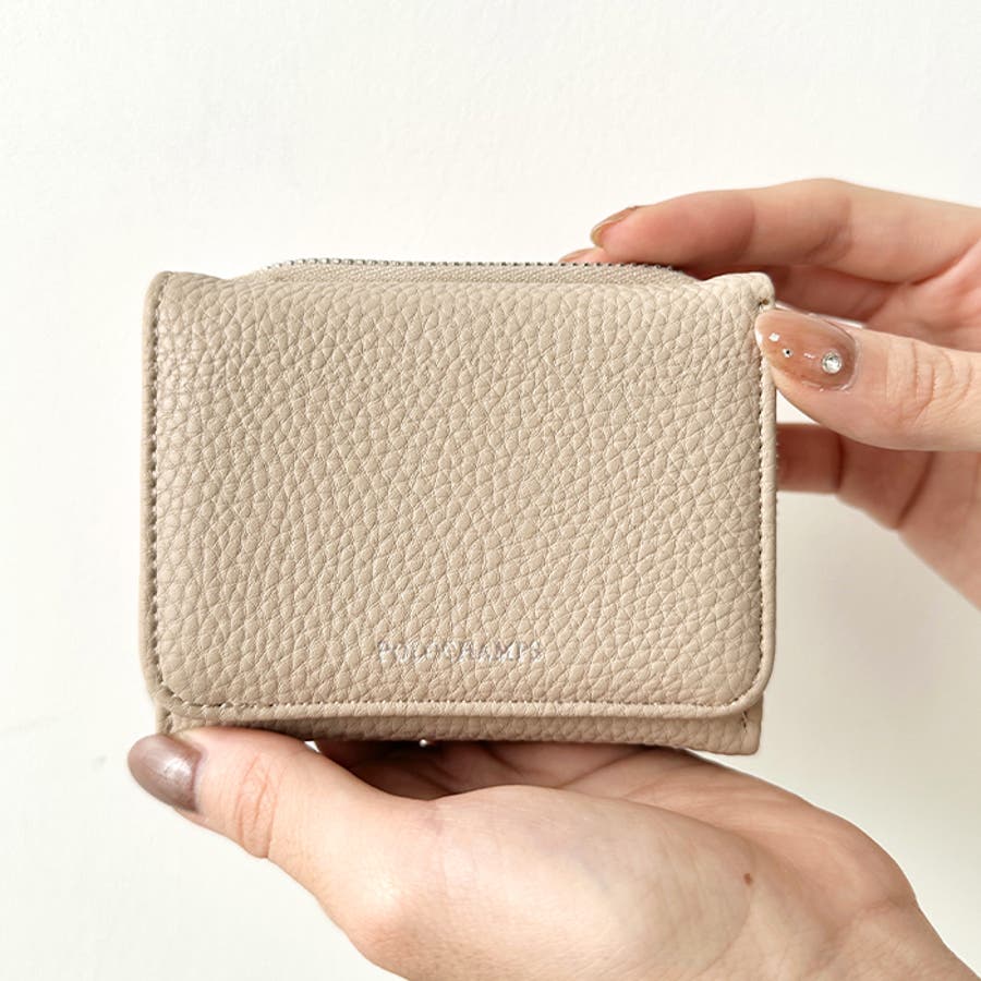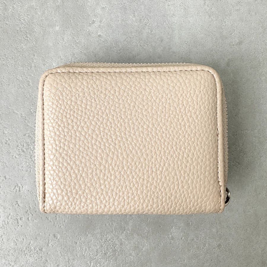 シボ加工デザインのフェイクレザーが上品な印象のミニウォレットです。