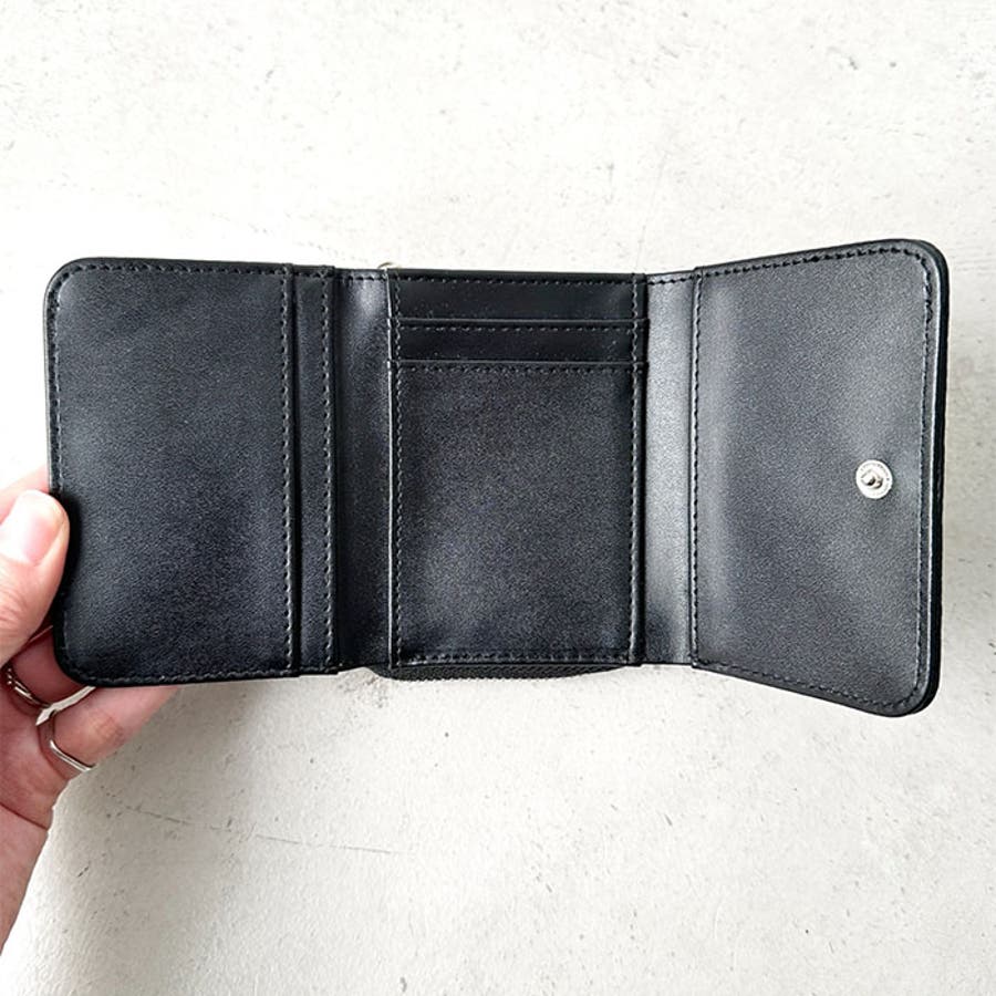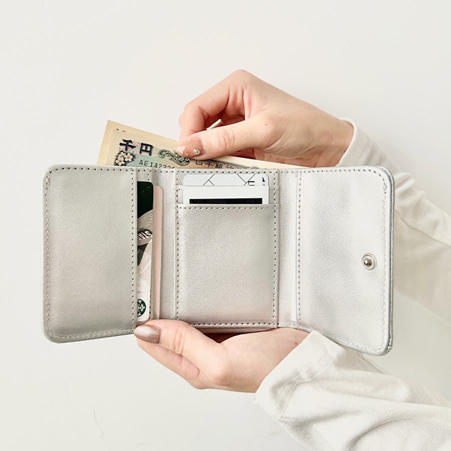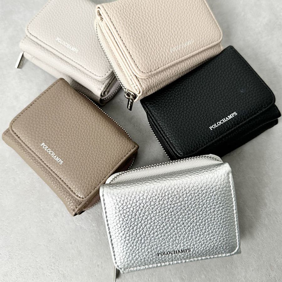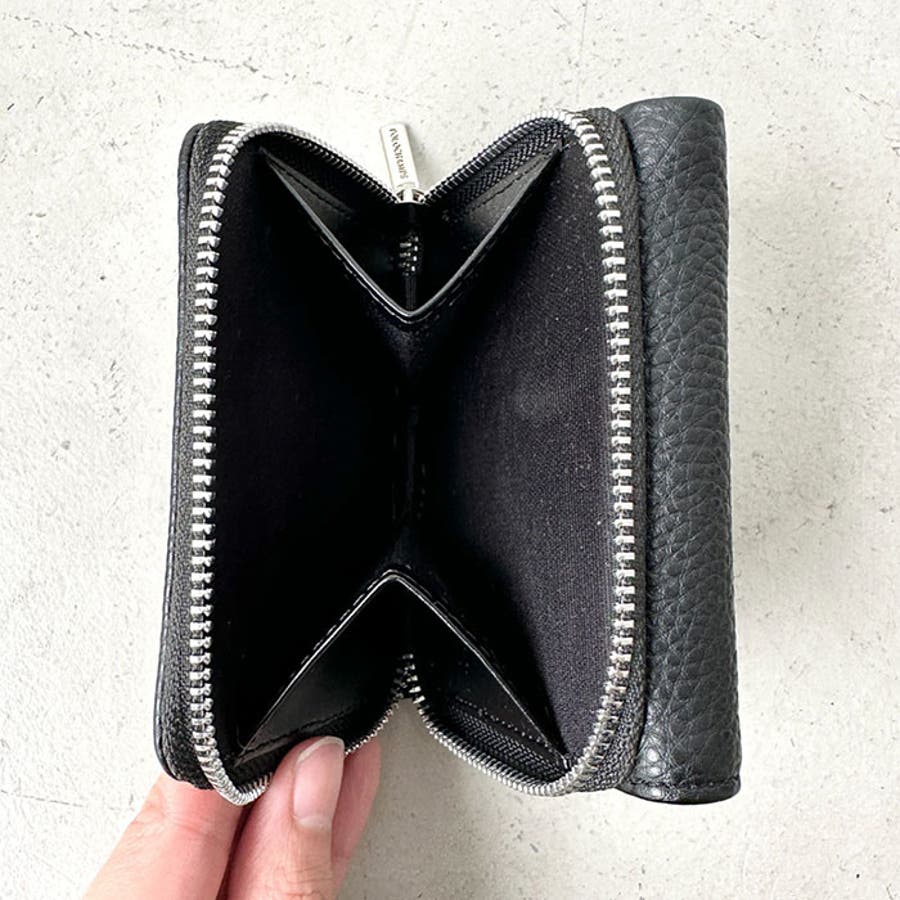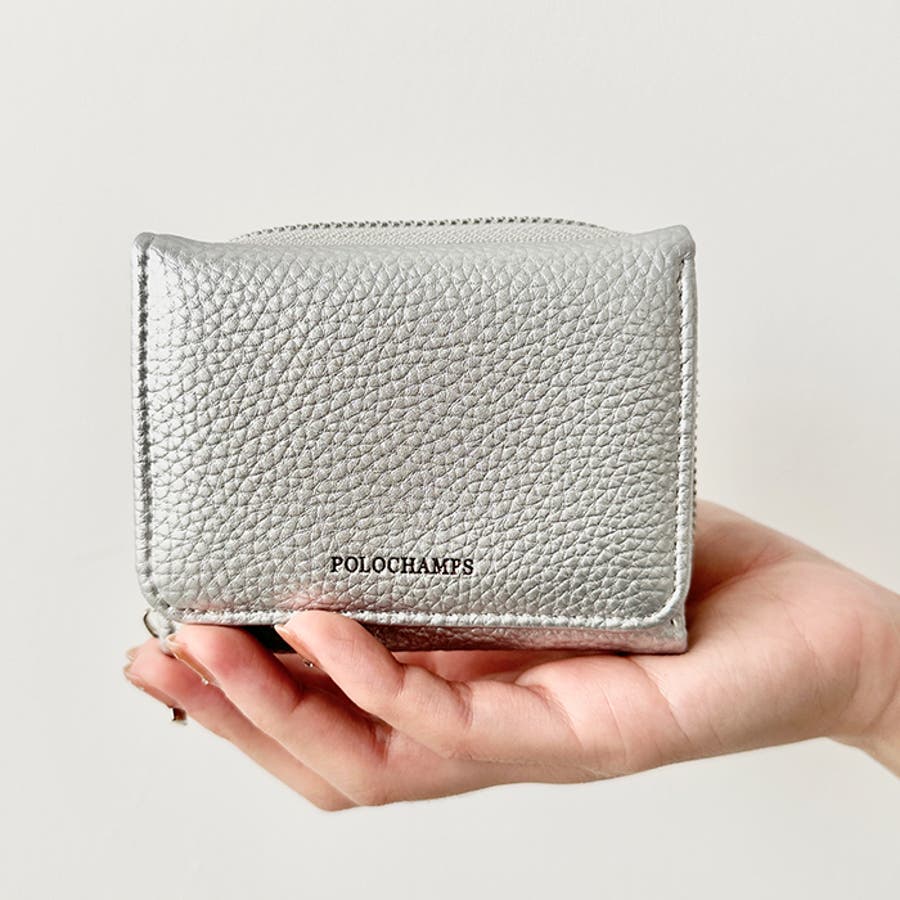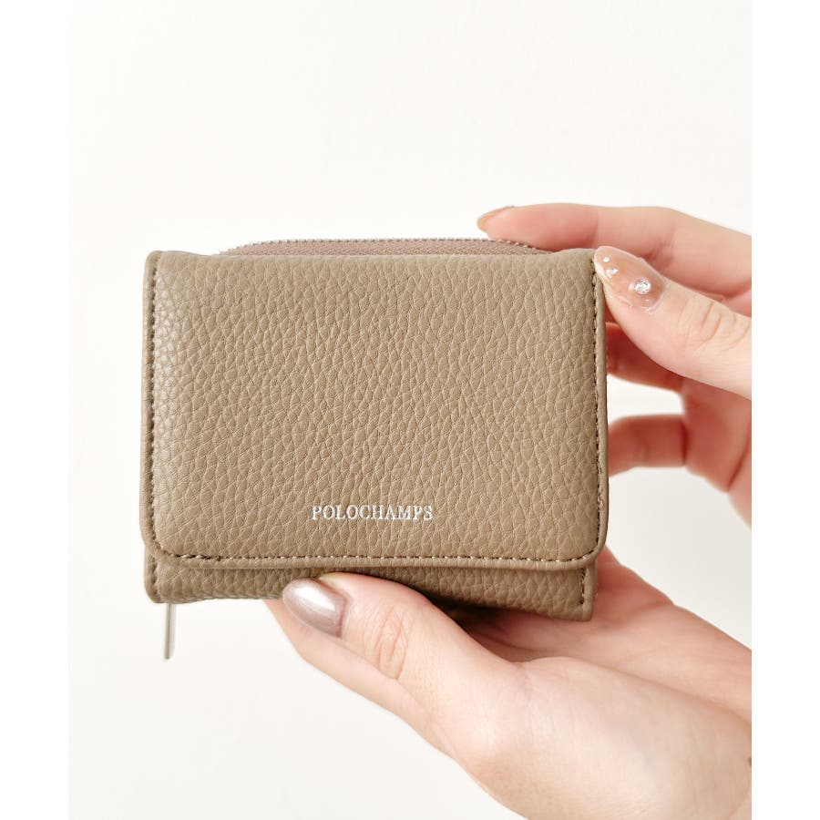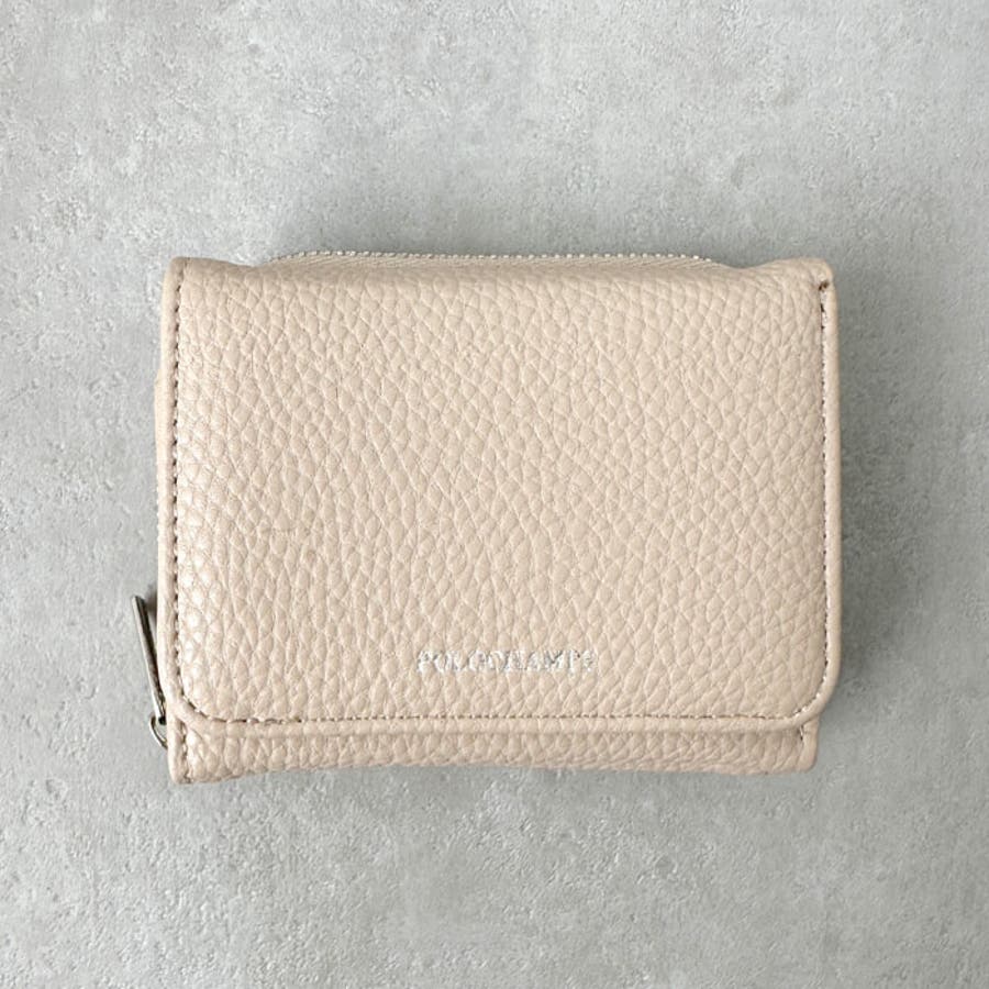 シボ加工デザインのフェイクレザーが上品な印象のミニウォレットです。