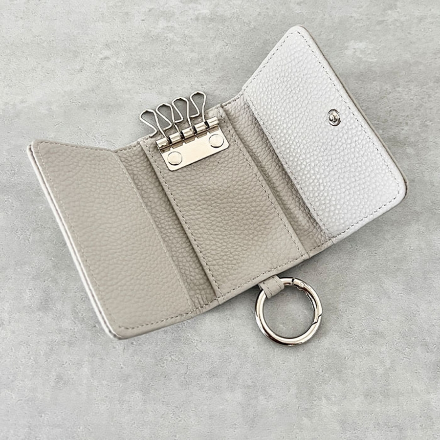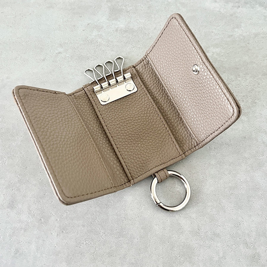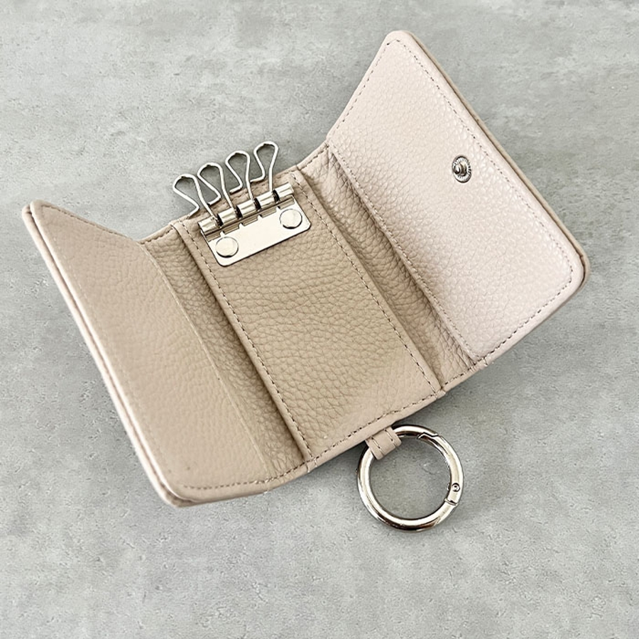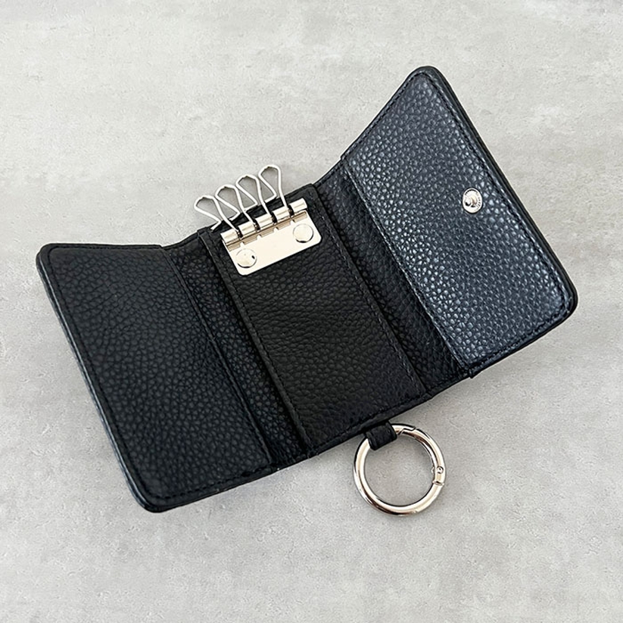 シボ加工デザインのフェイクレザーが上品な印象のキーケースです。
