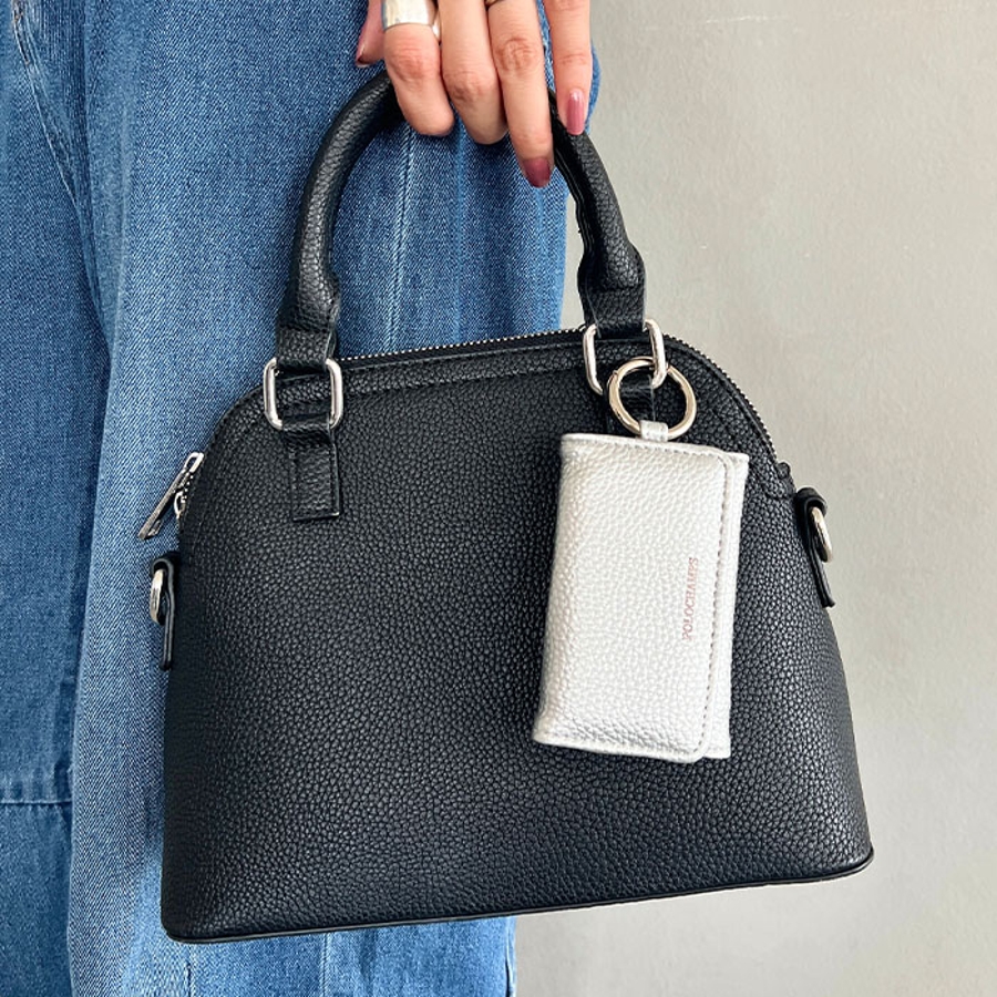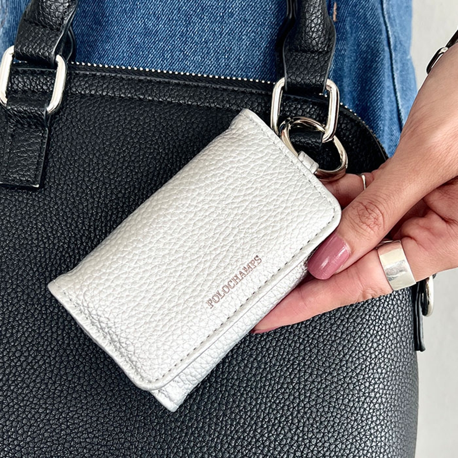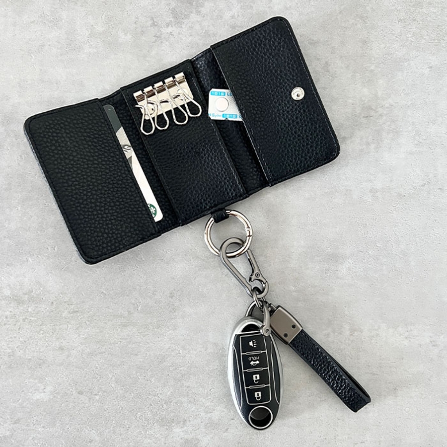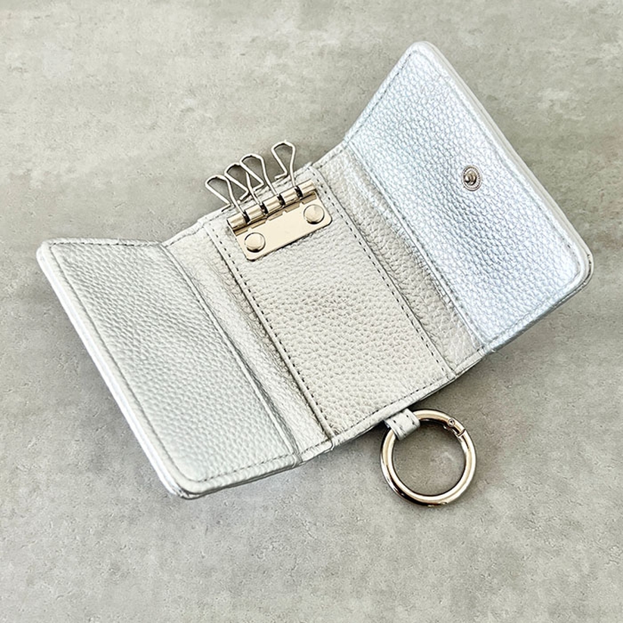 シボ加工デザインのフェイクレザーが上品な印象のキーケースです。