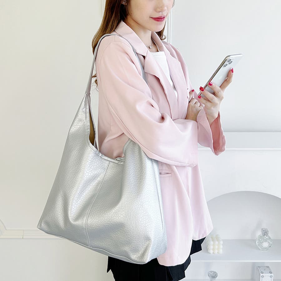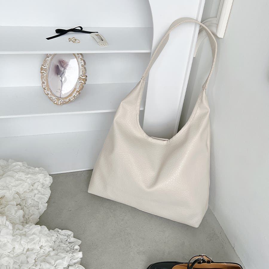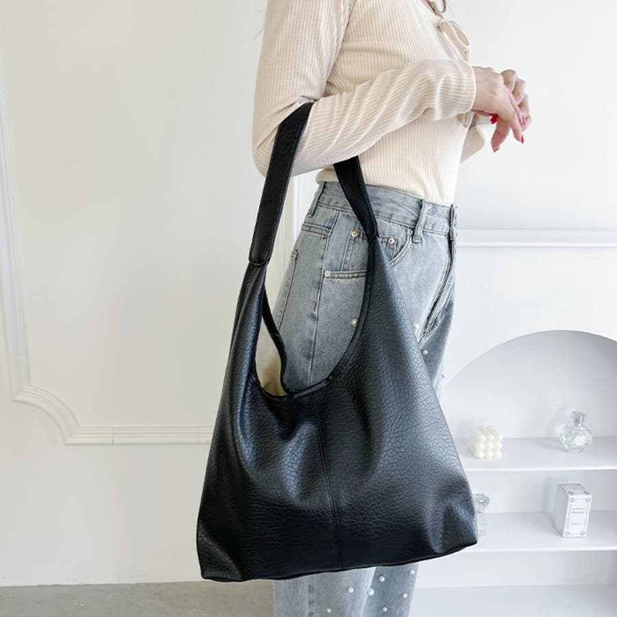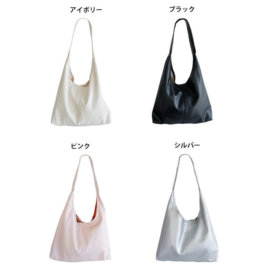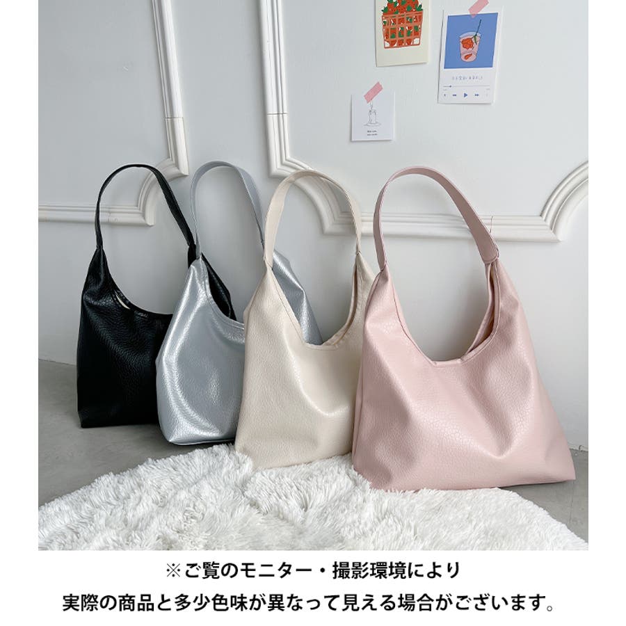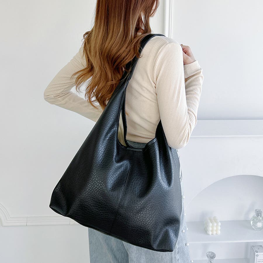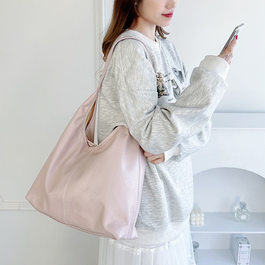 ・フェイクレザー素材がオシャレな、通勤や通学にもオススメなたっぷりサイズのトートバッグ