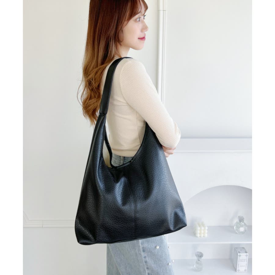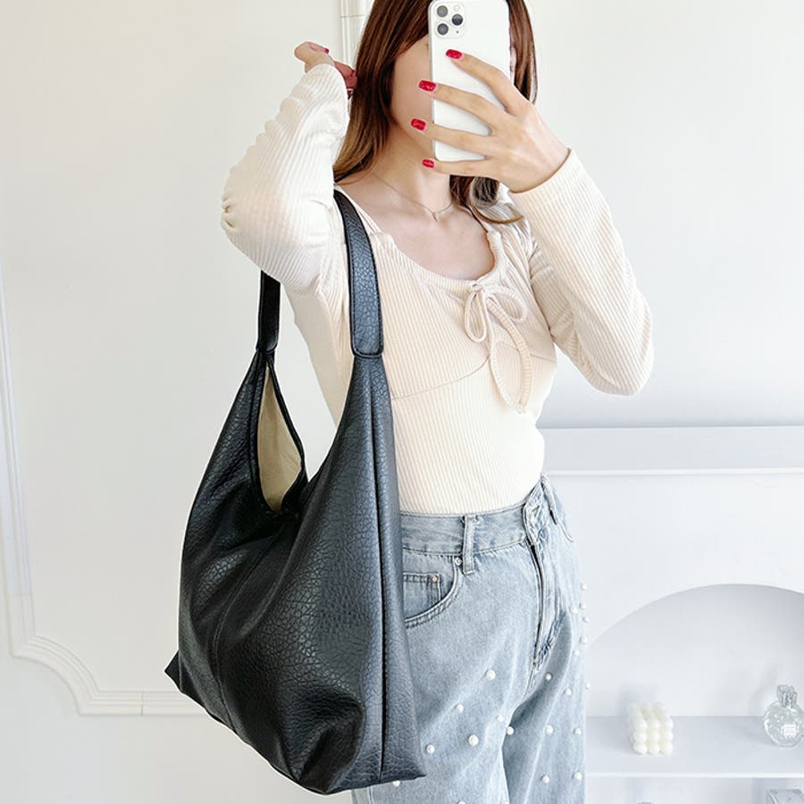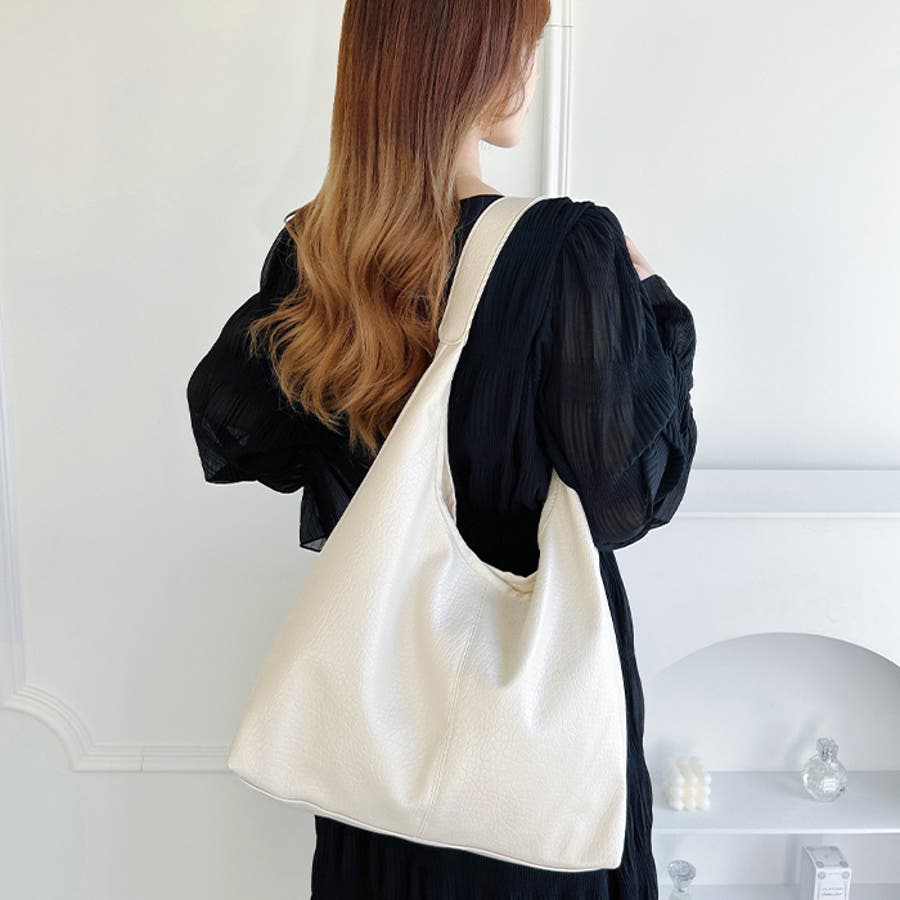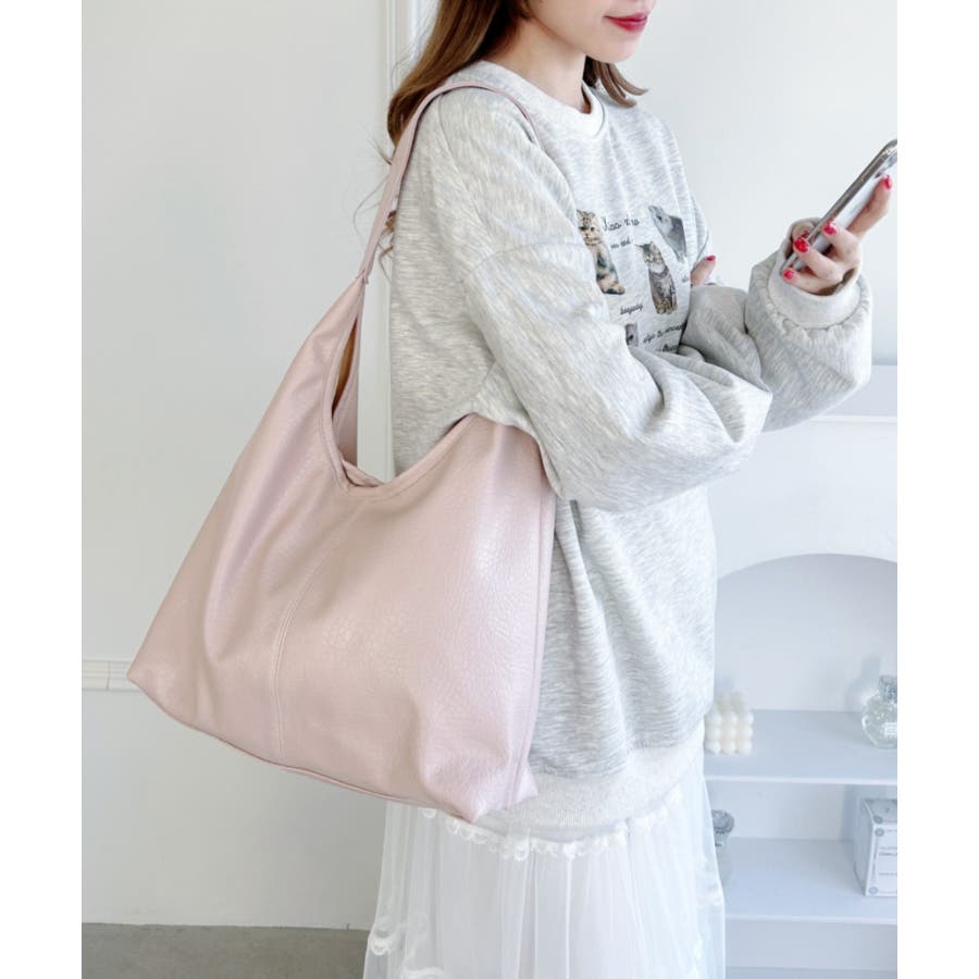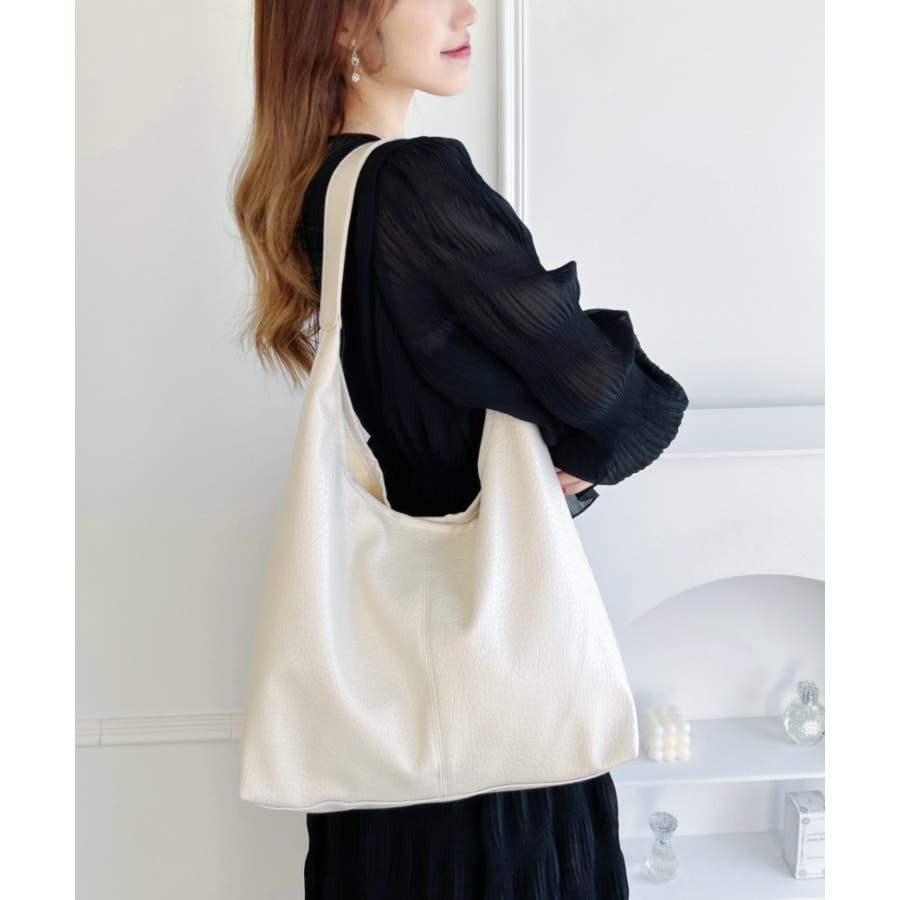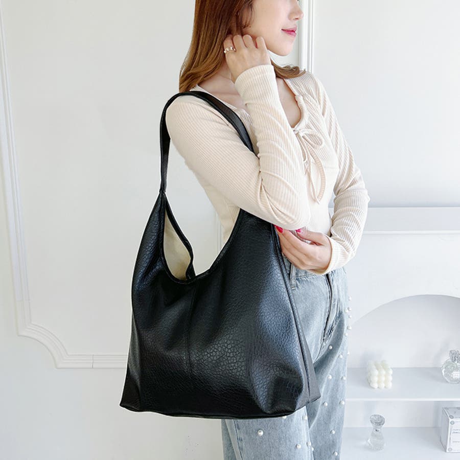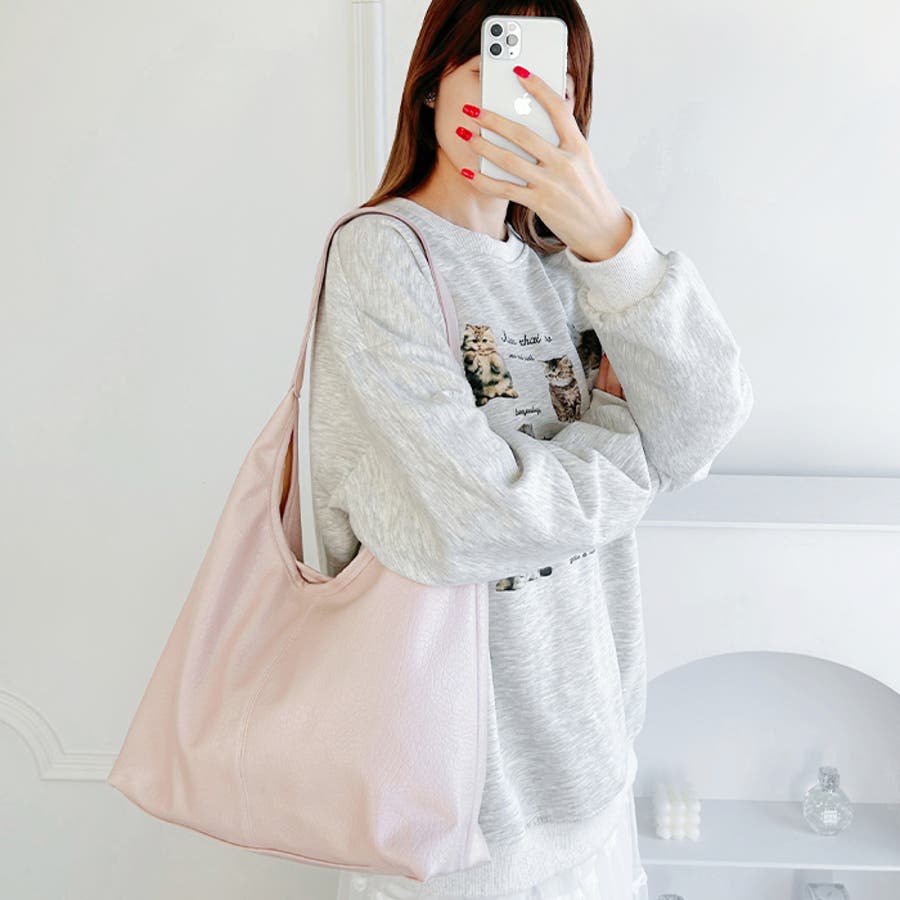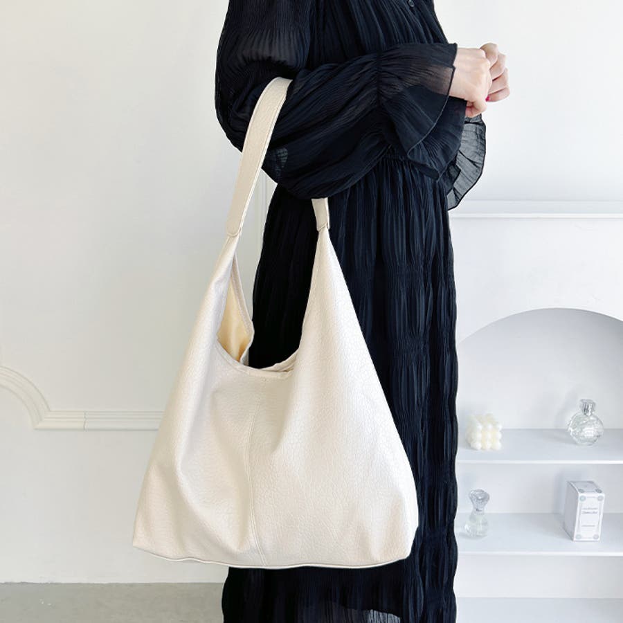 ・フェイクレザー素材がオシャレな、通勤や通学にもオススメなたっぷりサイズのトートバッグ