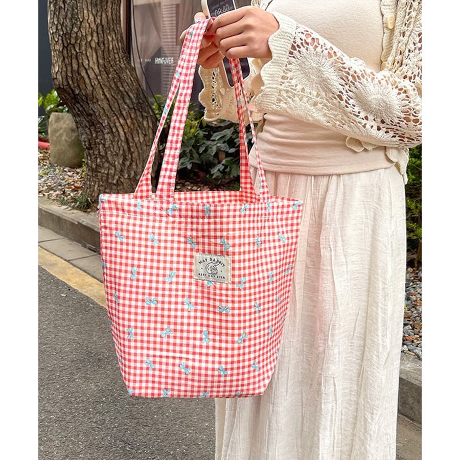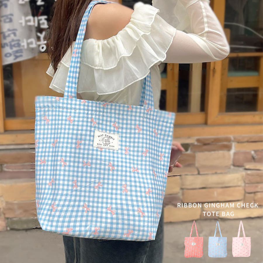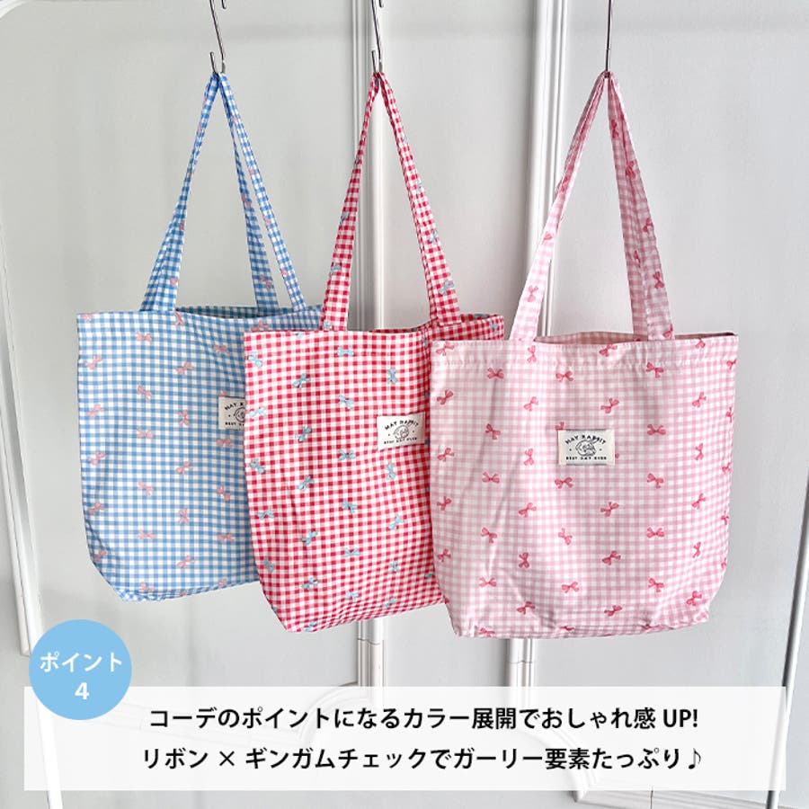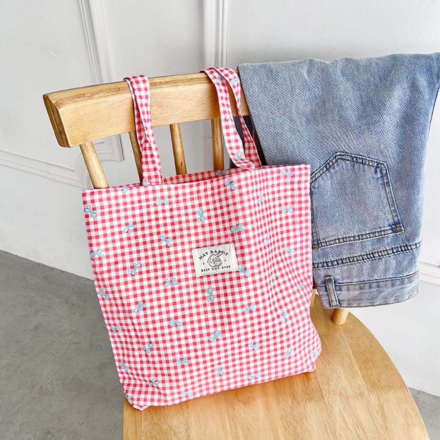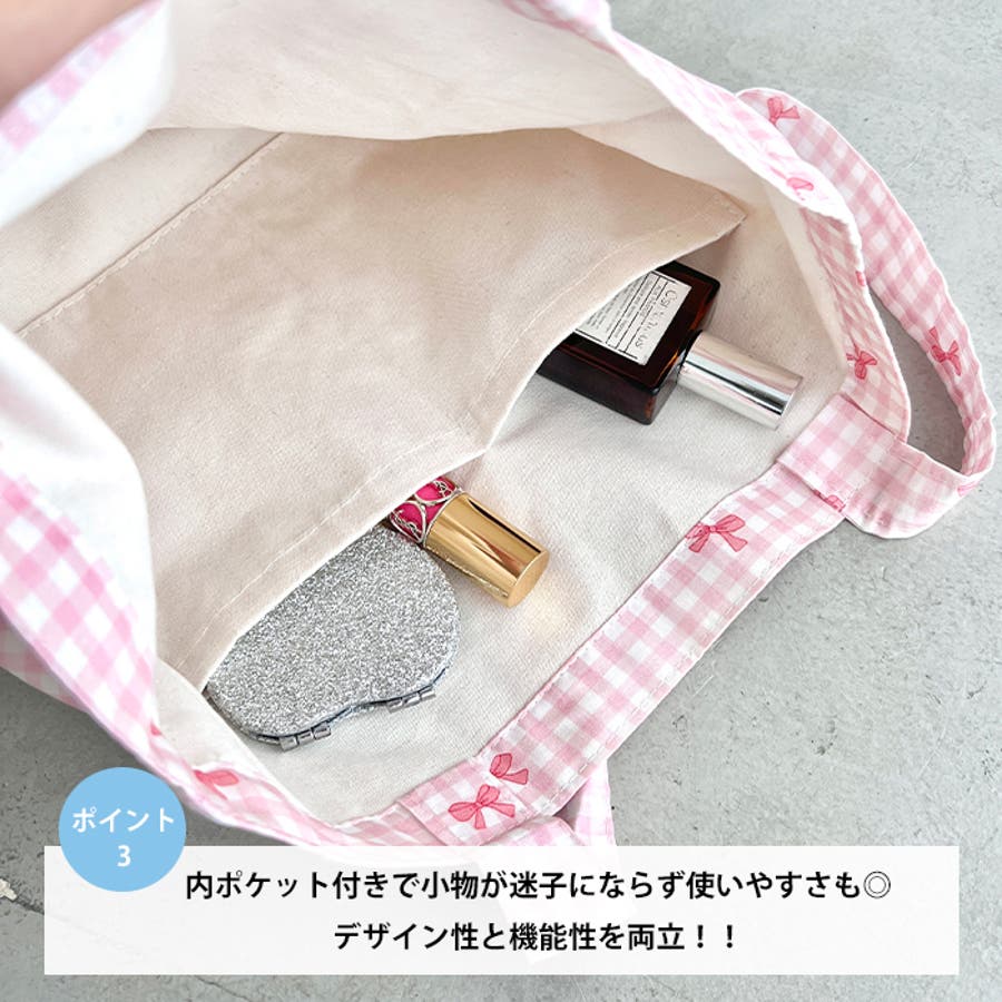 ・レトロなギンガムチェックにトレンドのリボンプリントがPOINTのトートバッグ