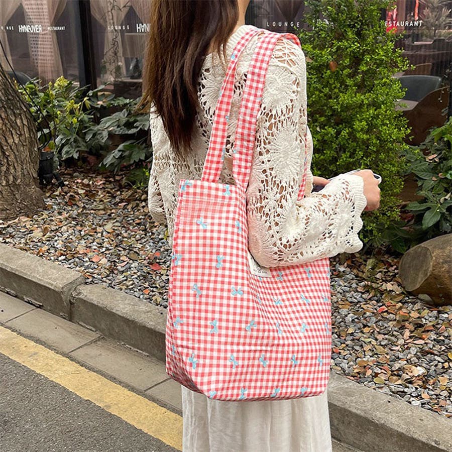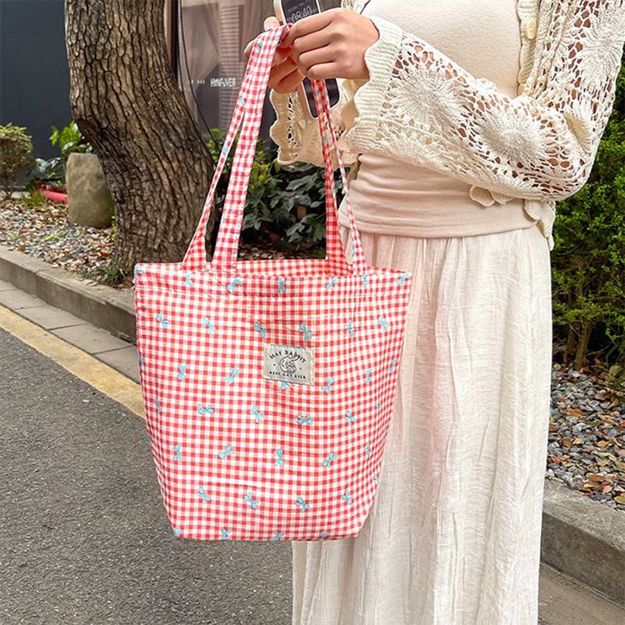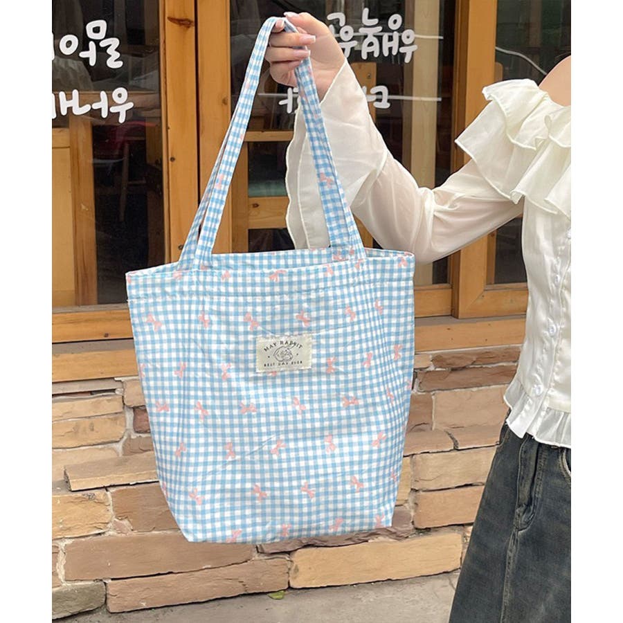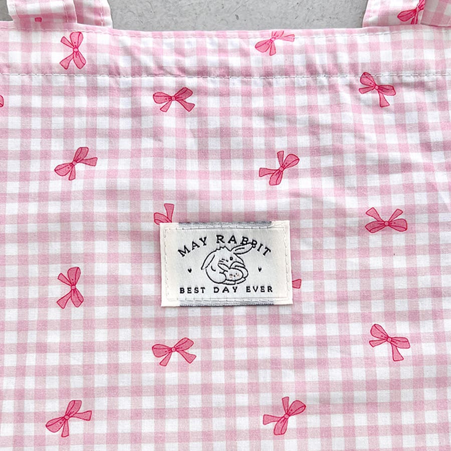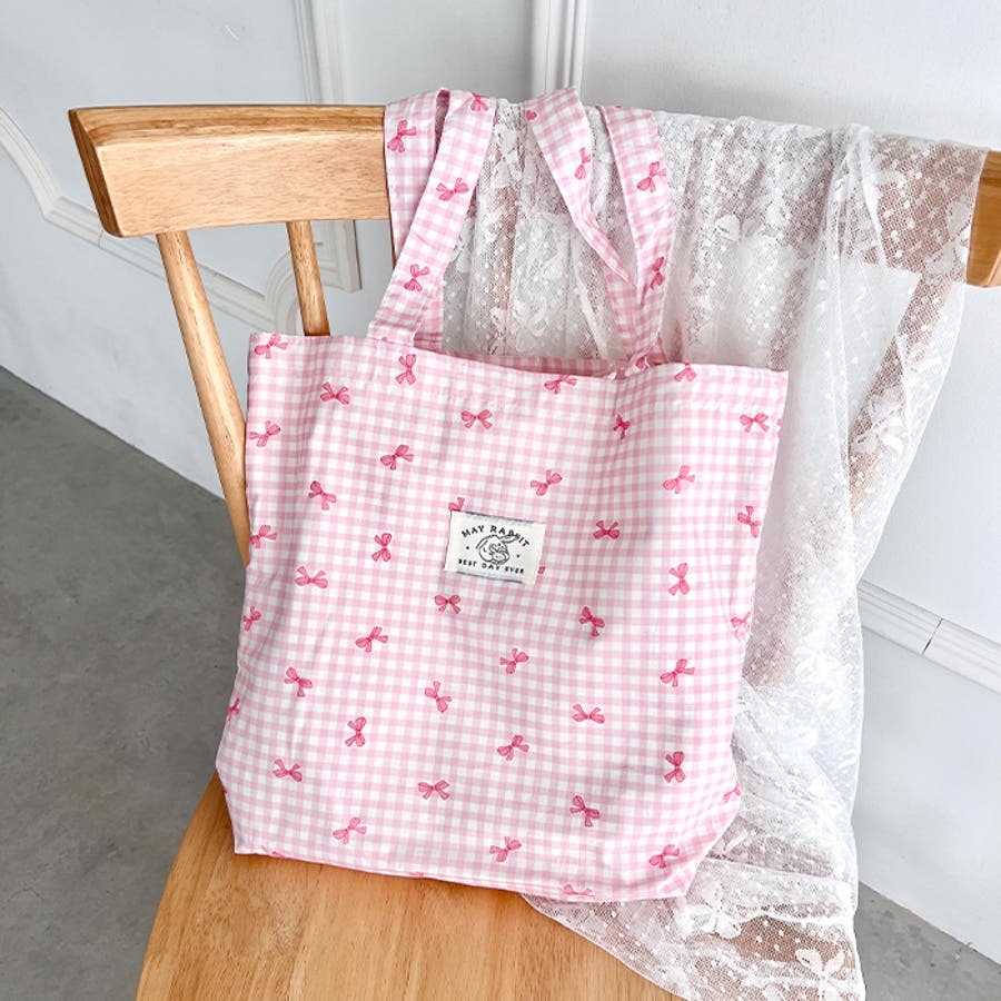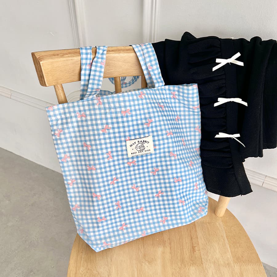 ・レトロなギンガムチェックにトレンドのリボンプリントがPOINTのトートバッグ