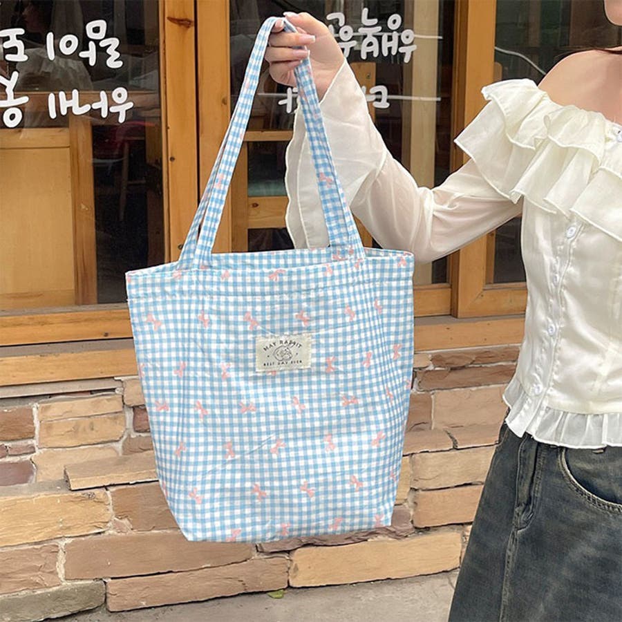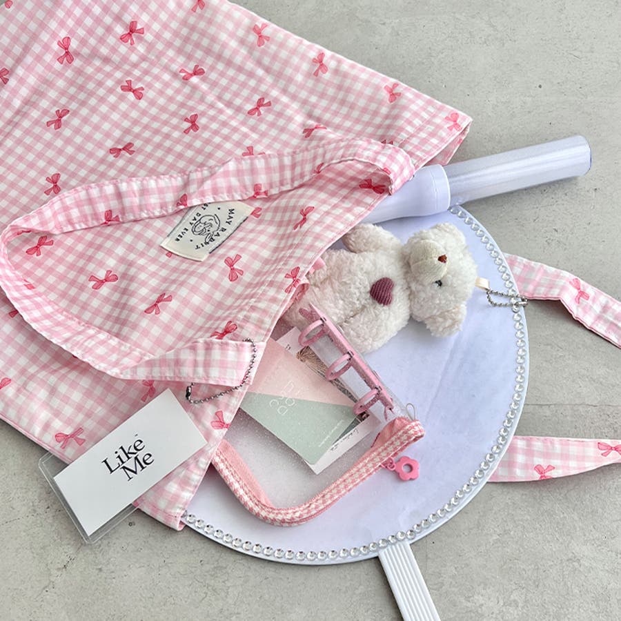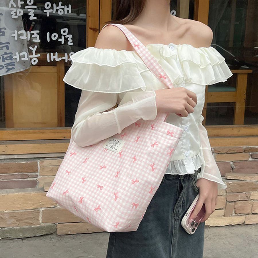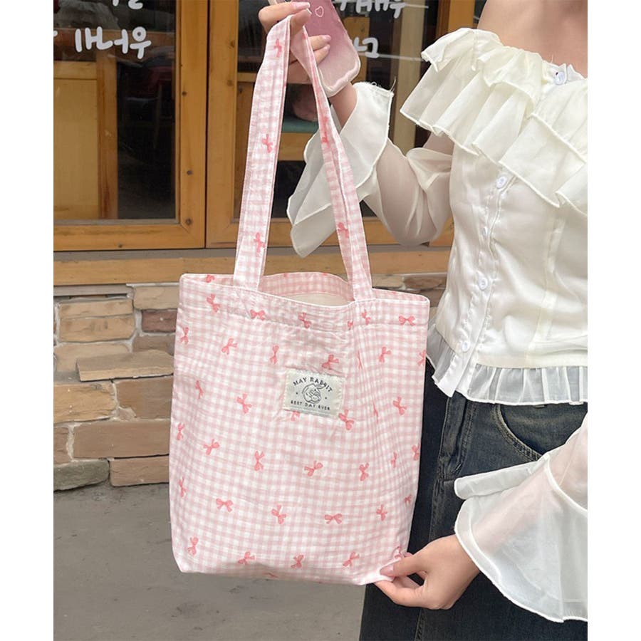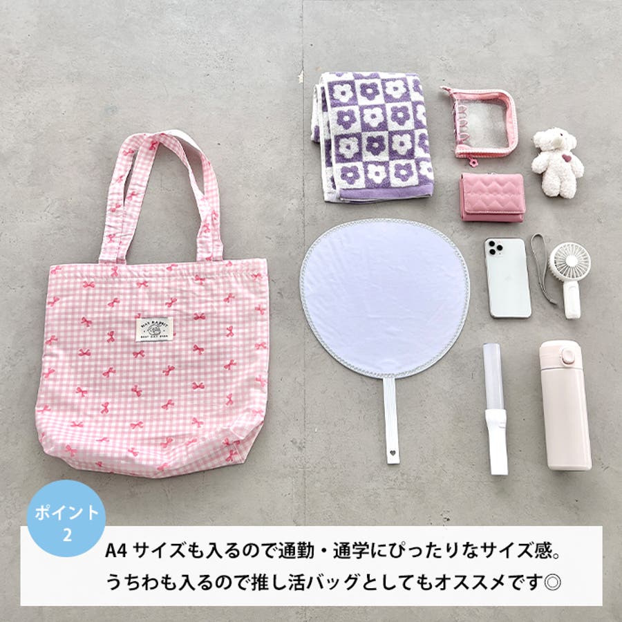 ・レトロなギンガムチェックにトレンドのリボンプリントがPOINTのトートバッグ