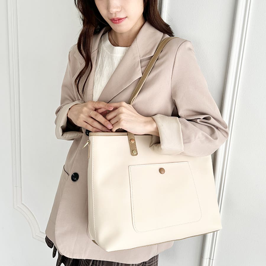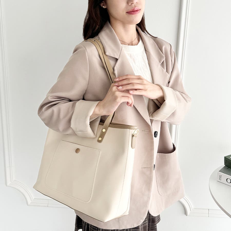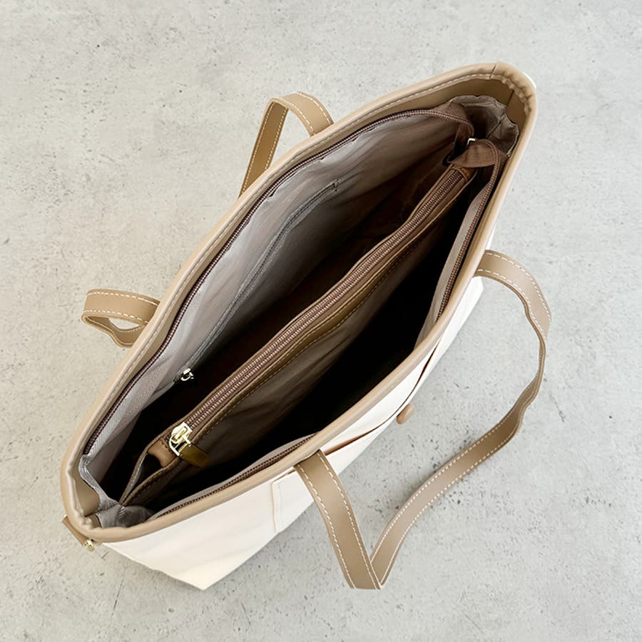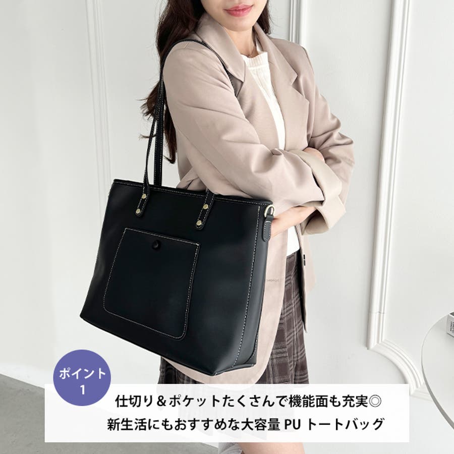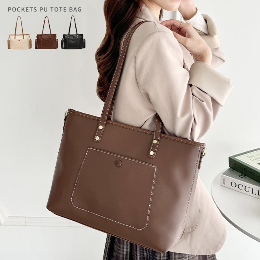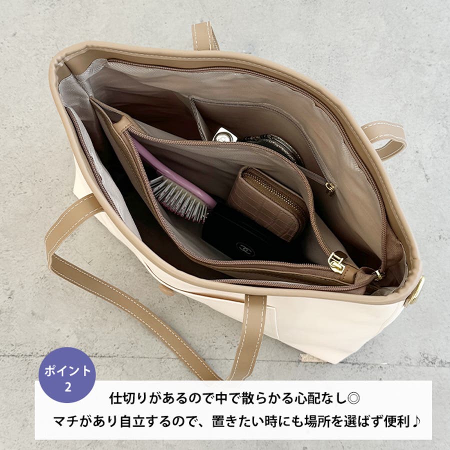 【A4収納/自立/ジッパー開閉】仕切りポケットPUトートバッグ