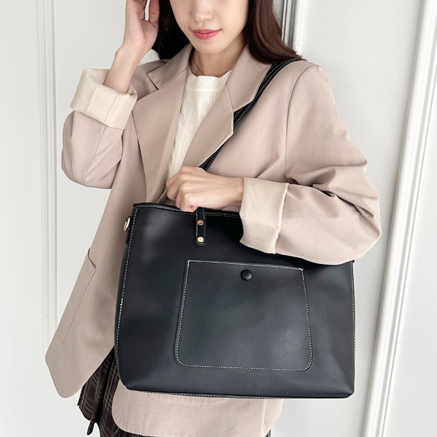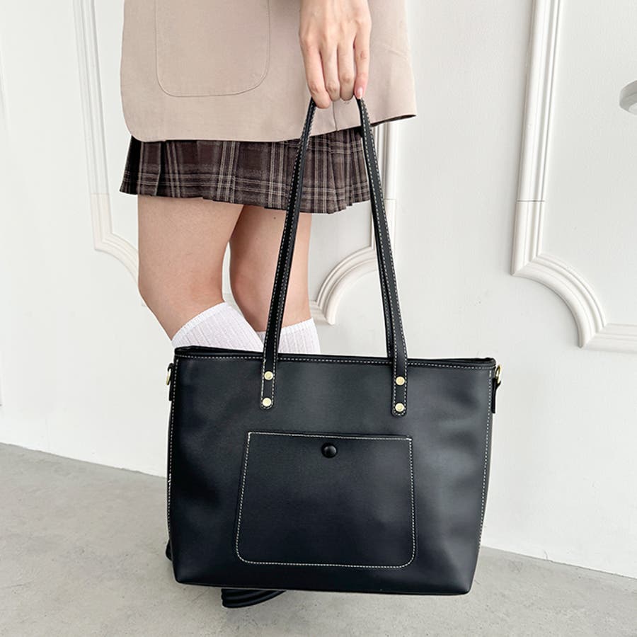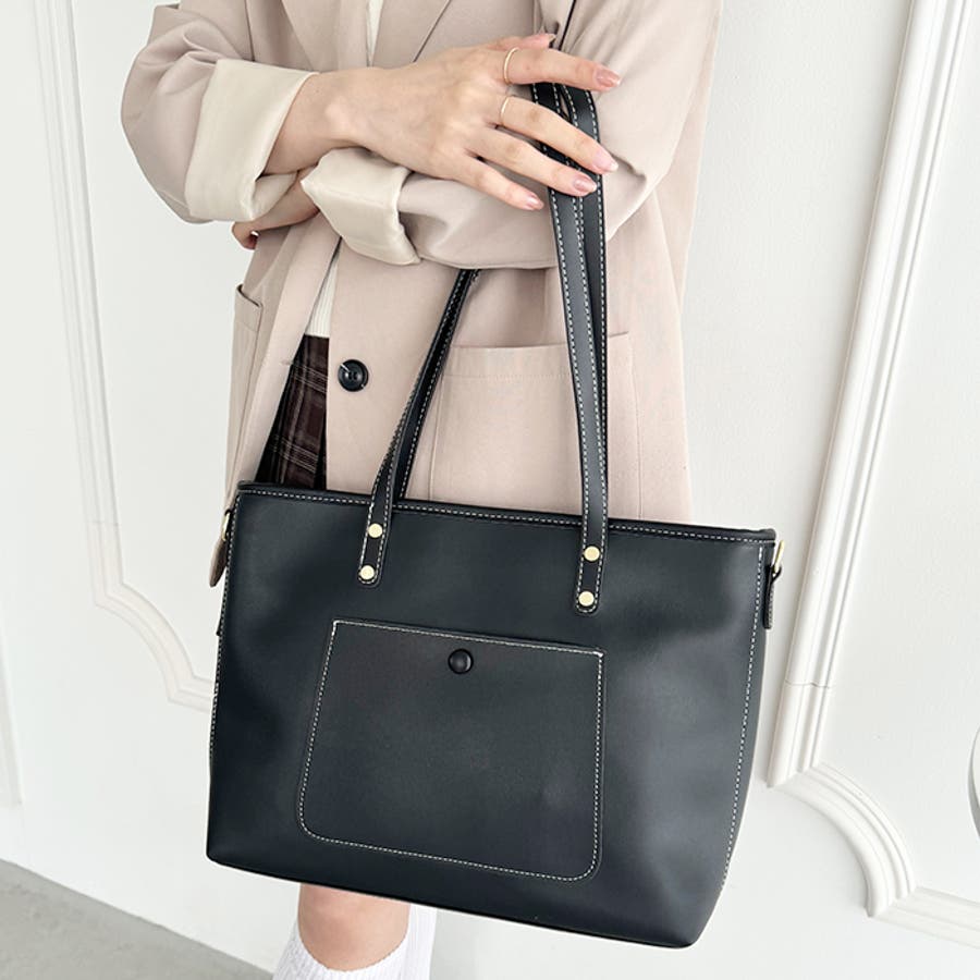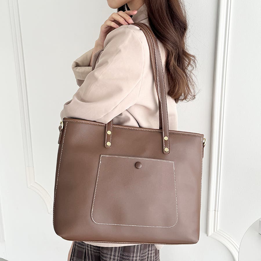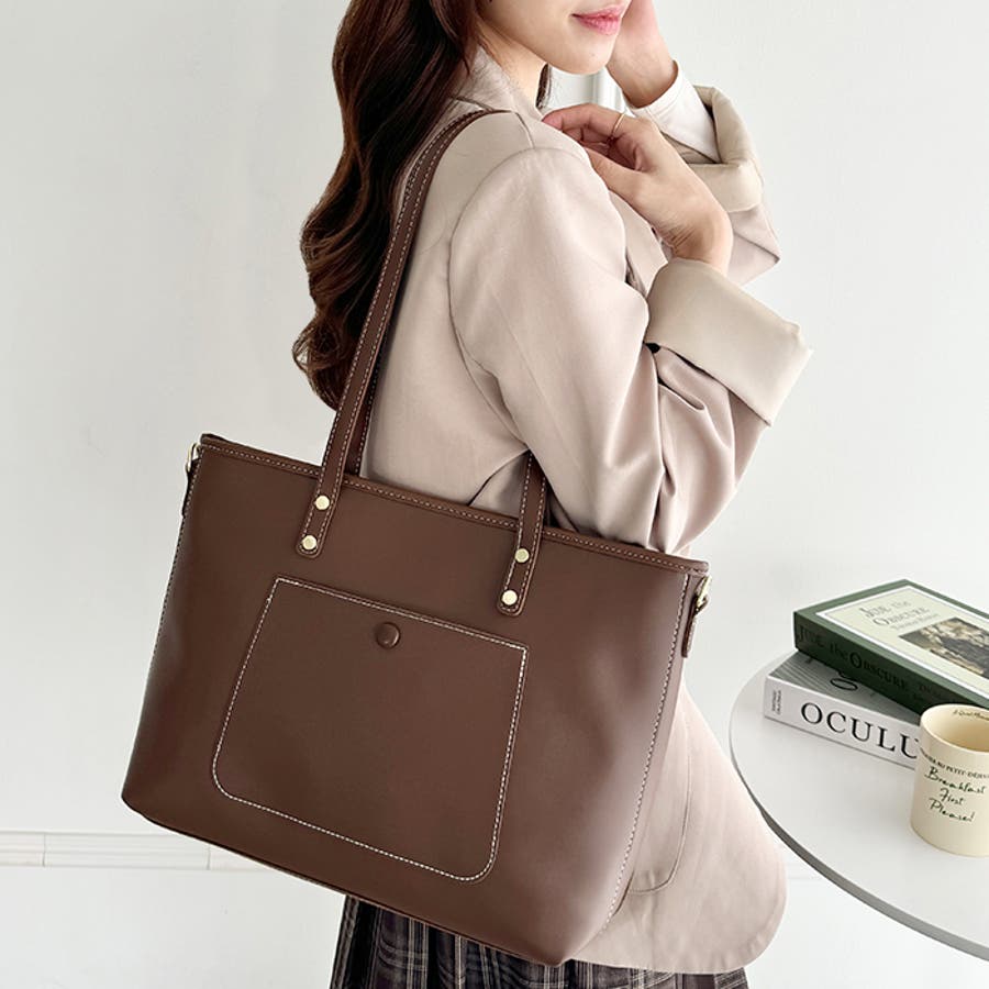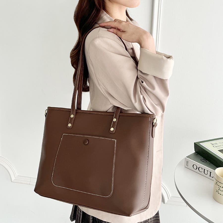 【A4収納/自立/ジッパー開閉】仕切りポケットPUトートバッグ