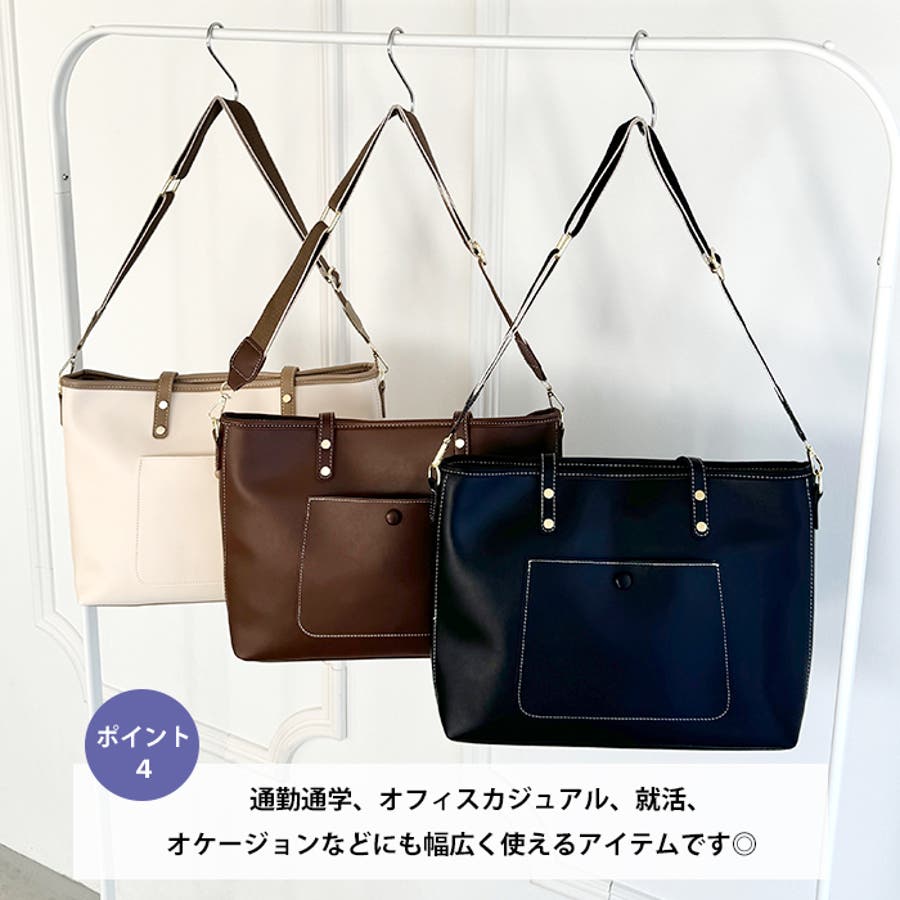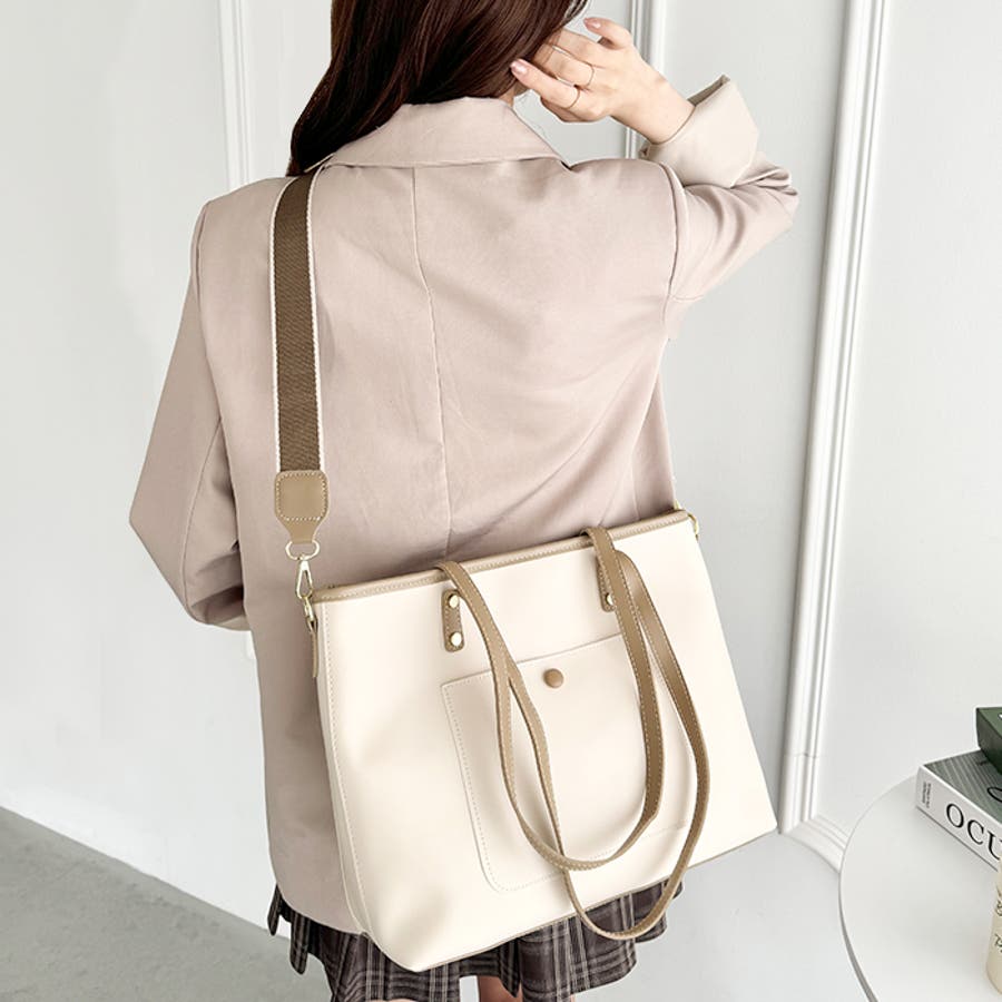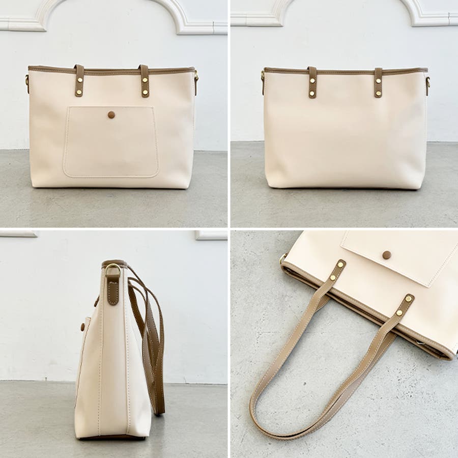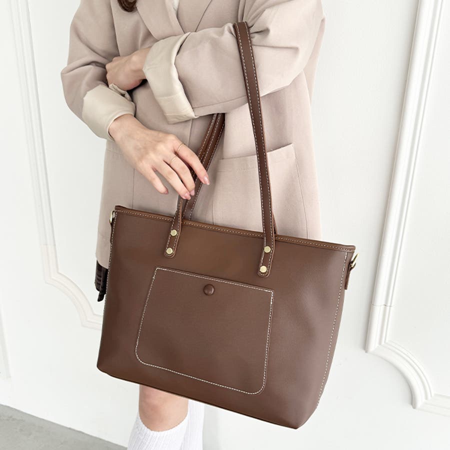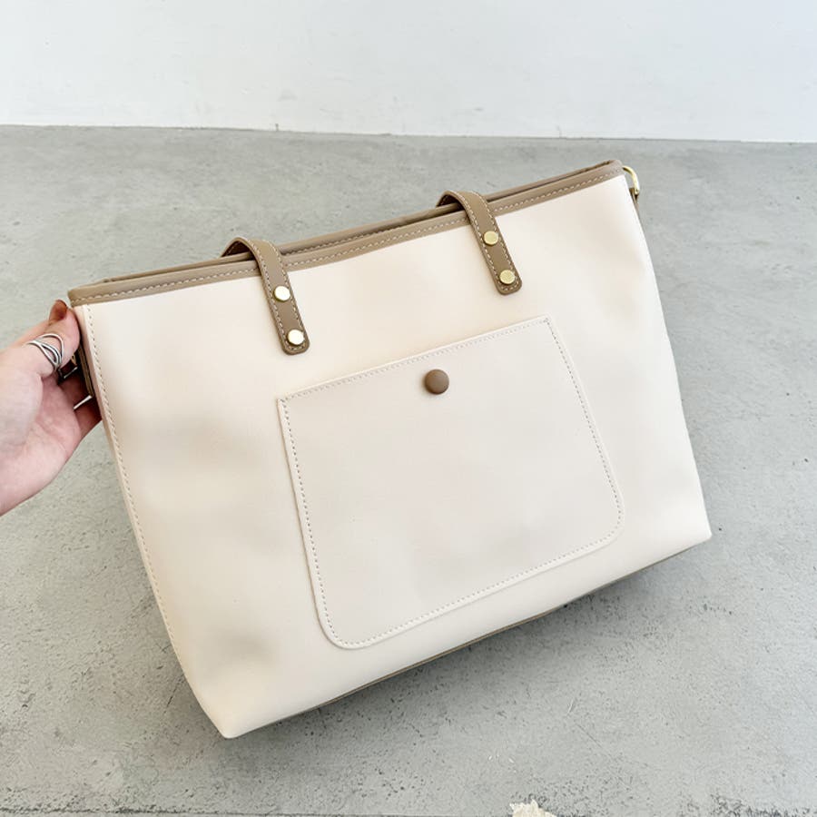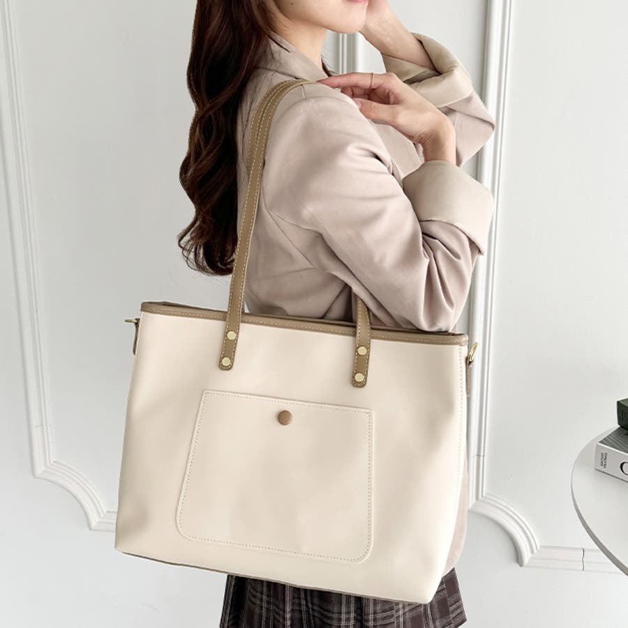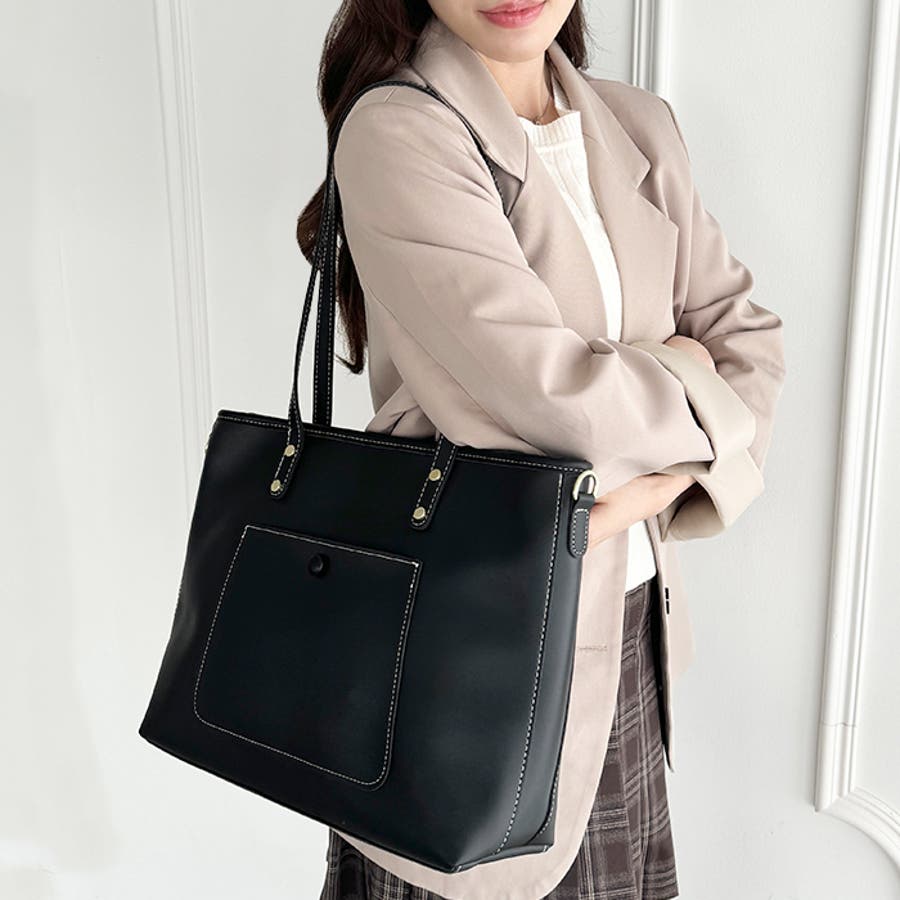 【A4収納/自立/ジッパー開閉】仕切りポケットPUトートバッグ