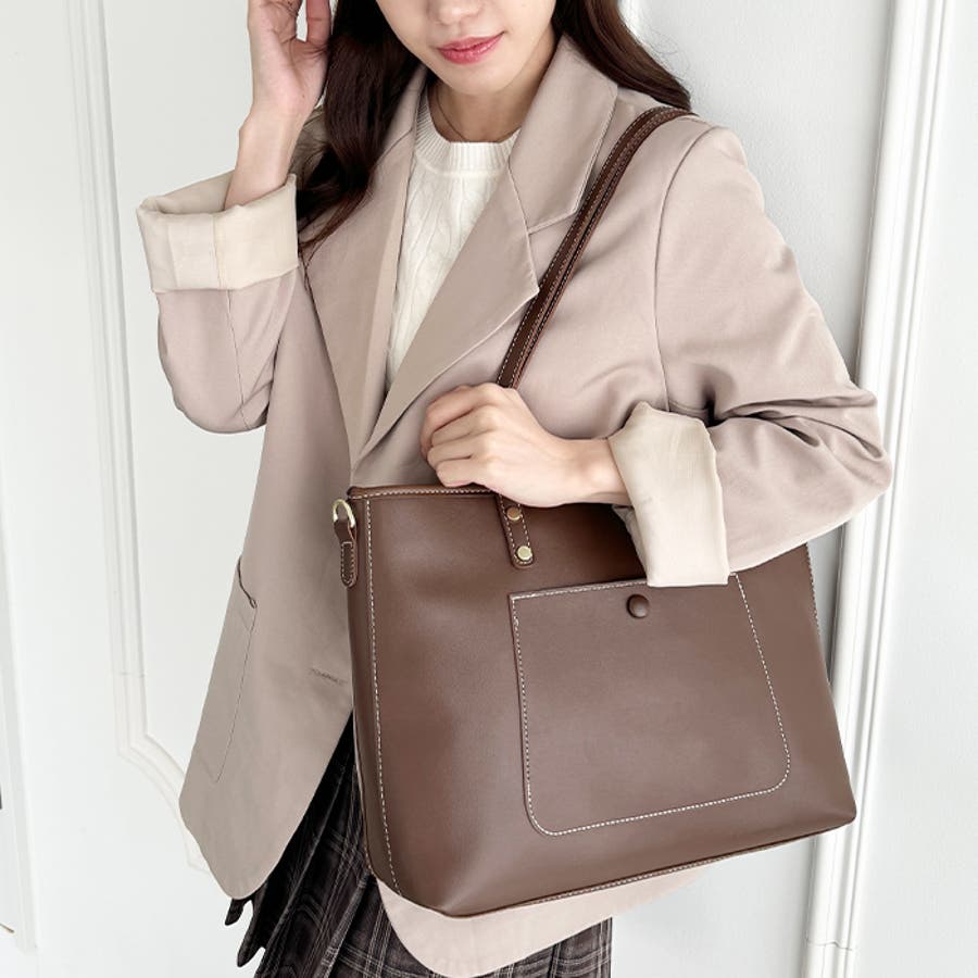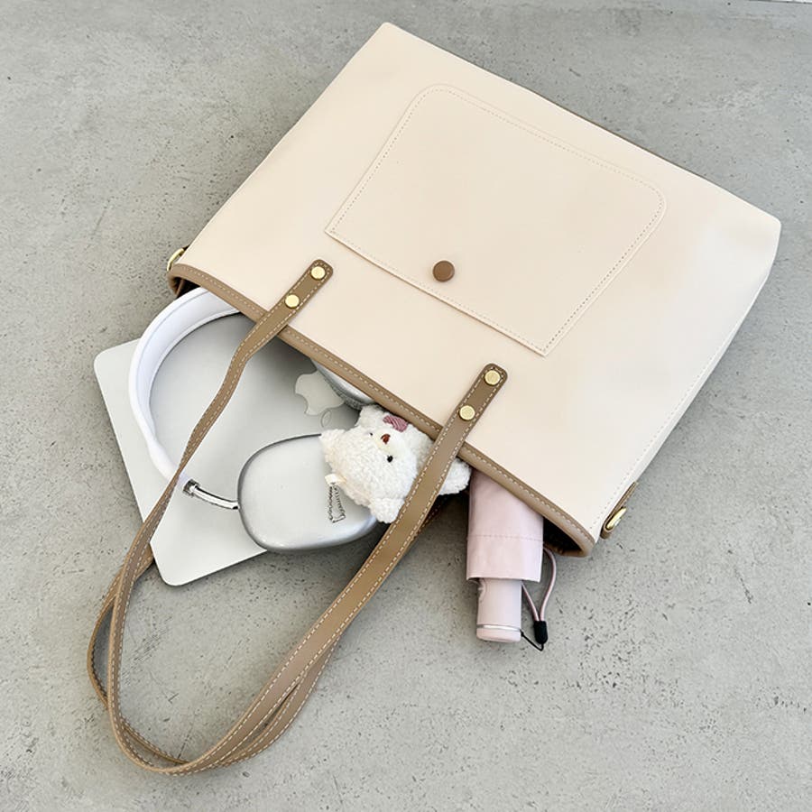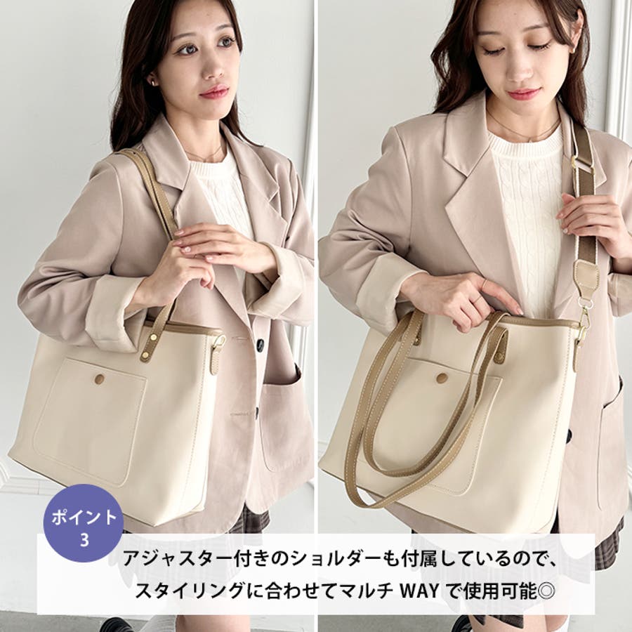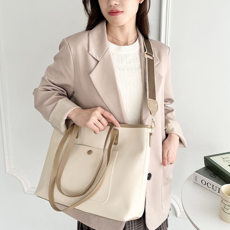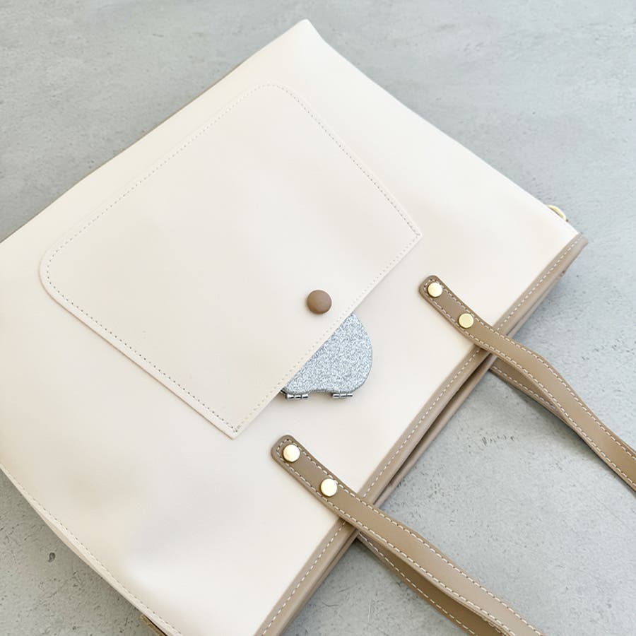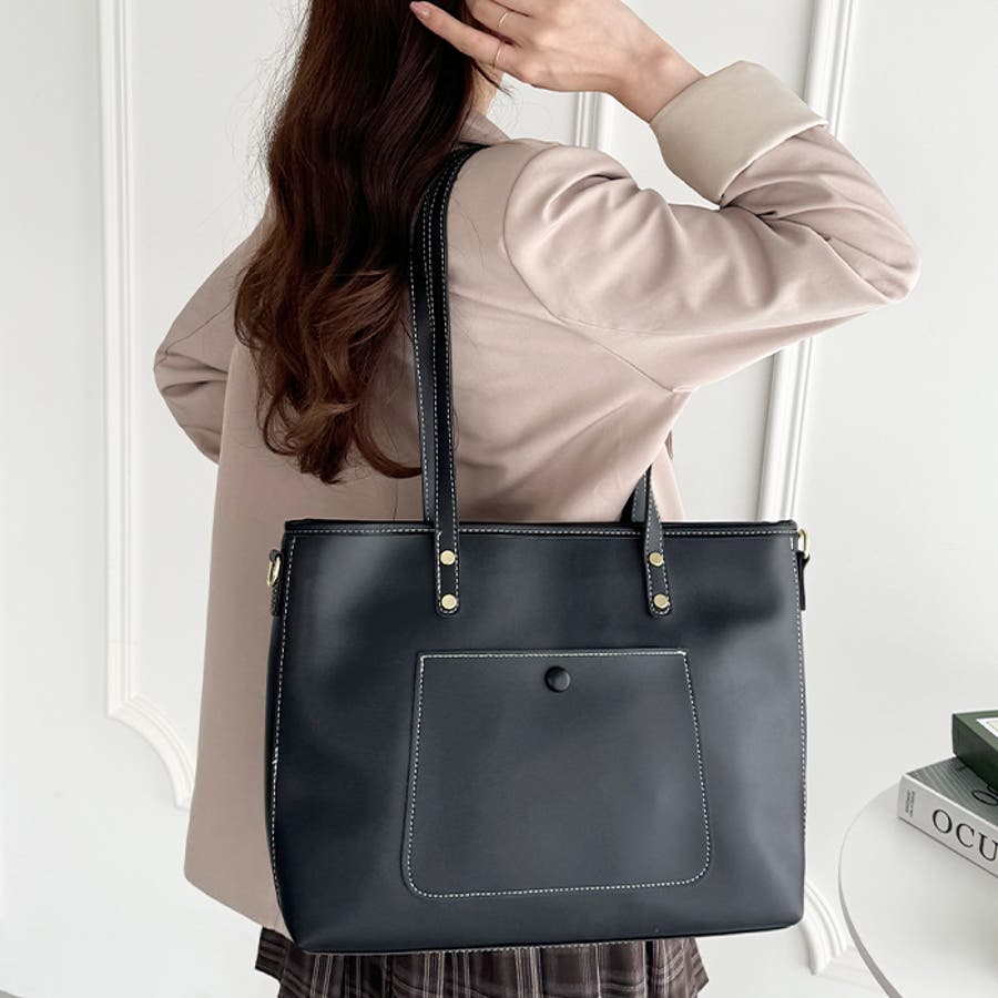 【A4収納/自立/ジッパー開閉】仕切りポケットPUトートバッグ