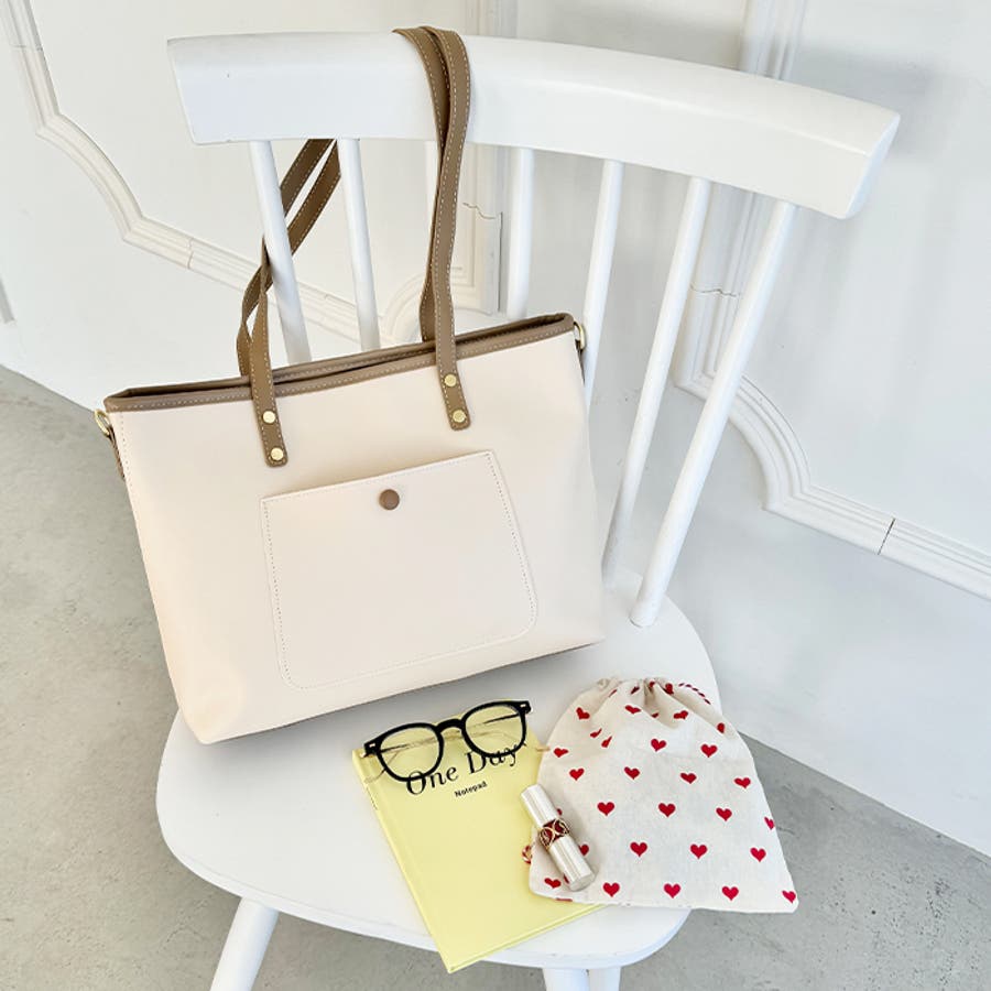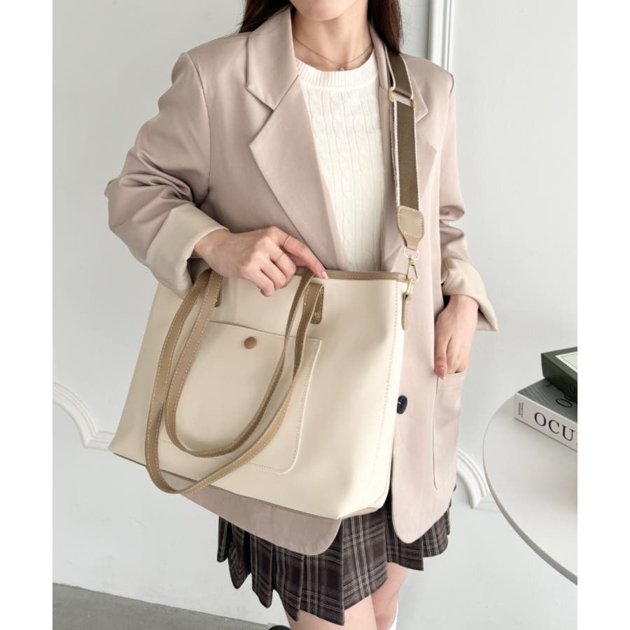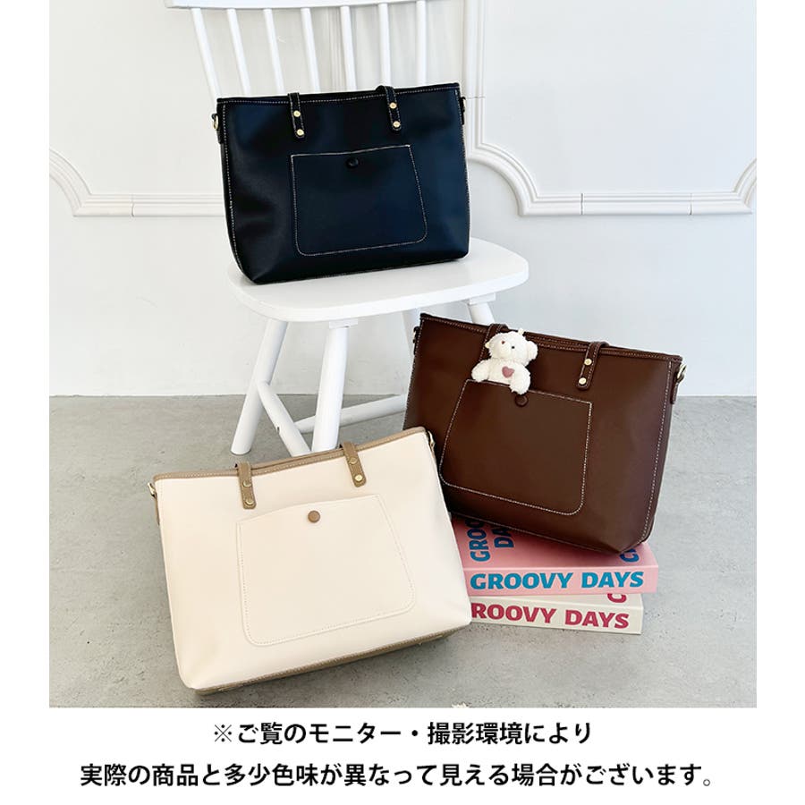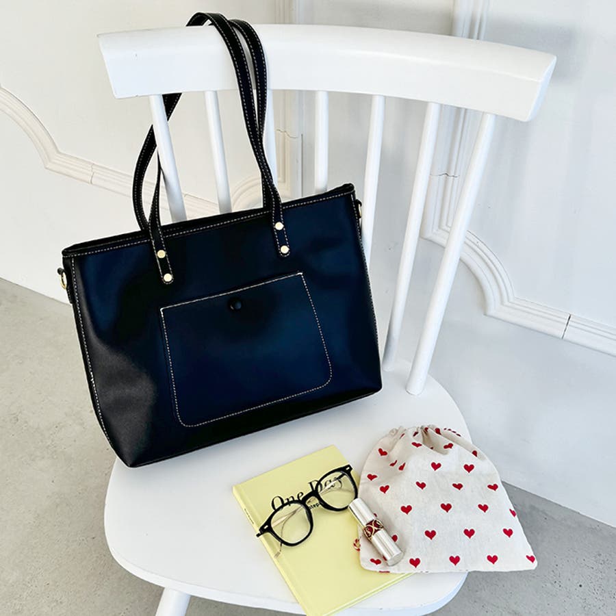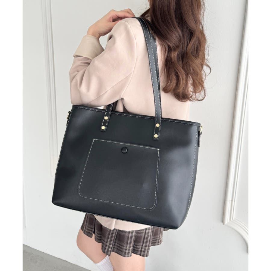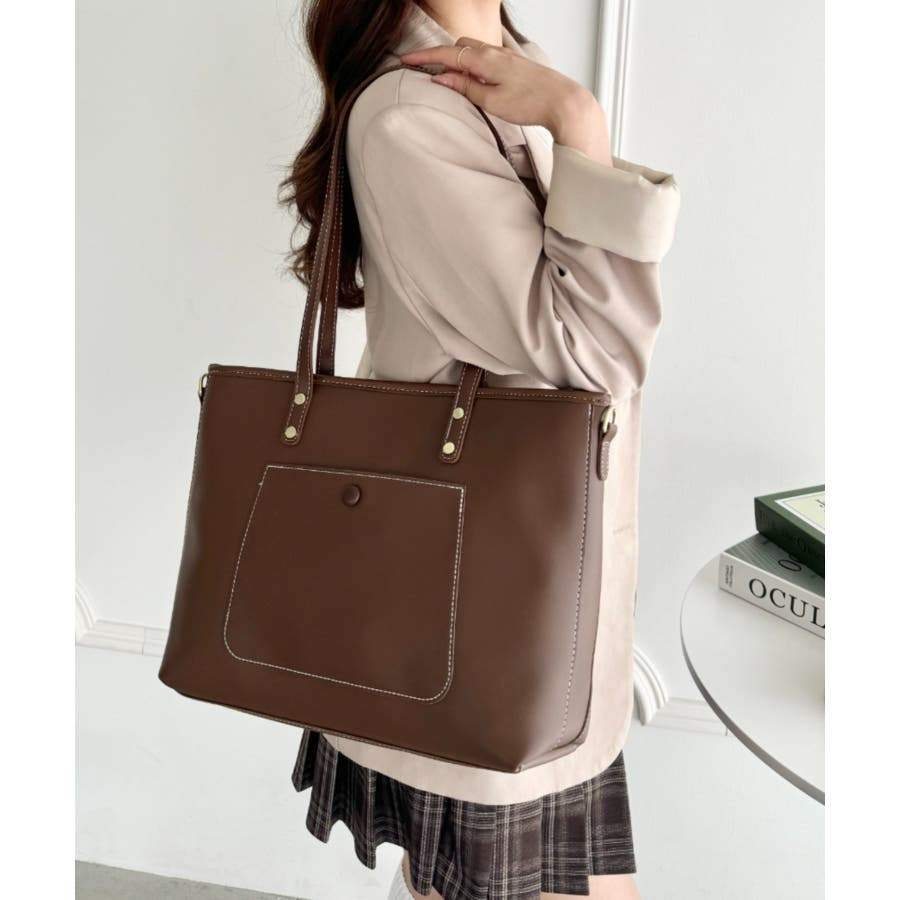 【A4収納/自立/ジッパー開閉】仕切りポケットPUトートバッグ