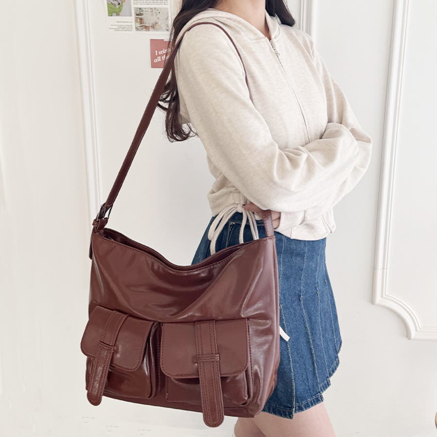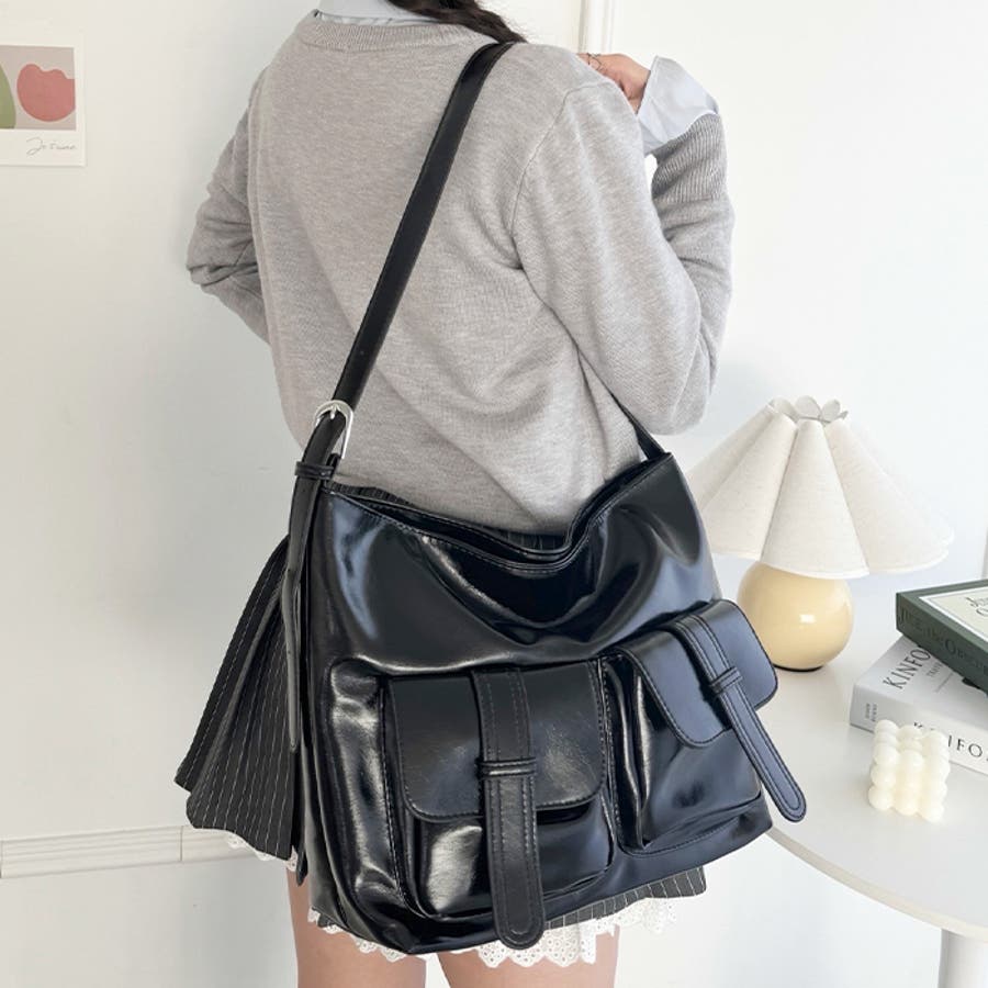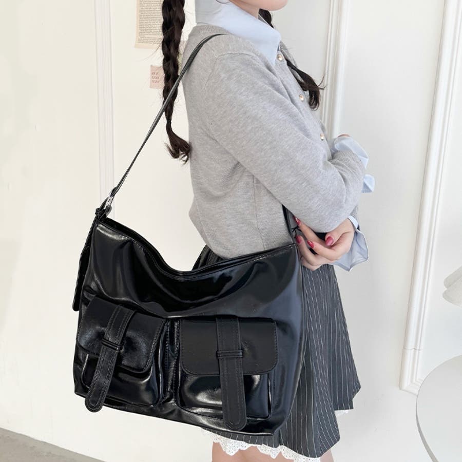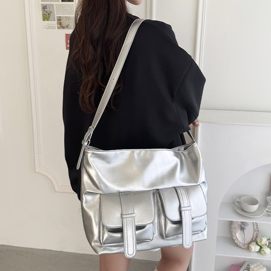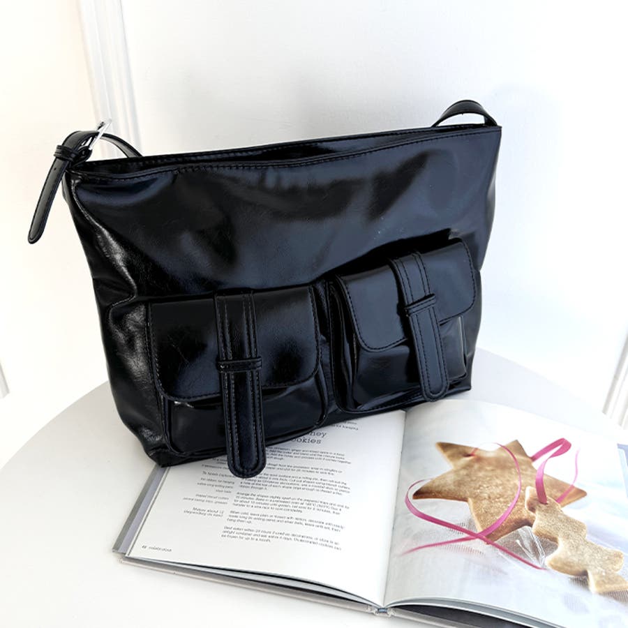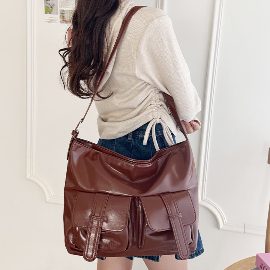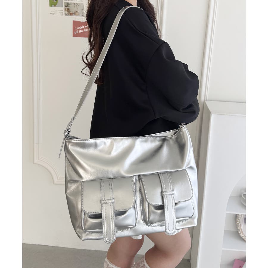 ・フロントのダブルポケット&ベルトデザインが旬なショルダーバッグ