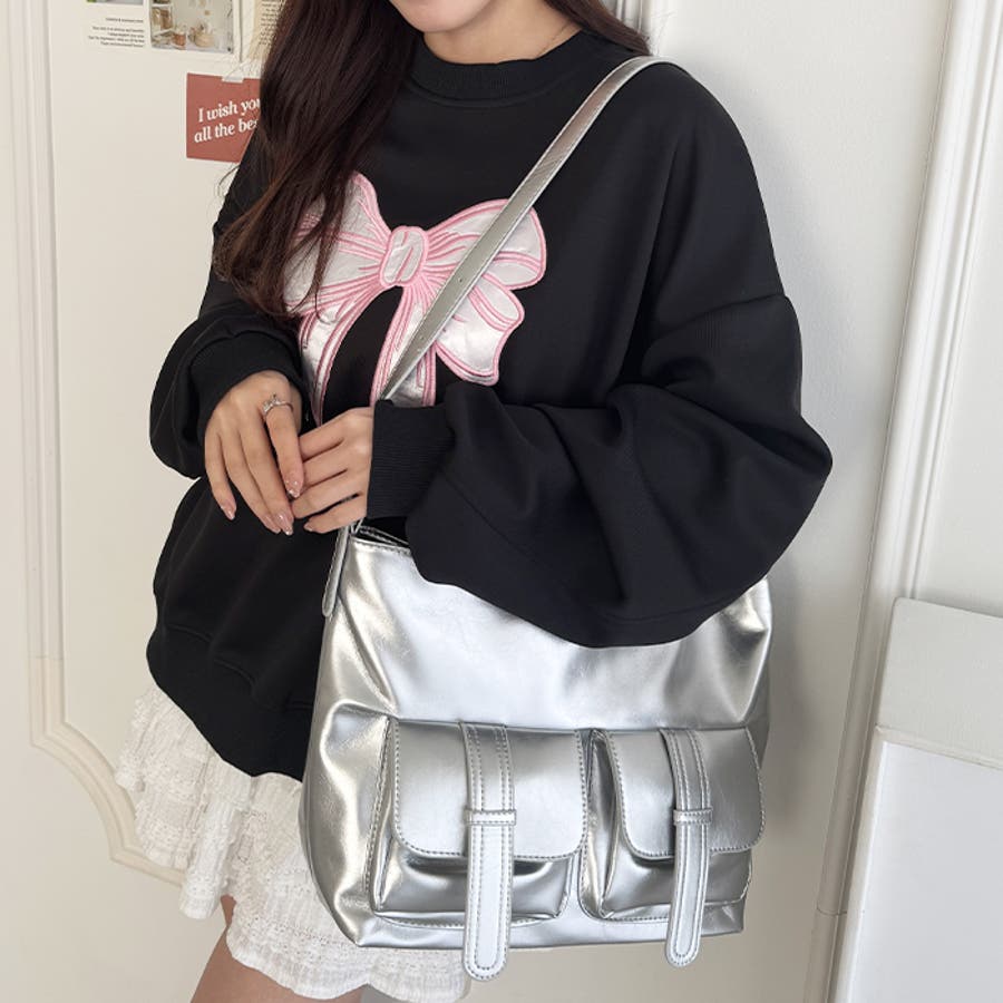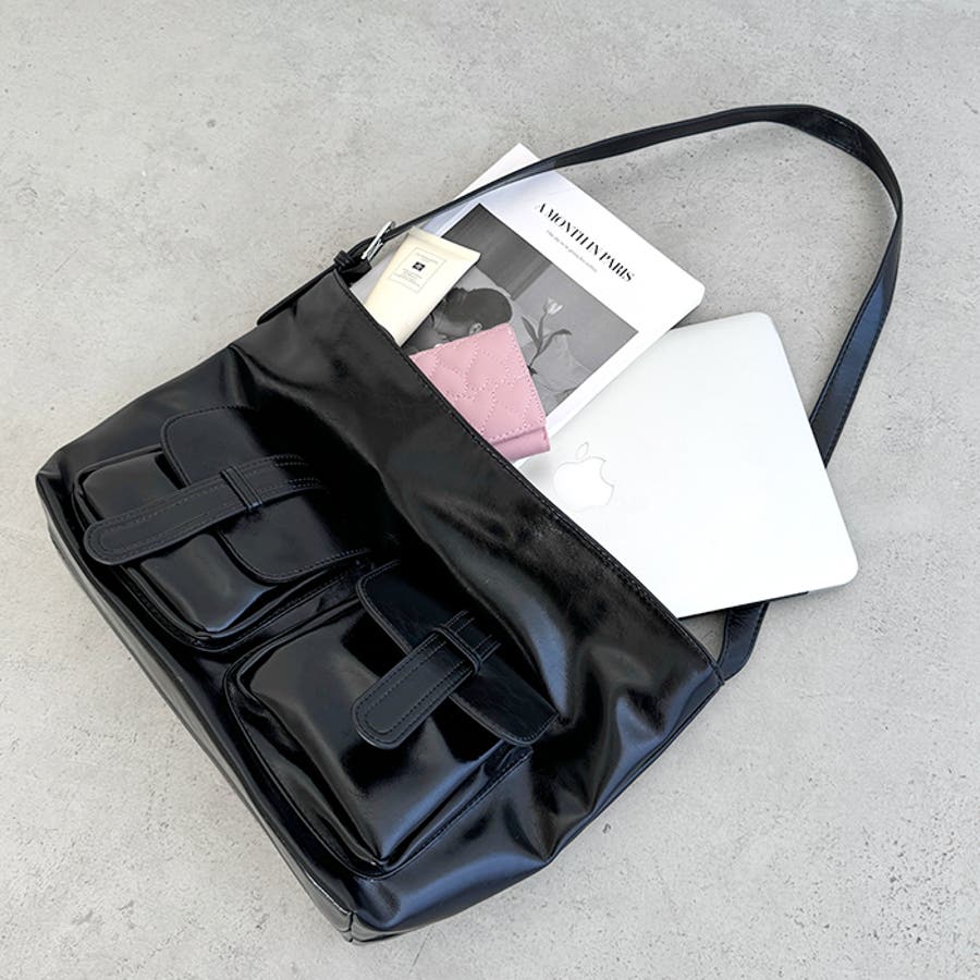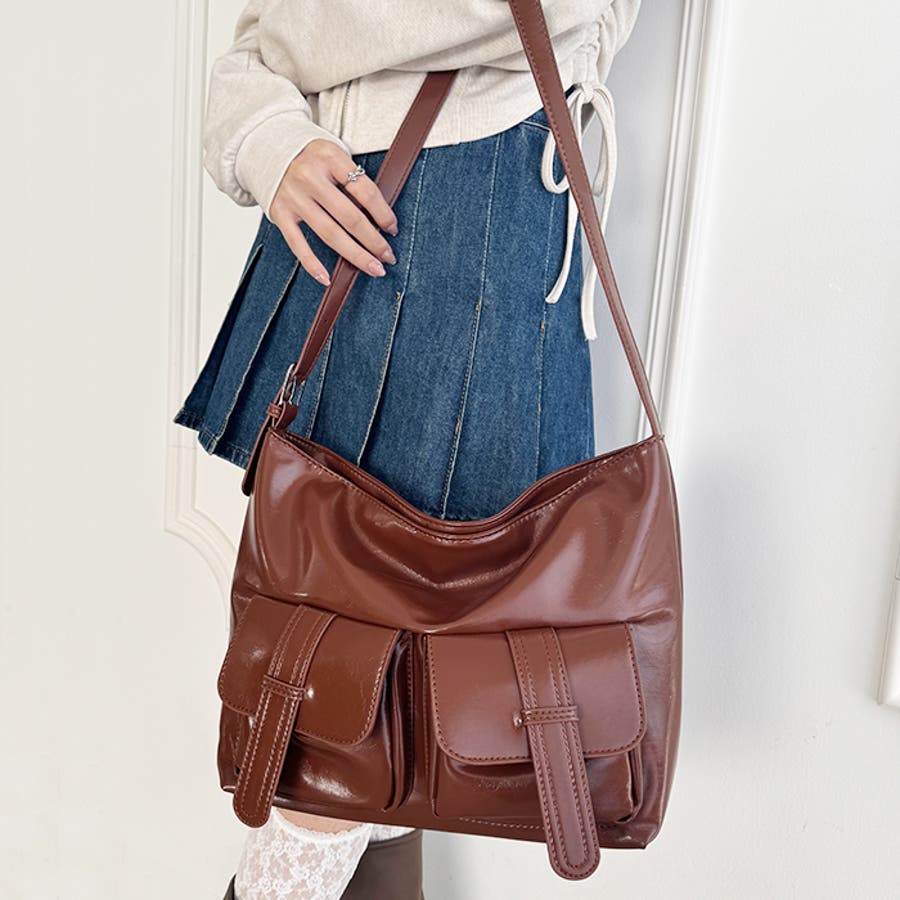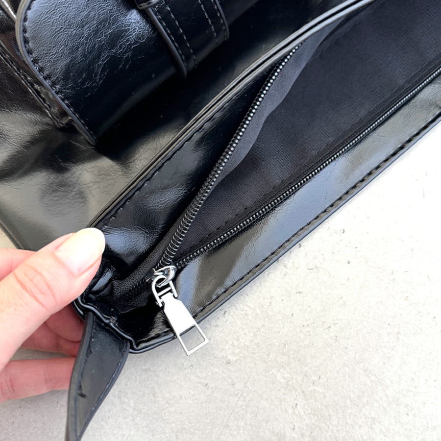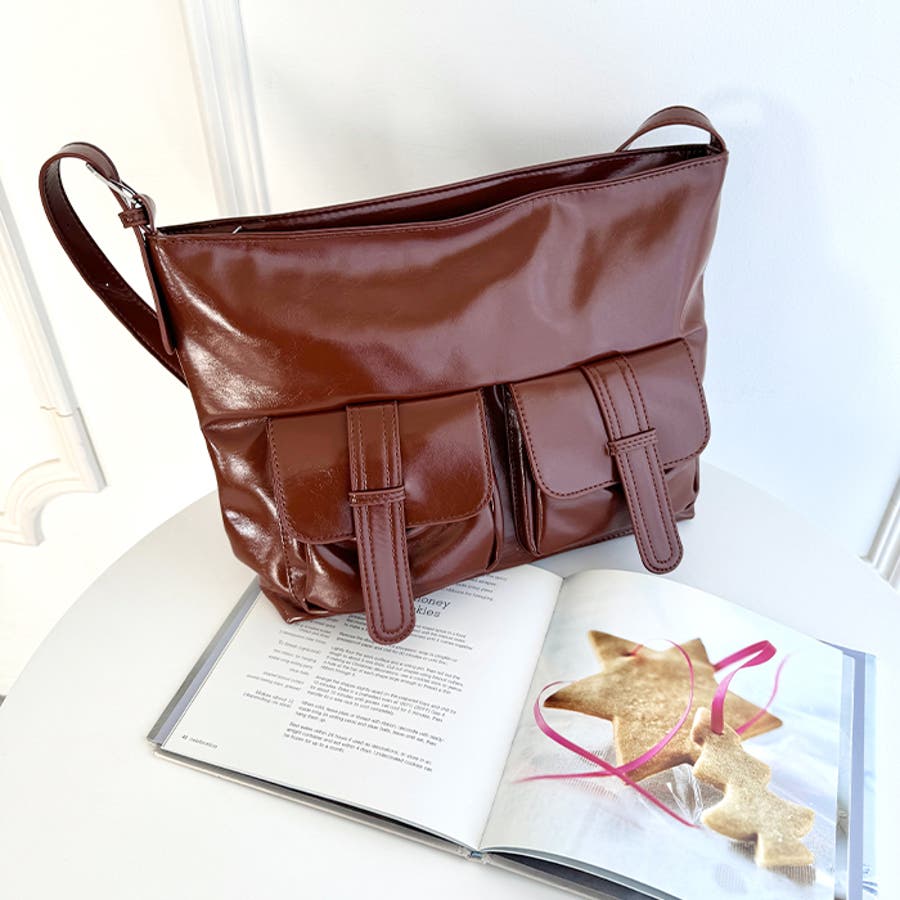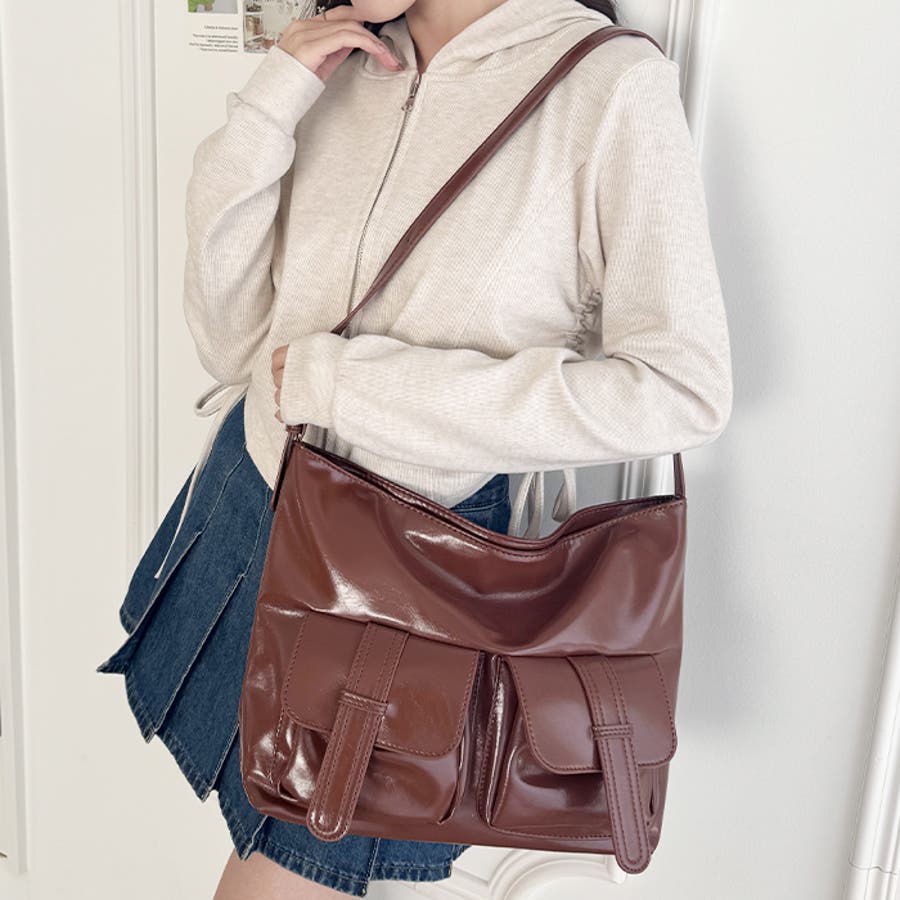 ・フロントのダブルポケット&ベルトデザインが旬なショルダーバッグ