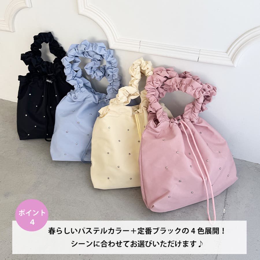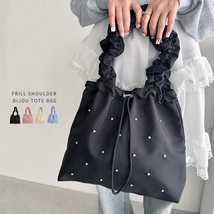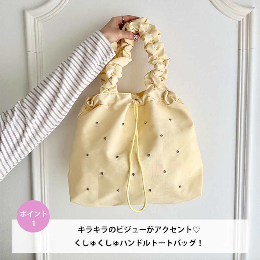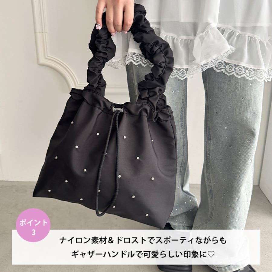 投稿日:2025.06.18フリフリの取手にキラキラのビジュー付きバッグ。