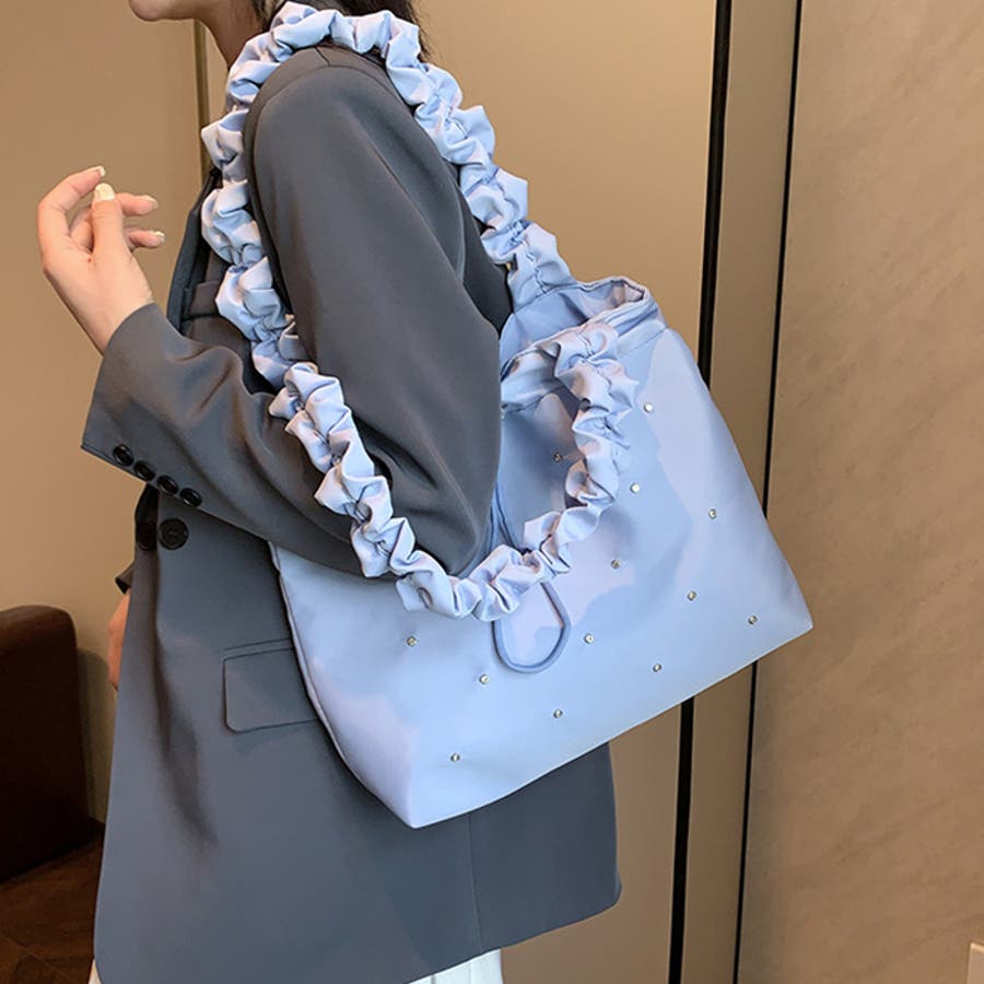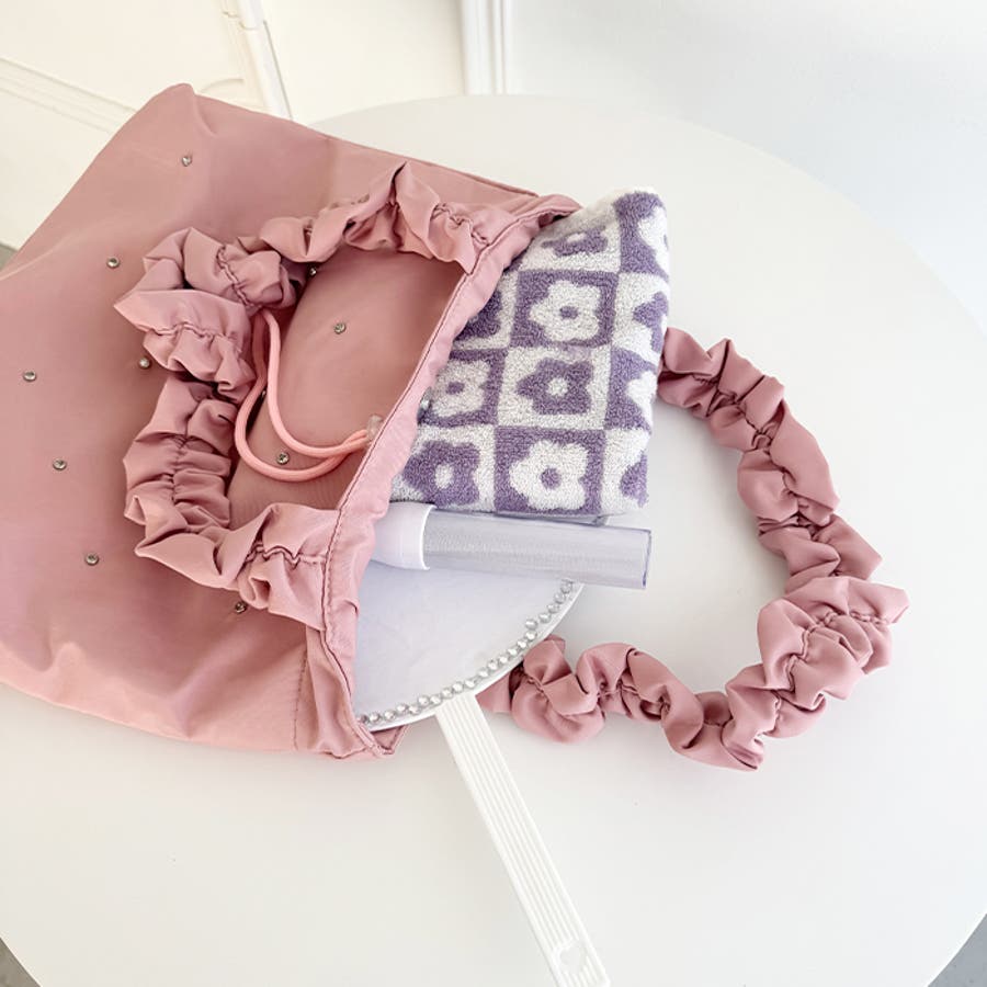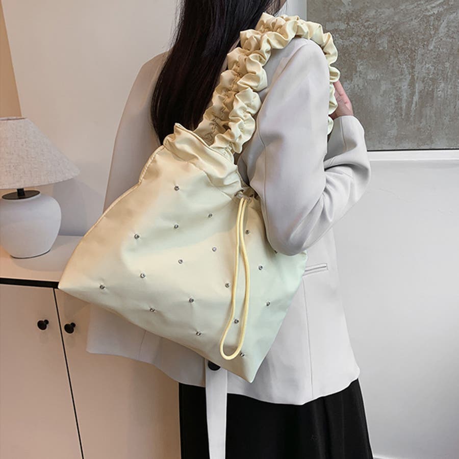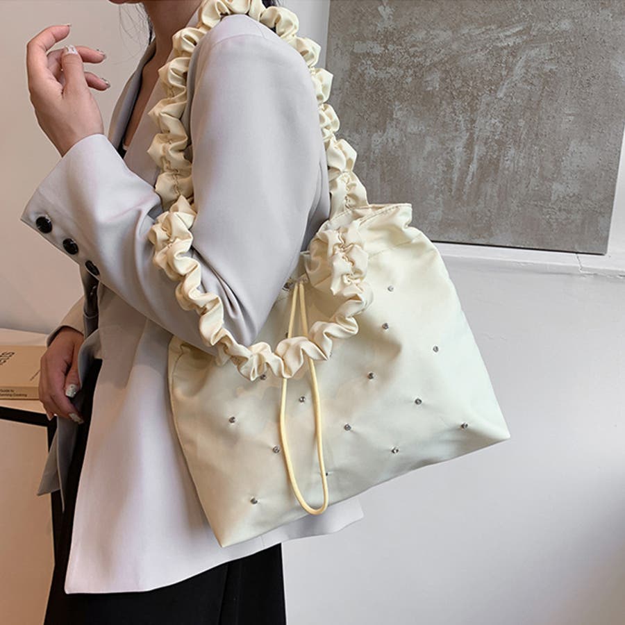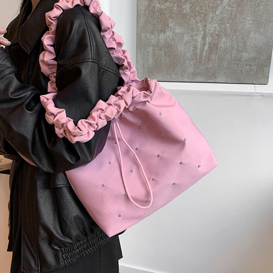 投稿日:2025.06.18フリフリの取手にキラキラのビジュー付きバッグ。